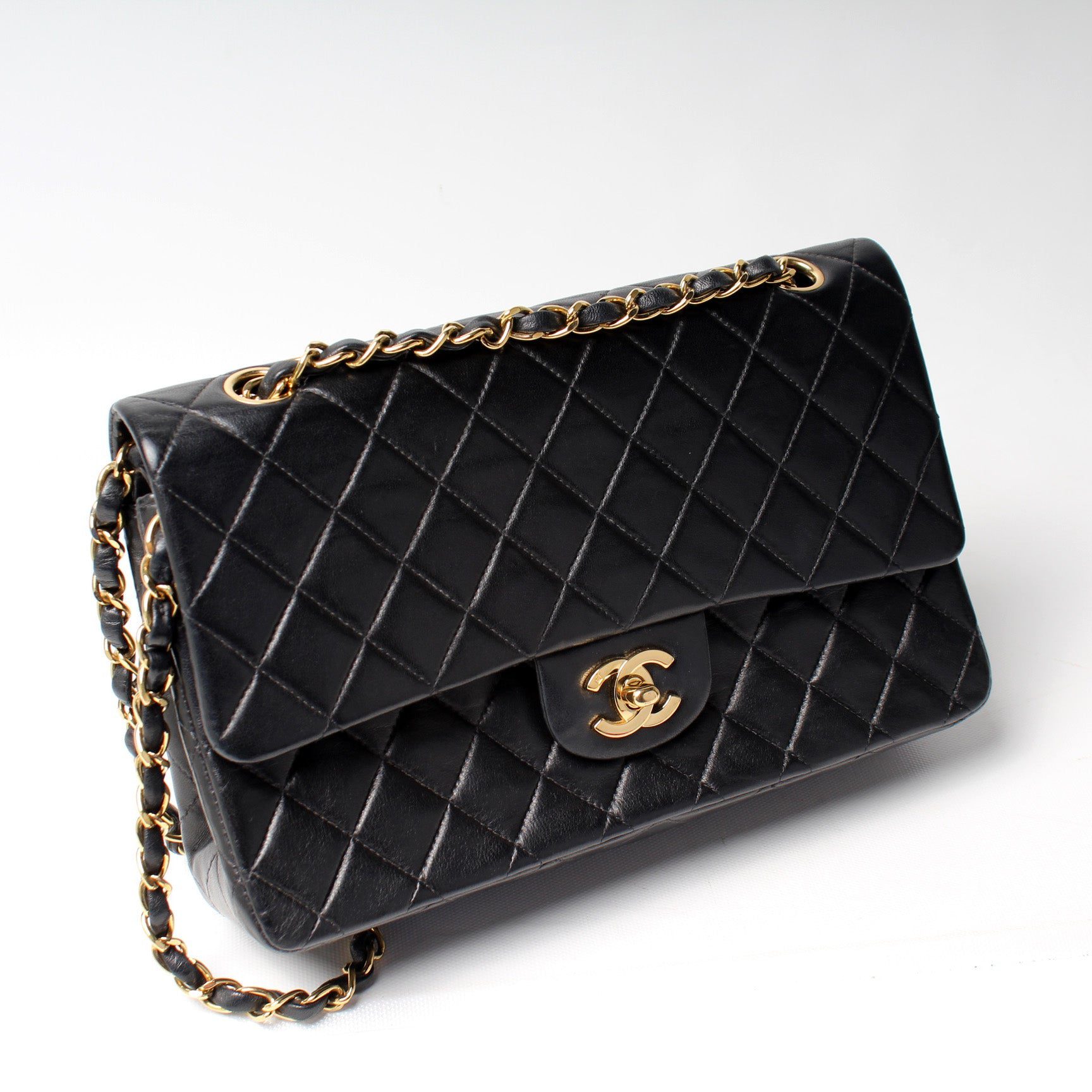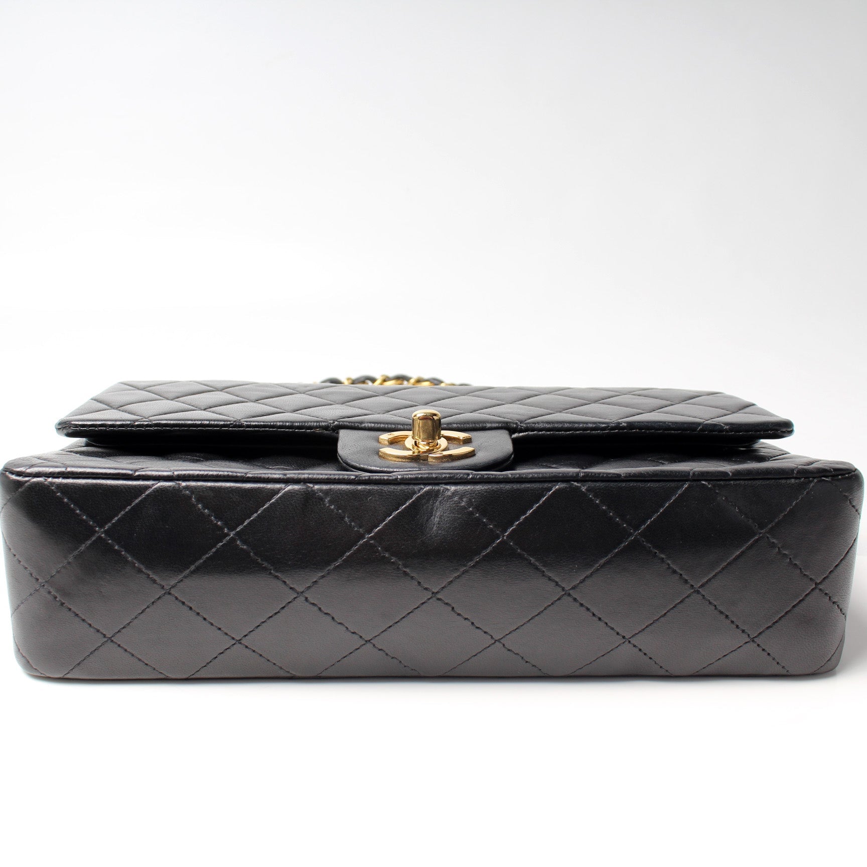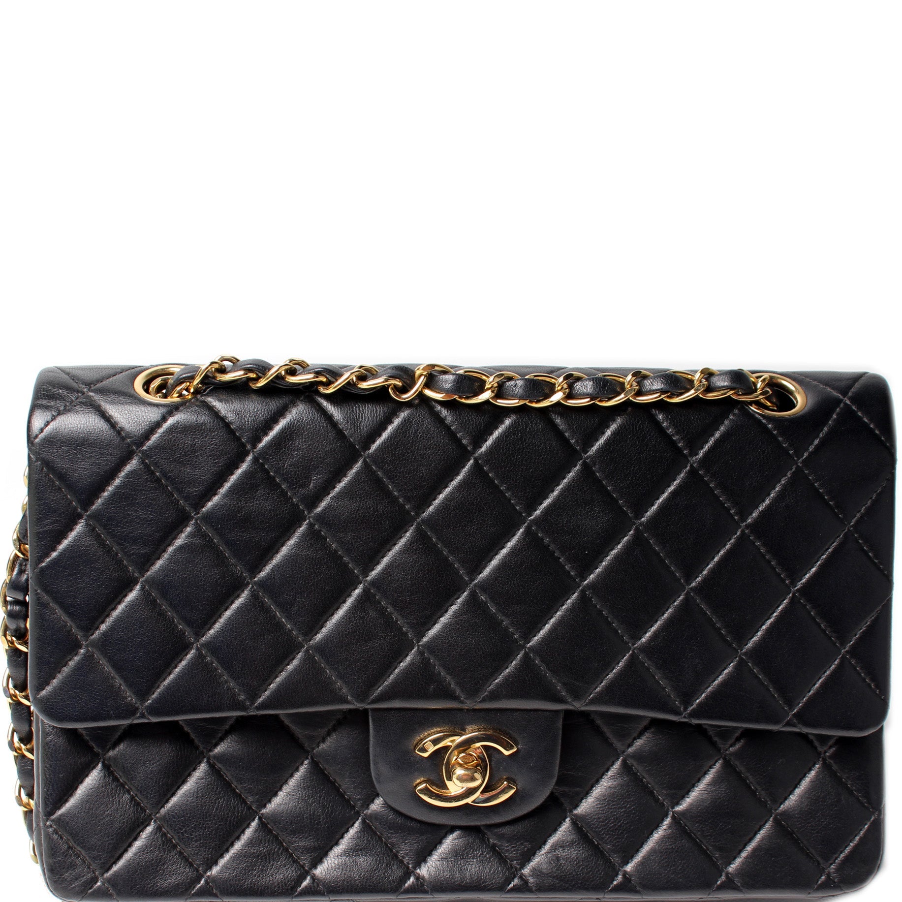 Chanel Classic Flap Medium. The exterior is in the classic Chanel Lambskin leather.Â