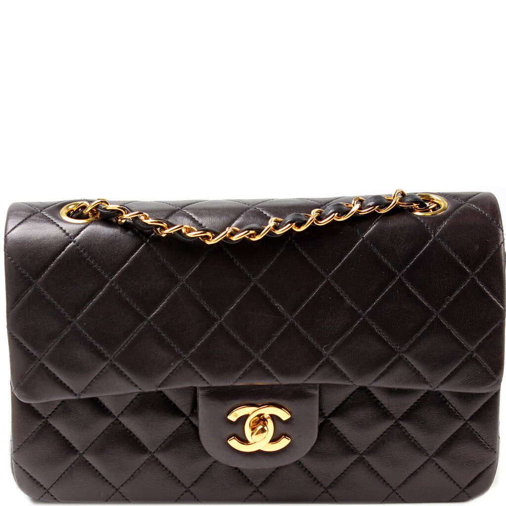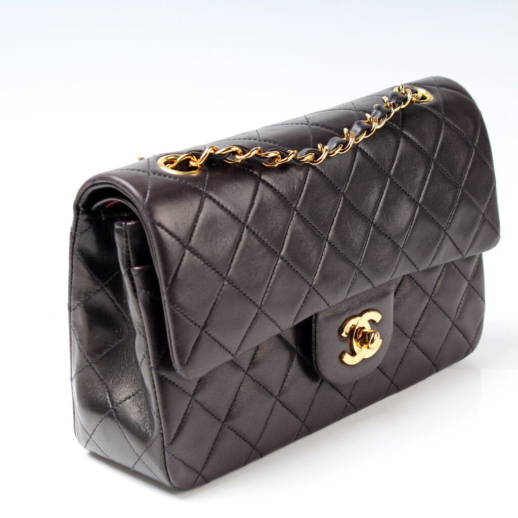 Chanel Classic Flap Small. The exterior is in the classic Chanel Lambskin leather.Â