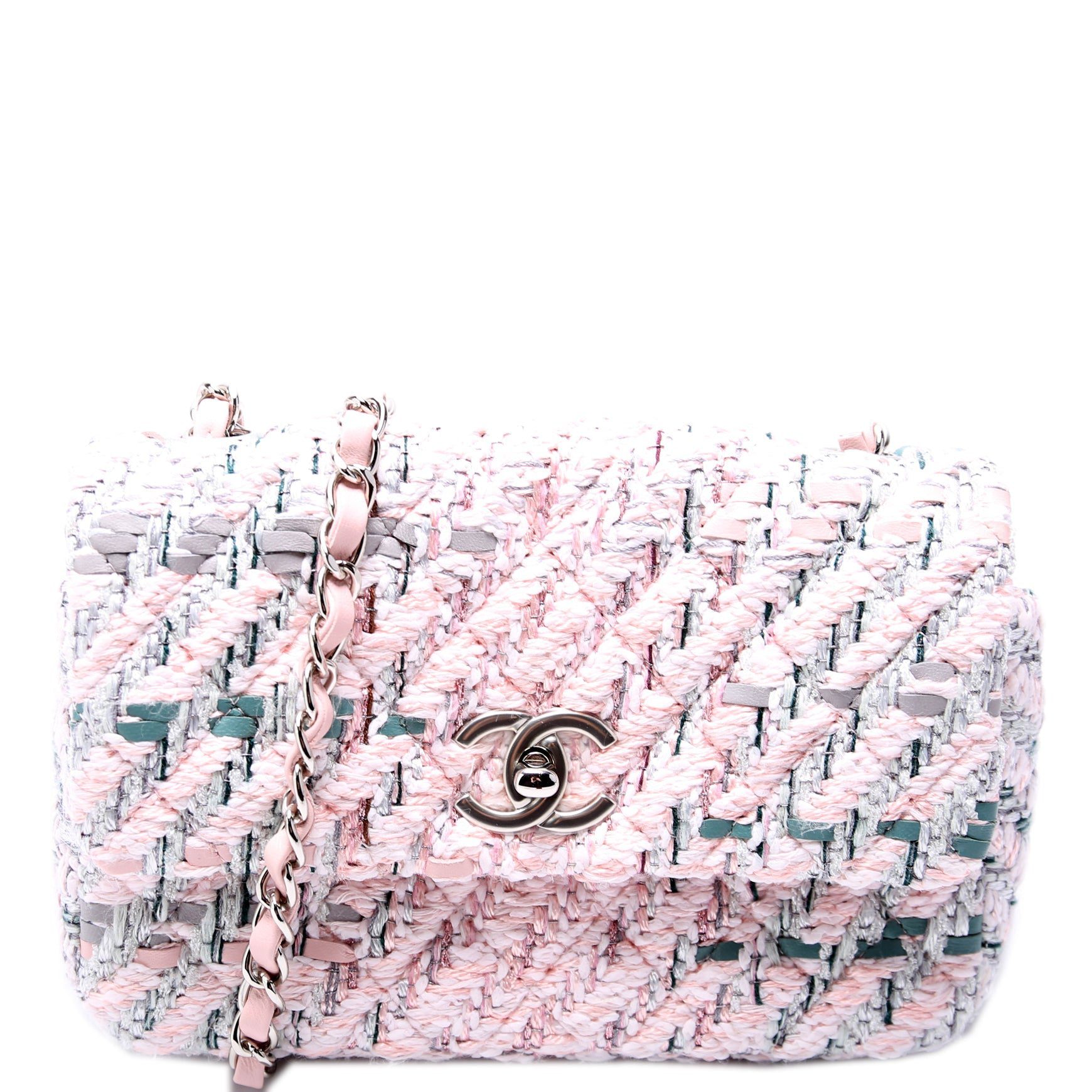 Chanel Classic Flap Mini Rectangle Tweed RFID Pink BagChanel Classic Flap Mini Rectangle Tweed RFID Pink Bag