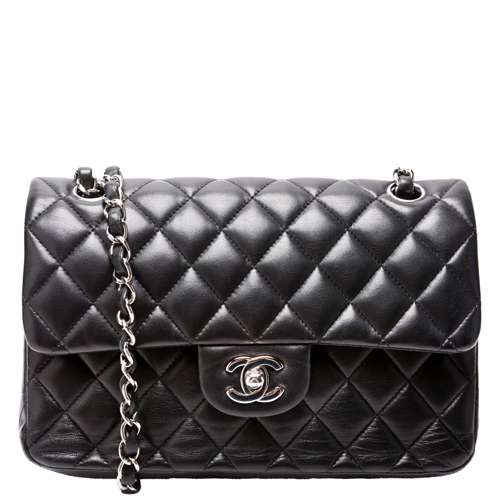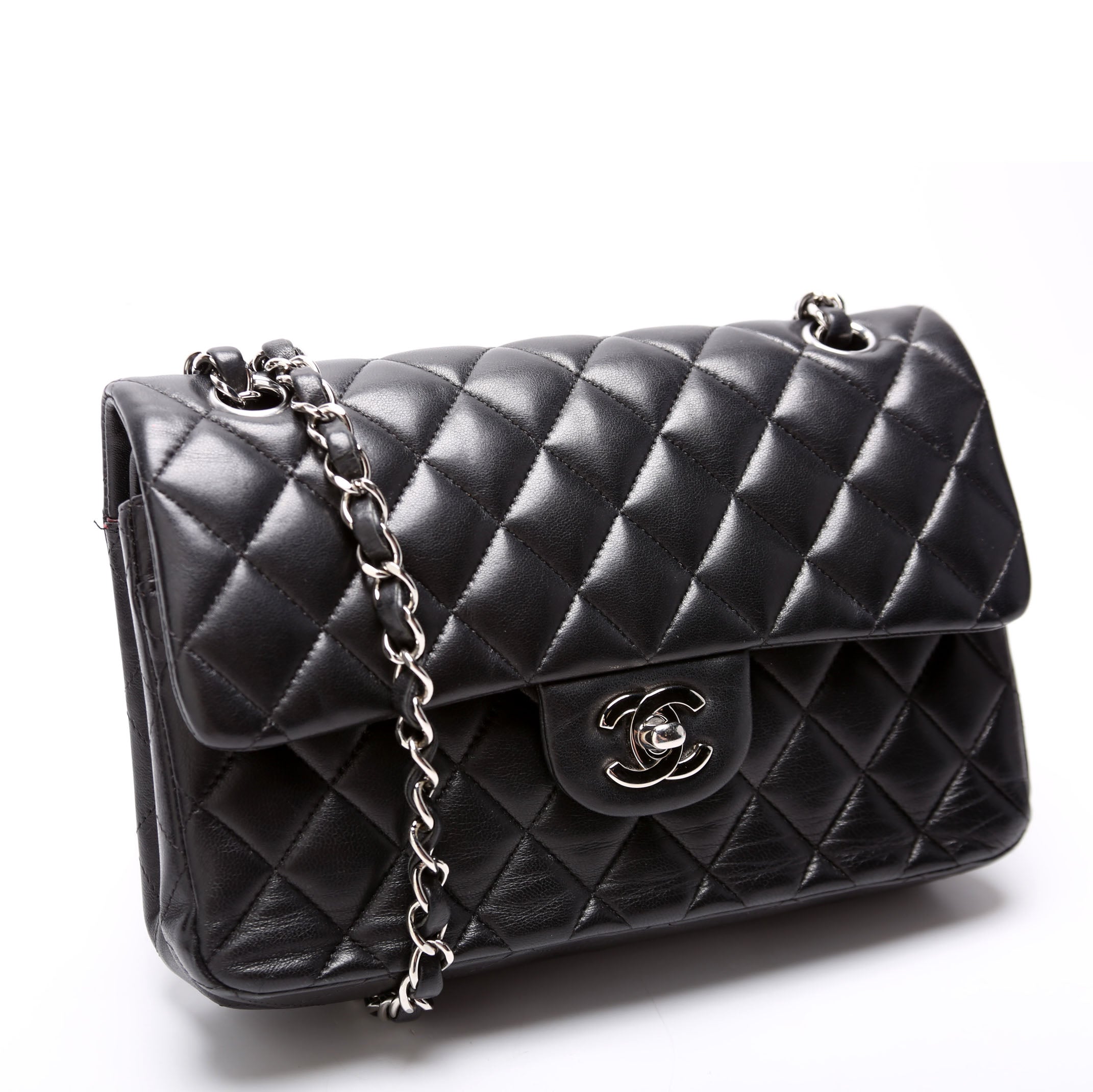 Chanel Classic Flap Small. The exterior is in the classic Chanel Lambskin leather. Â