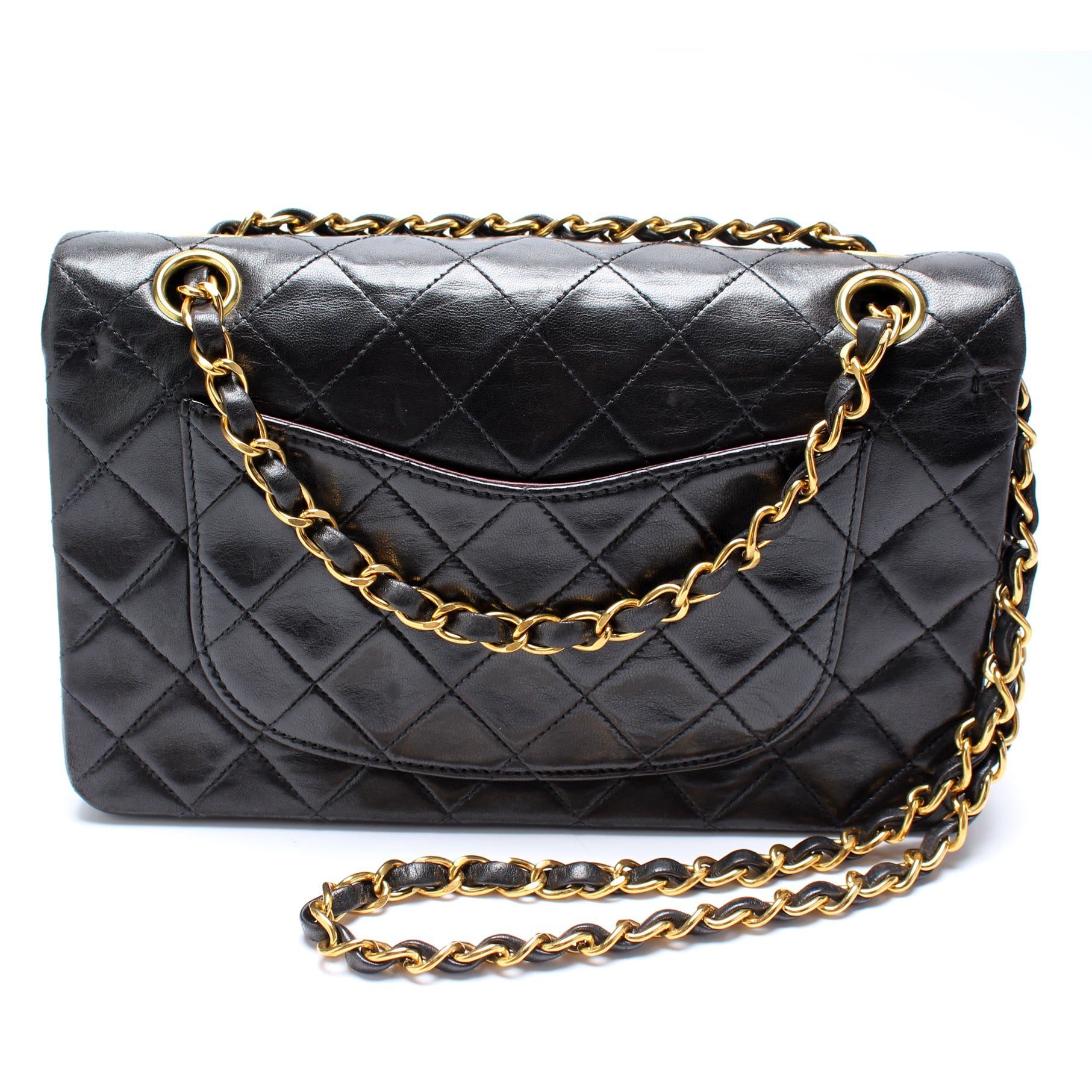 Chanel Classic Flap Small. The exterior is in the classic Chanel Lambskin leather.
