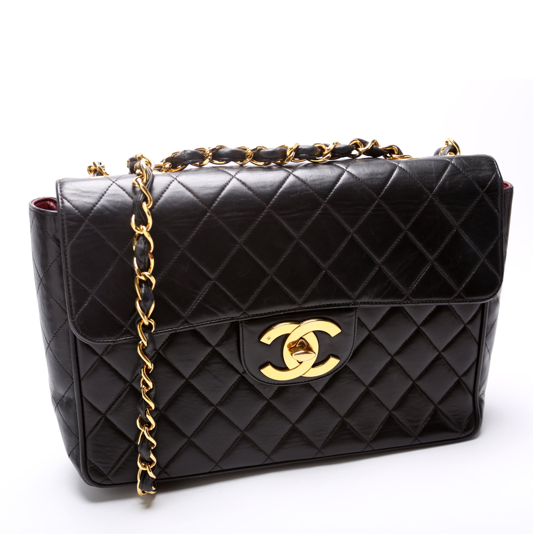 Chanel Classic Flap XL Jumbo. The exterior is in the classic Chanel Lambskin Leather.