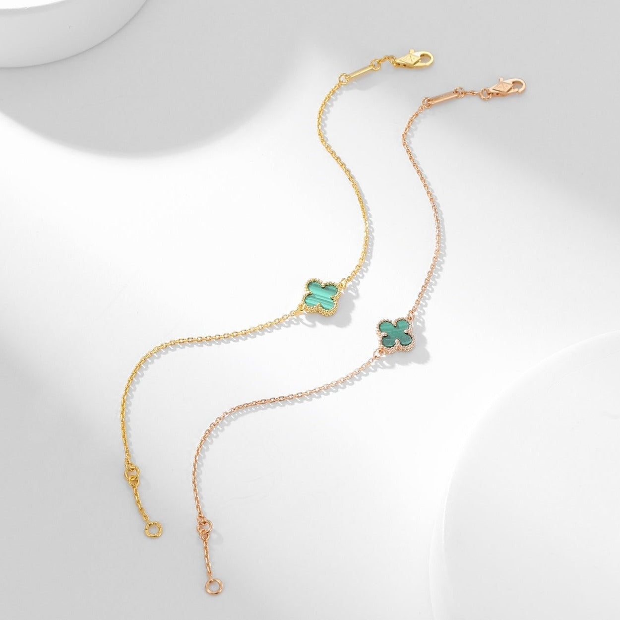 Four-leaf clover bracelets symbolize luck and good fortune. Each leaf represents different meanings such as love, health, wealth, and happiness. Four-leaf clover bracelets are considered a talisman, symbolizing good luck and auspiciousness. They have become a classic style and enjoy widespread attention and popularity. They bring blessings and auspiciousness to the wearer.