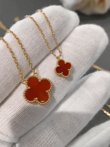 Van Cleef & Arpels CLOVER MINI 9.5MM WHITE CARNELIANS NECKLACEVan Cleef & Arpels CLOVER MINI 9.5MM WHITE CARNELIANS NECKLACE