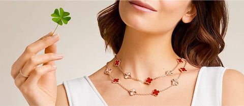 Four-leaf clover bracelets symbolize luck and good fortune. Each leaf represents different meanings such as love, health, wealth, and happiness. Four-leaf clover bracelets are considered a talisman, symbolizing good luck and auspiciousness. They have become a classic style and enjoy widespread attention and popularity. They bring blessings and auspiciousness to the wearer.