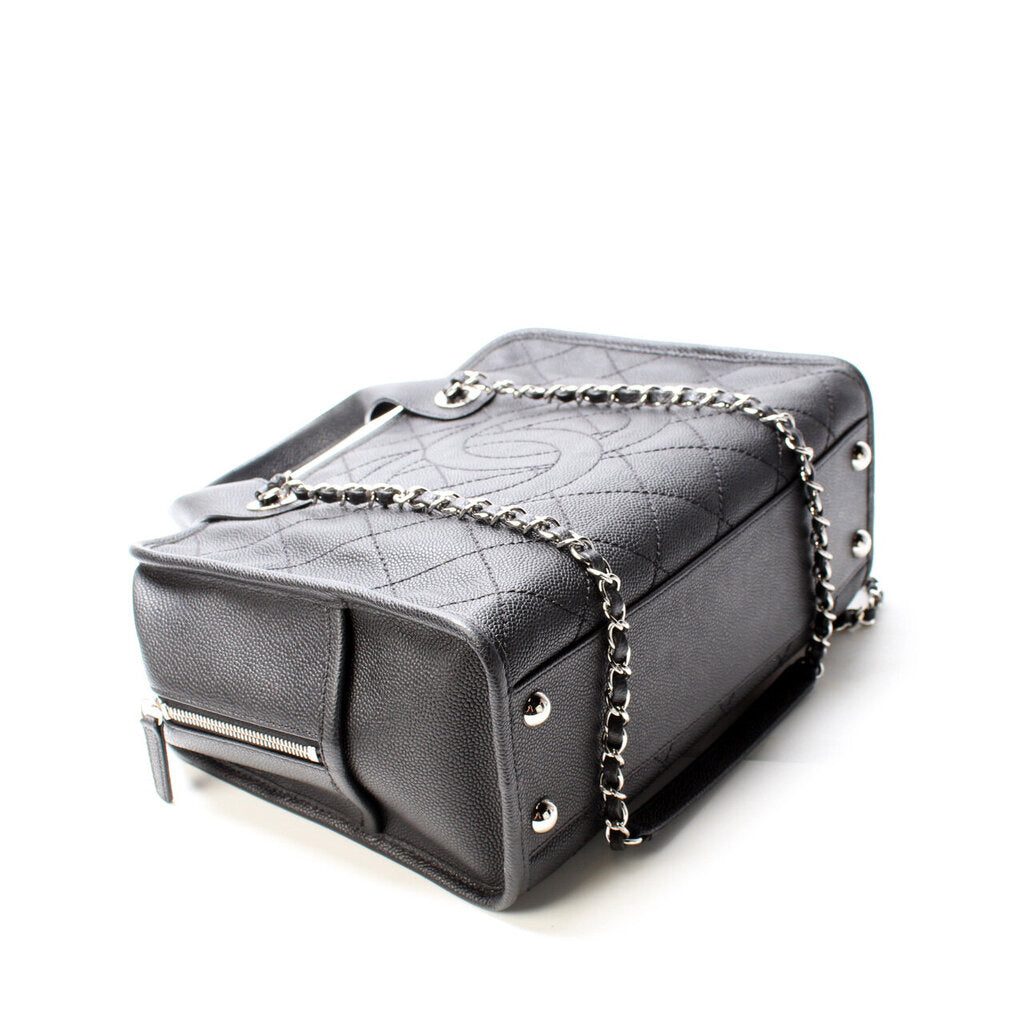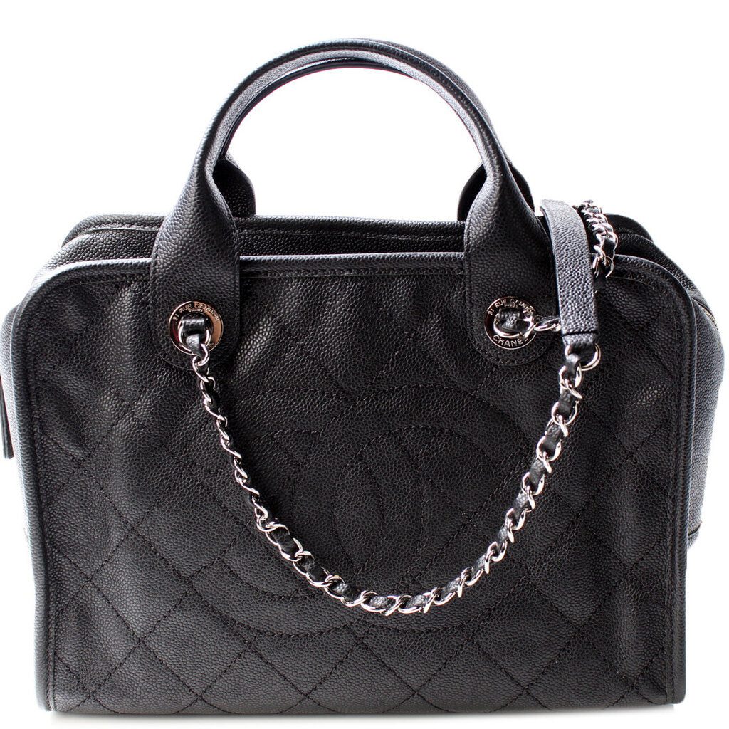 Chanel Deauville Bowling Bag. The exterior is in the classic Chanel Caviar leather.Â