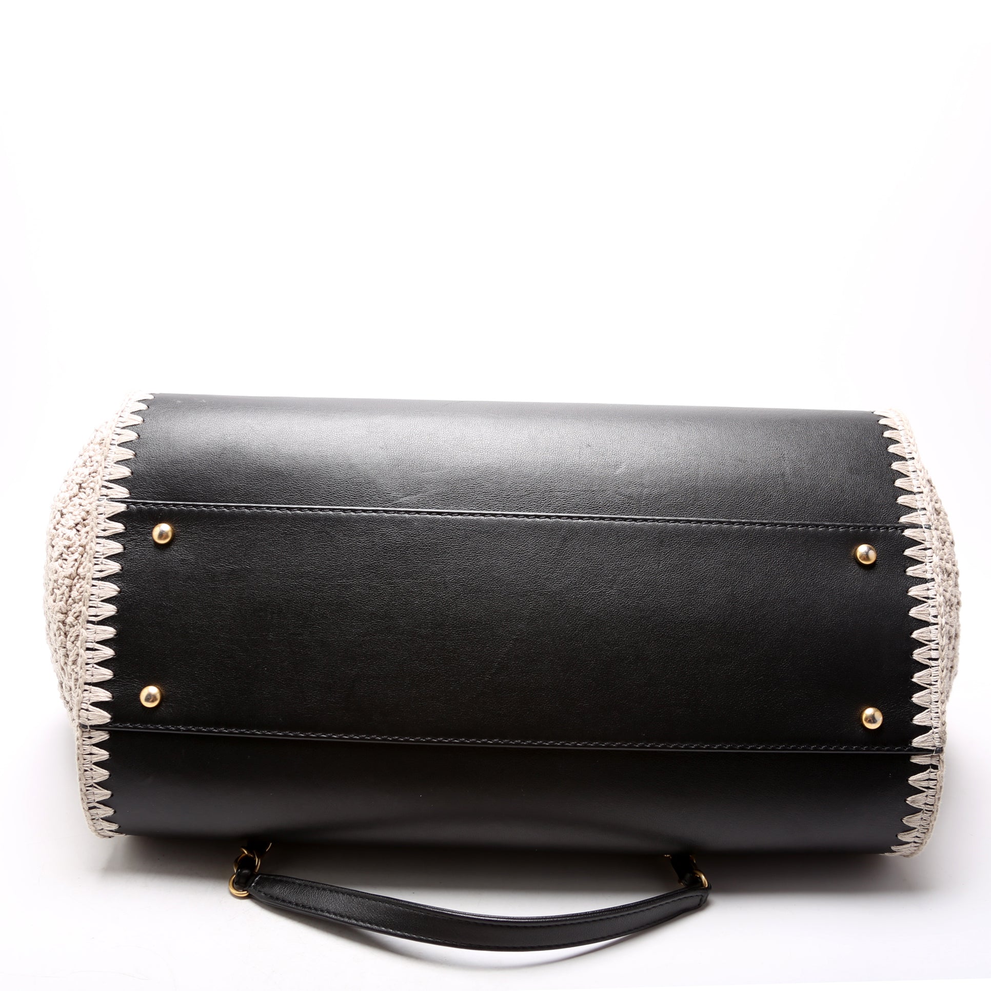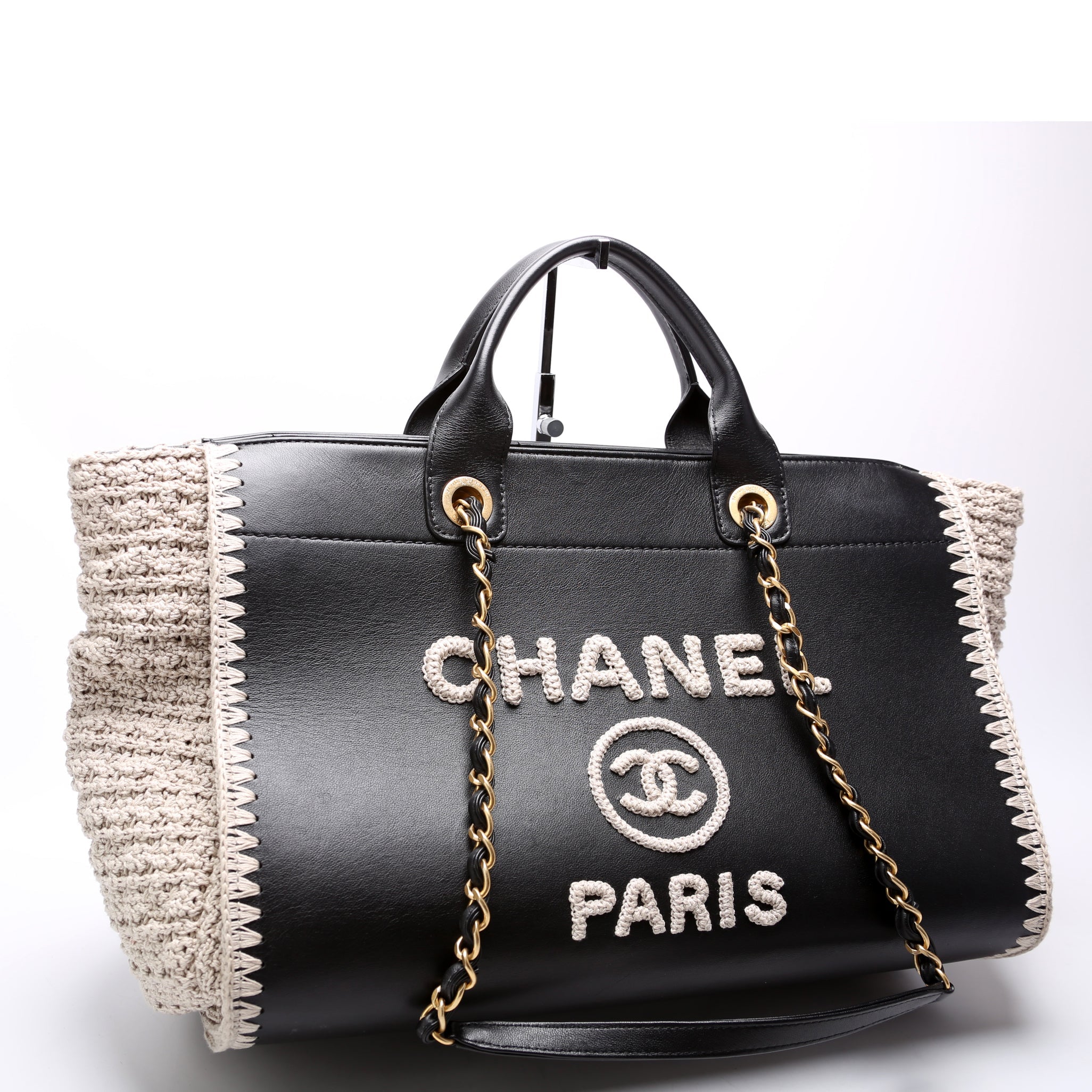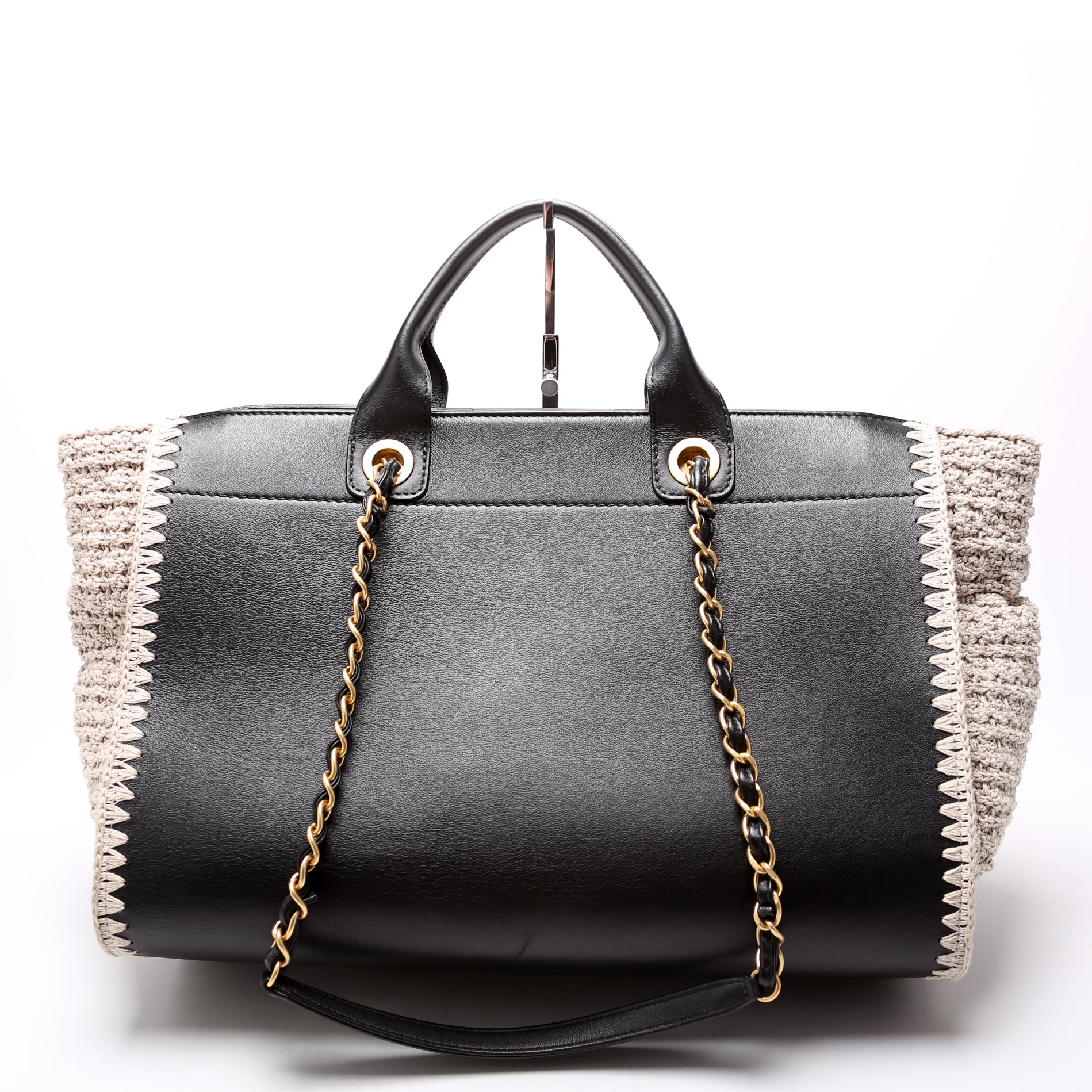 Chanel Deauville Calfskin/Crochet Tote Medium Black BagChanel Deauville Calfskin/Crochet Tote Medium Black Bag
