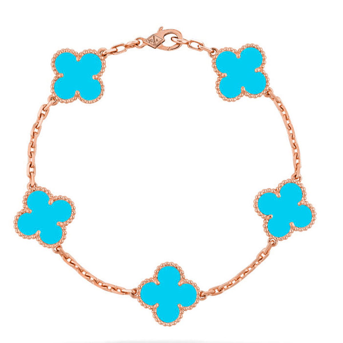 Four-leaf clover bracelets symbolize luck and good fortune. Each leaf represents different meanings such as love, health, wealth, and happiness. Four-leaf clover bracelets are considered a talisman, symbolizing good luck and auspiciousness. They have become a classic style and enjoy widespread attention and popularity. They bring blessings and auspiciousness to the wearer.