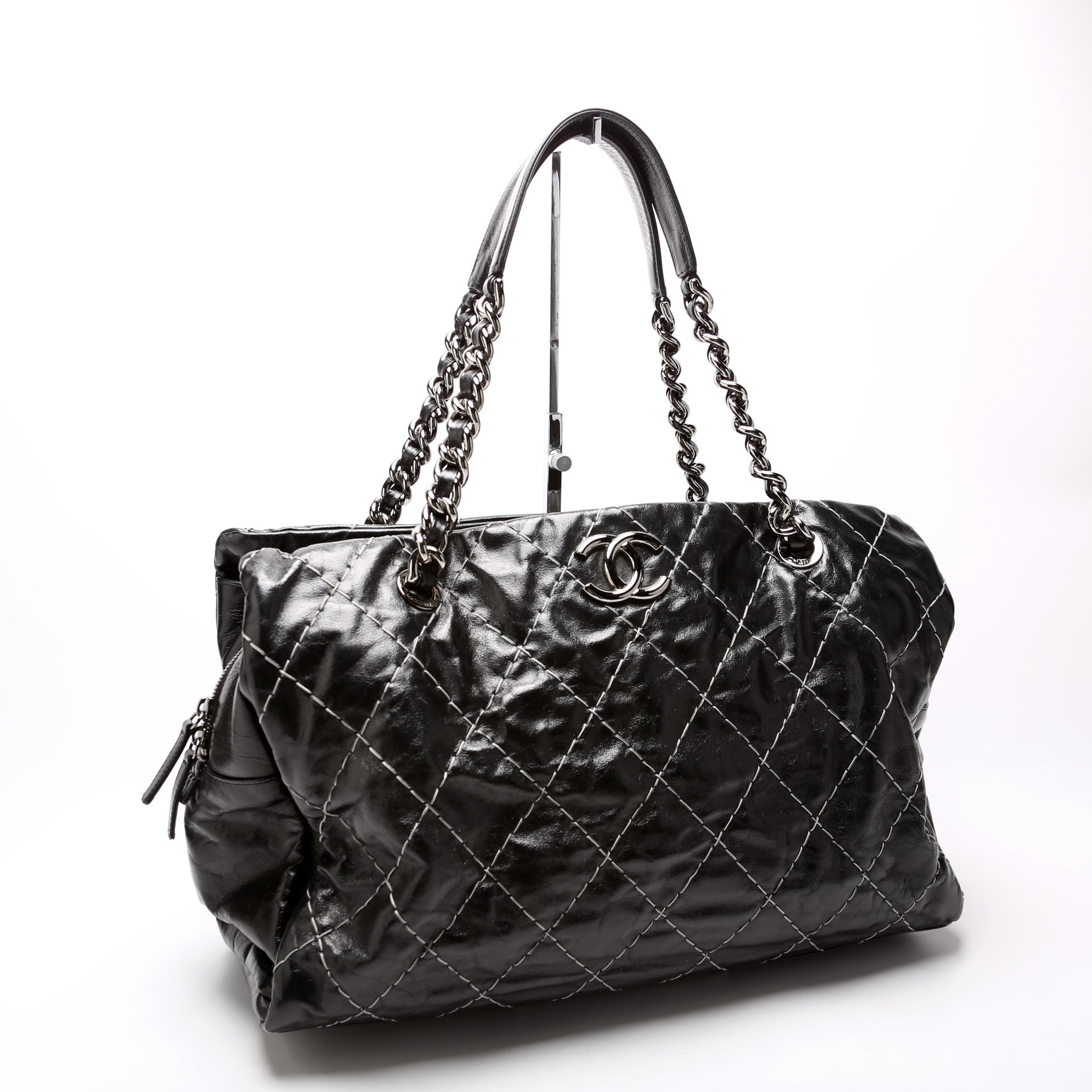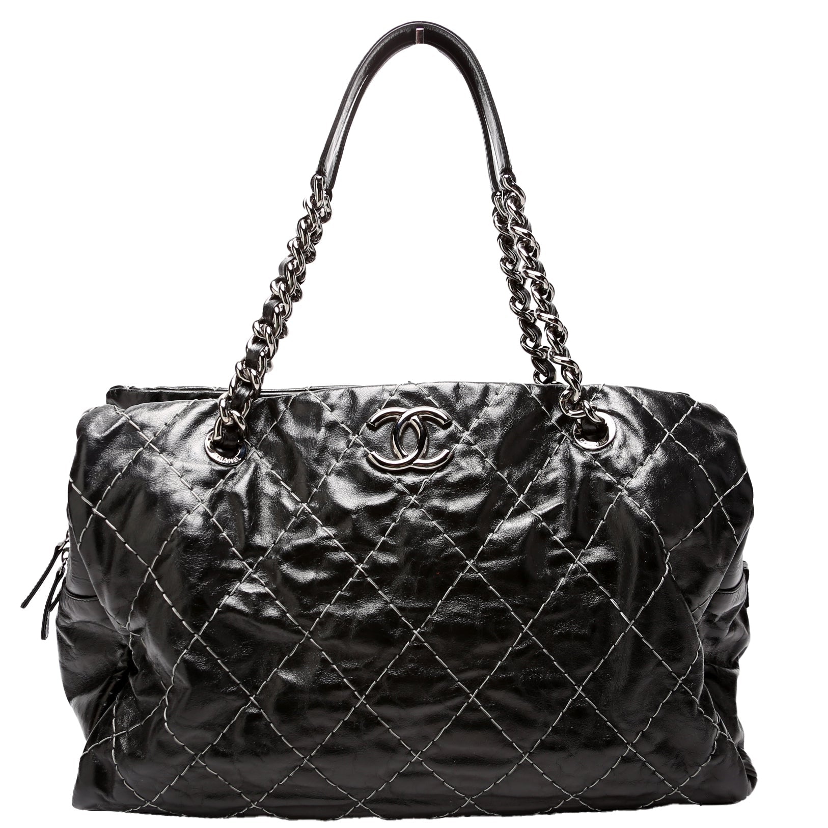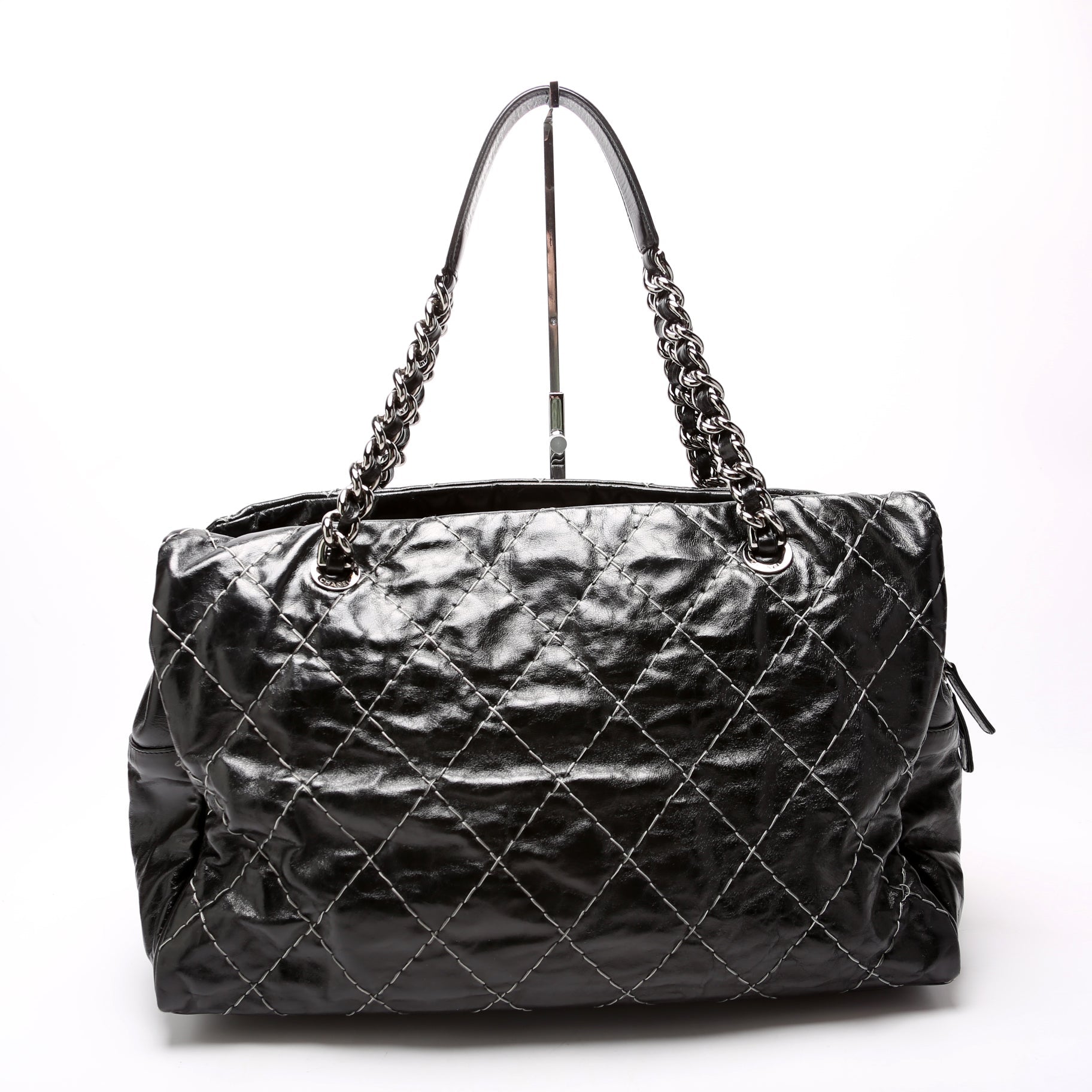 Chanel Double Contrast Stitch Large Tote Goatskin�. The exterior is in the classic Chanel Goatskin leather.Â