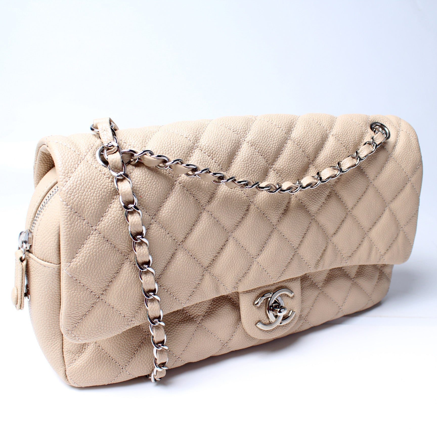 Chanel Easy Flap. The exterior is in the classic Chanel Lambskin leather. Â