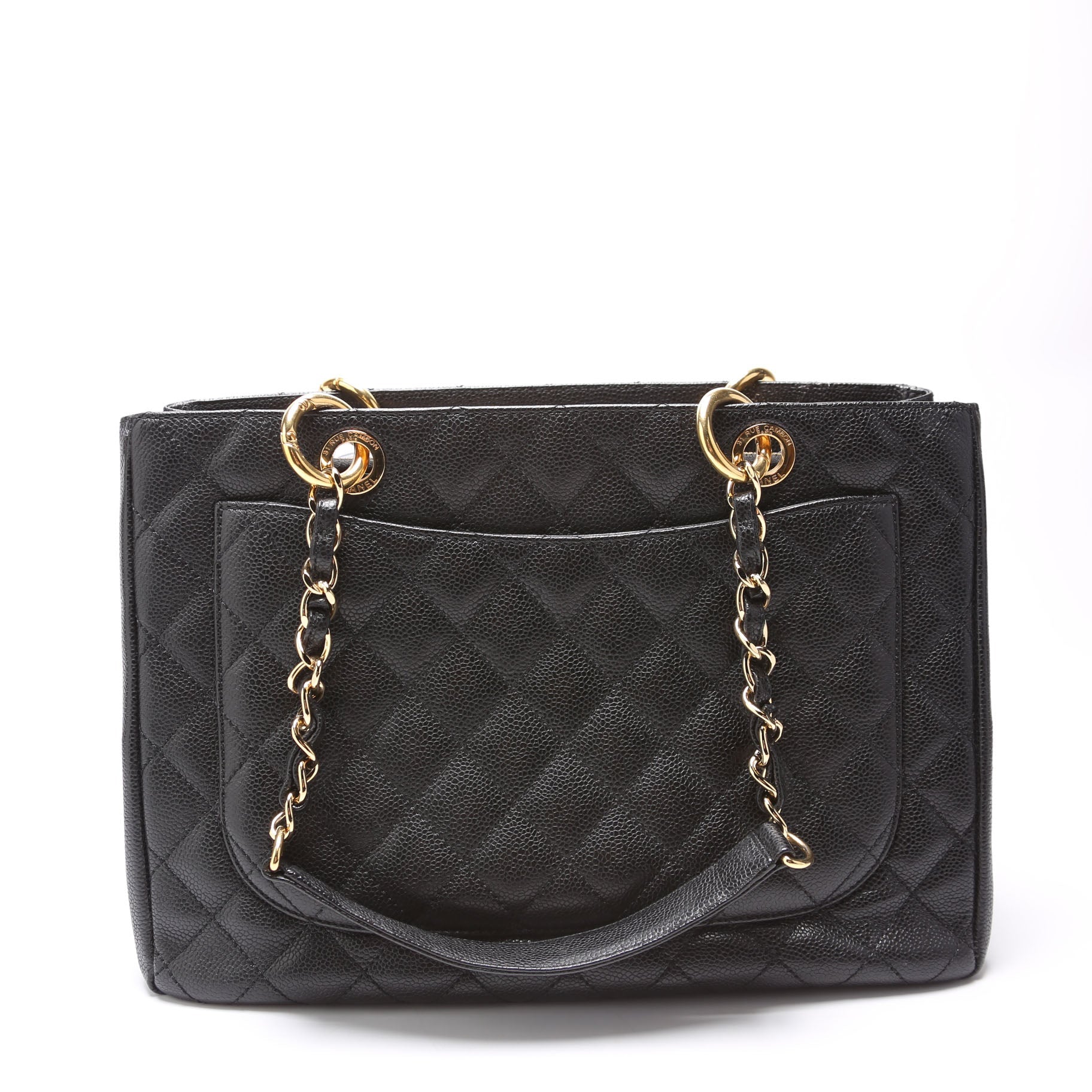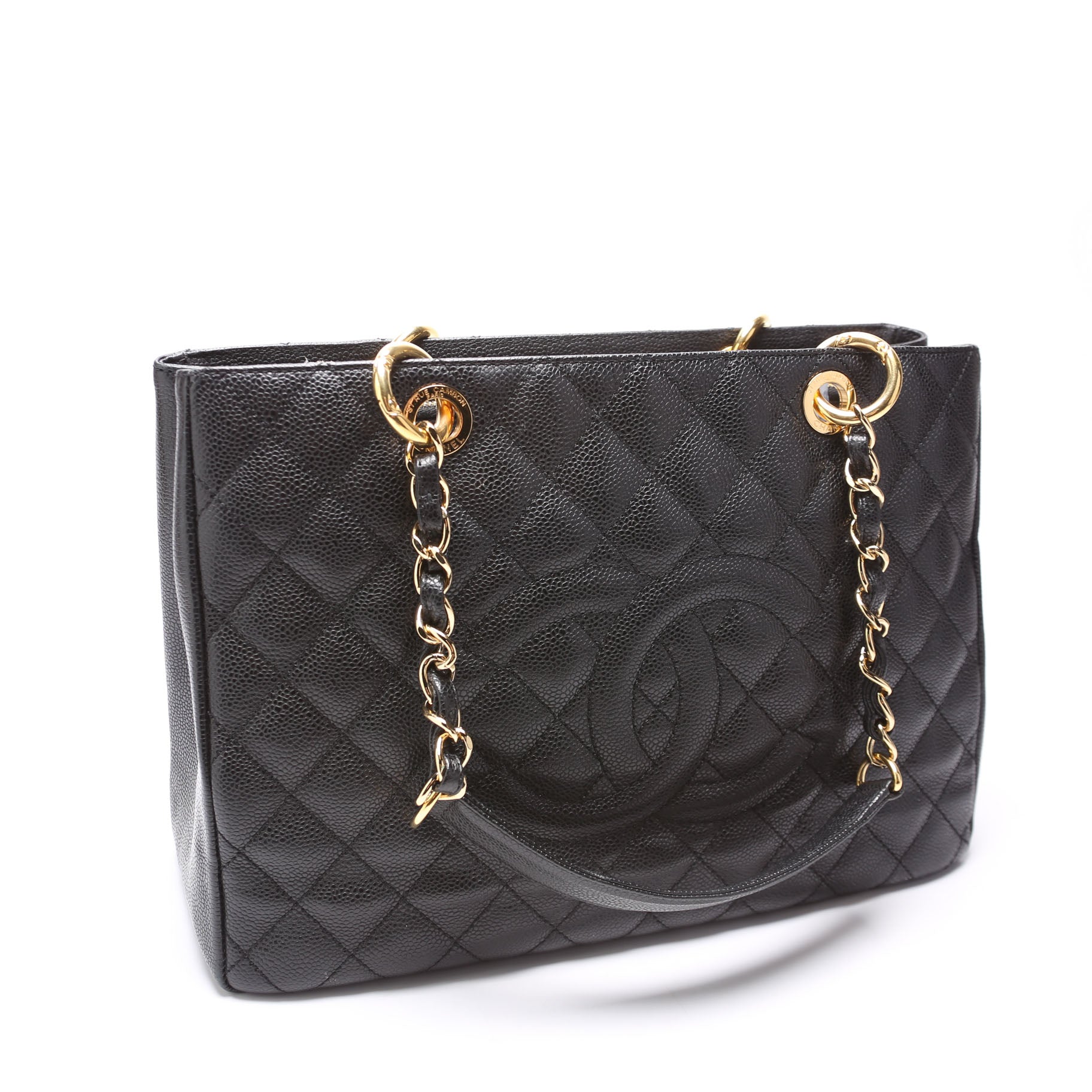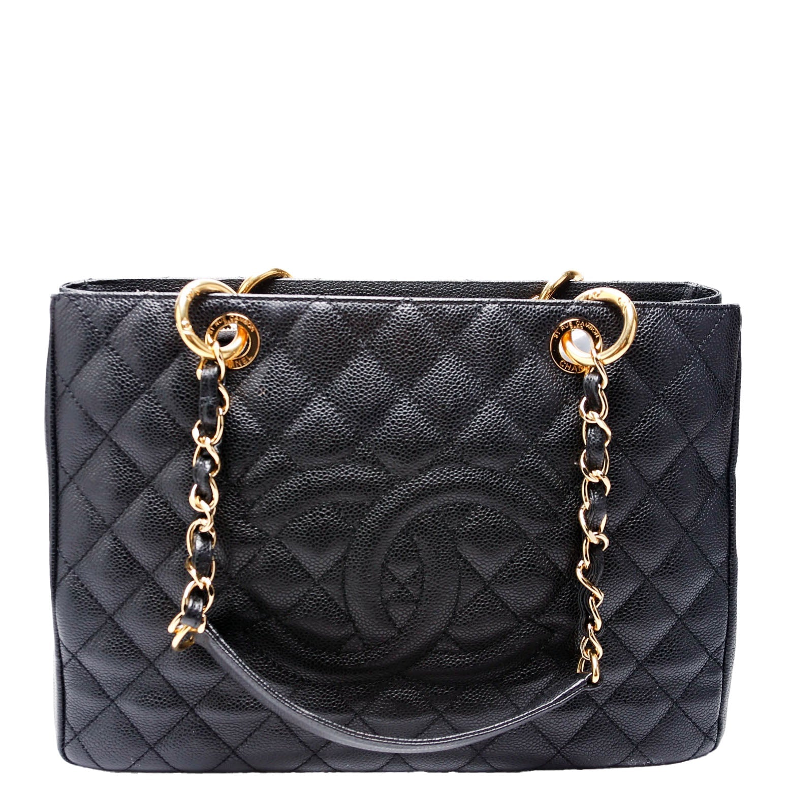 Chanel Grand Shopping Tote. The exterior is in the classic Caviar leather. Â