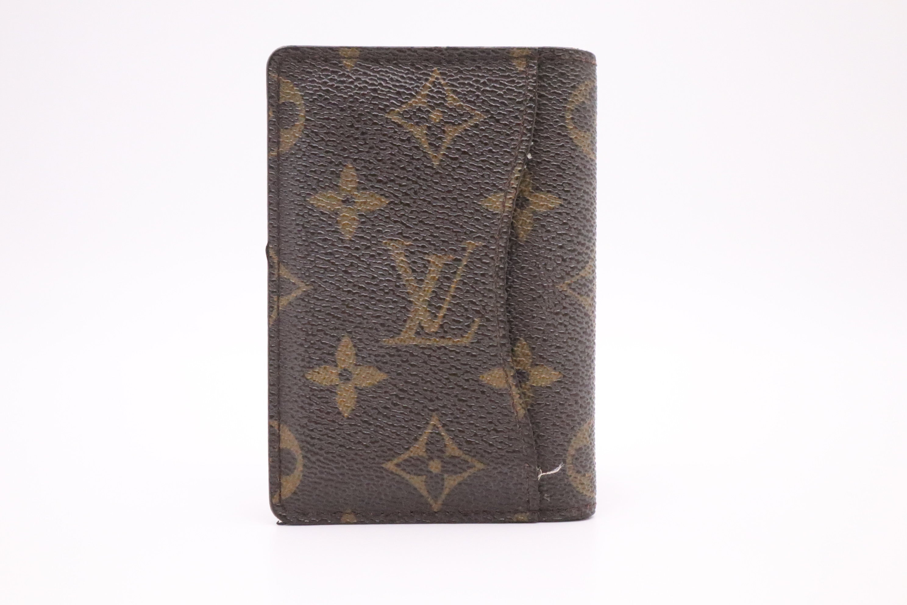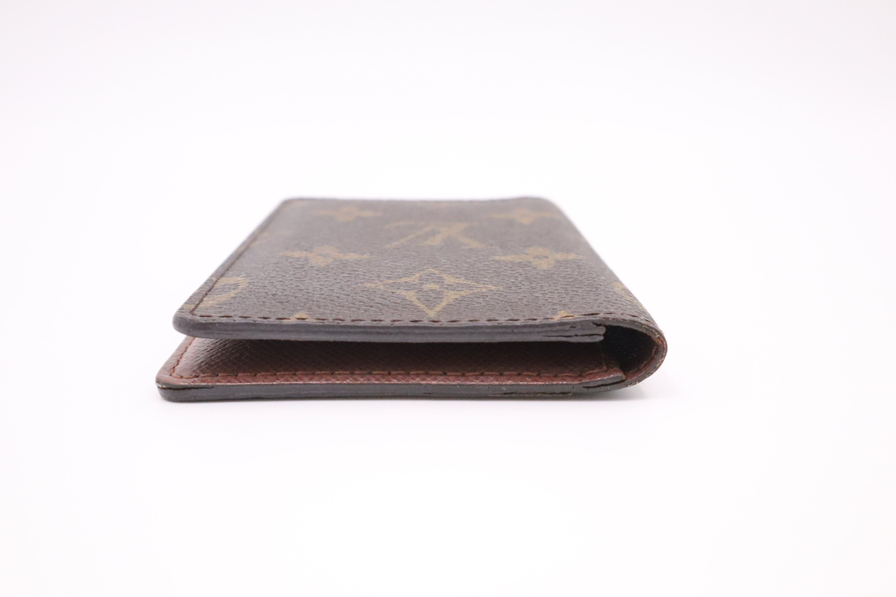 – Edges/glazing: Â Very good, has some worn areas with seams slightly visible and a few dull spots. Some loose stitching in the lining of the outer pocket.