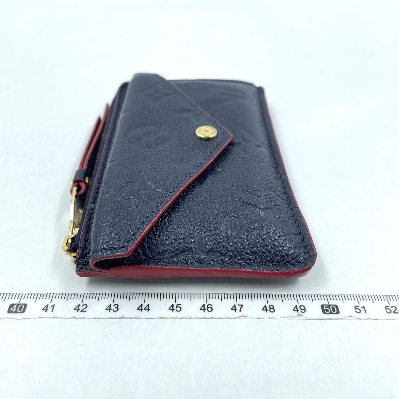 The card holder Recto Verso in monogram Empreinte Leather is an ingenious, multi-functional design. Among its practical features are a compartment with a wide, L-shaped zip, which can hold coins, an in-between pocket for folded bills, an envelop-style front pocket, and three card slots. It can also be hooked onto a bag or belt.