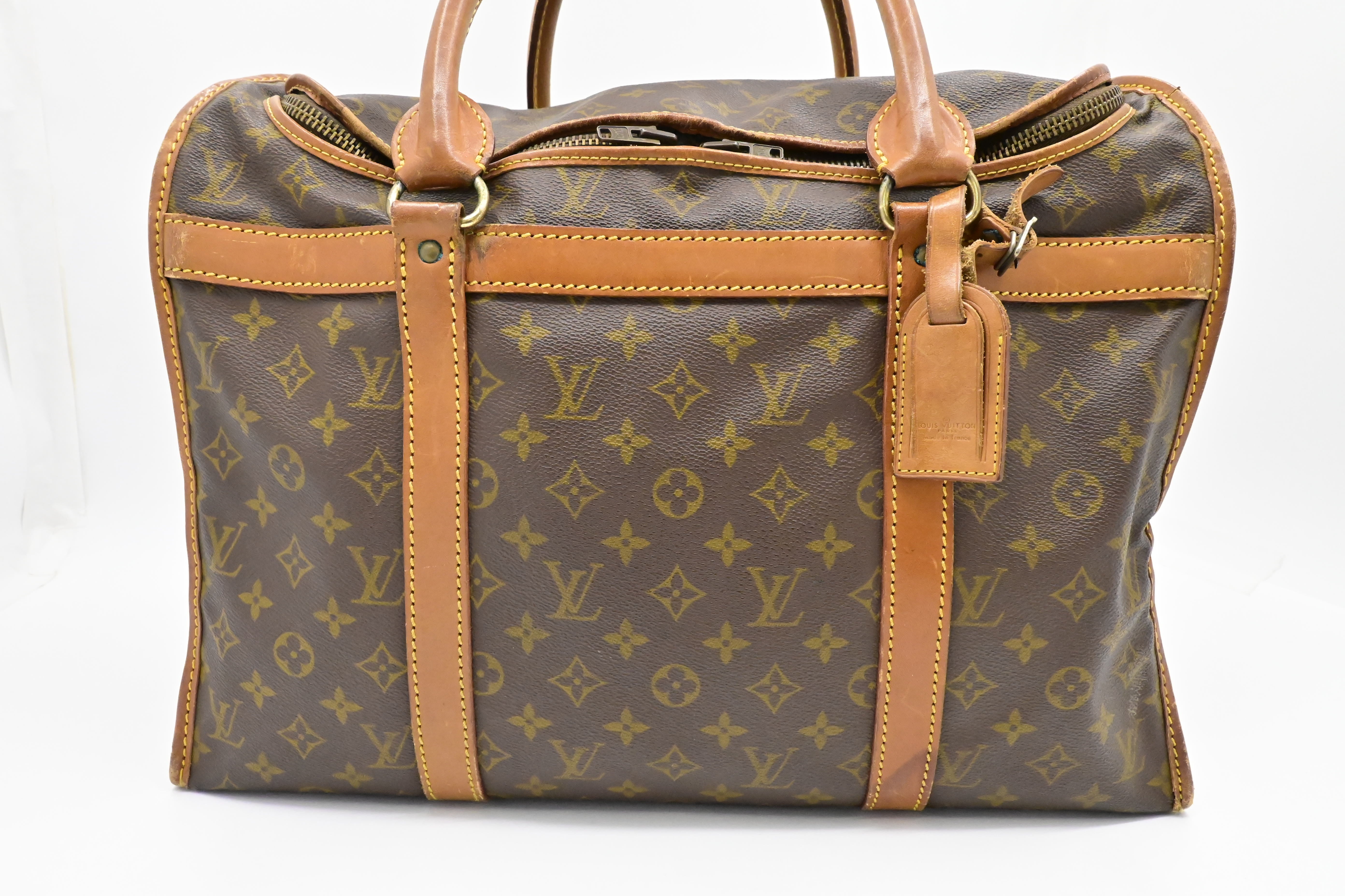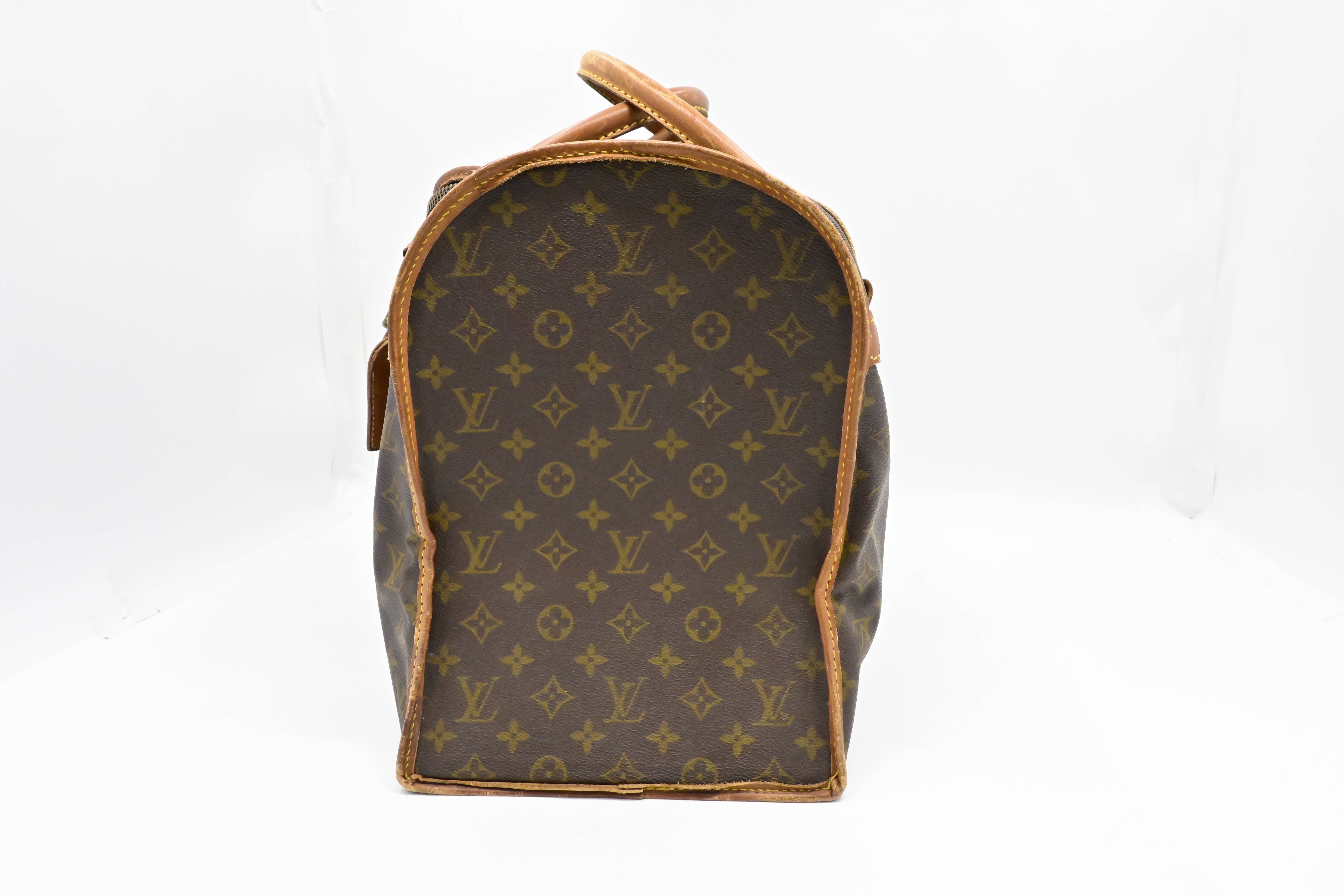 The monogram canvas is still in STUNNING condition but slightly bent on the extremely sturdy sides. All vachetta parts (sturdy handles and corners included) are solid with some various surface rubbing marks. Gold tone hardware with tarnishing. The vintage Ãclair zippers are still running super well.