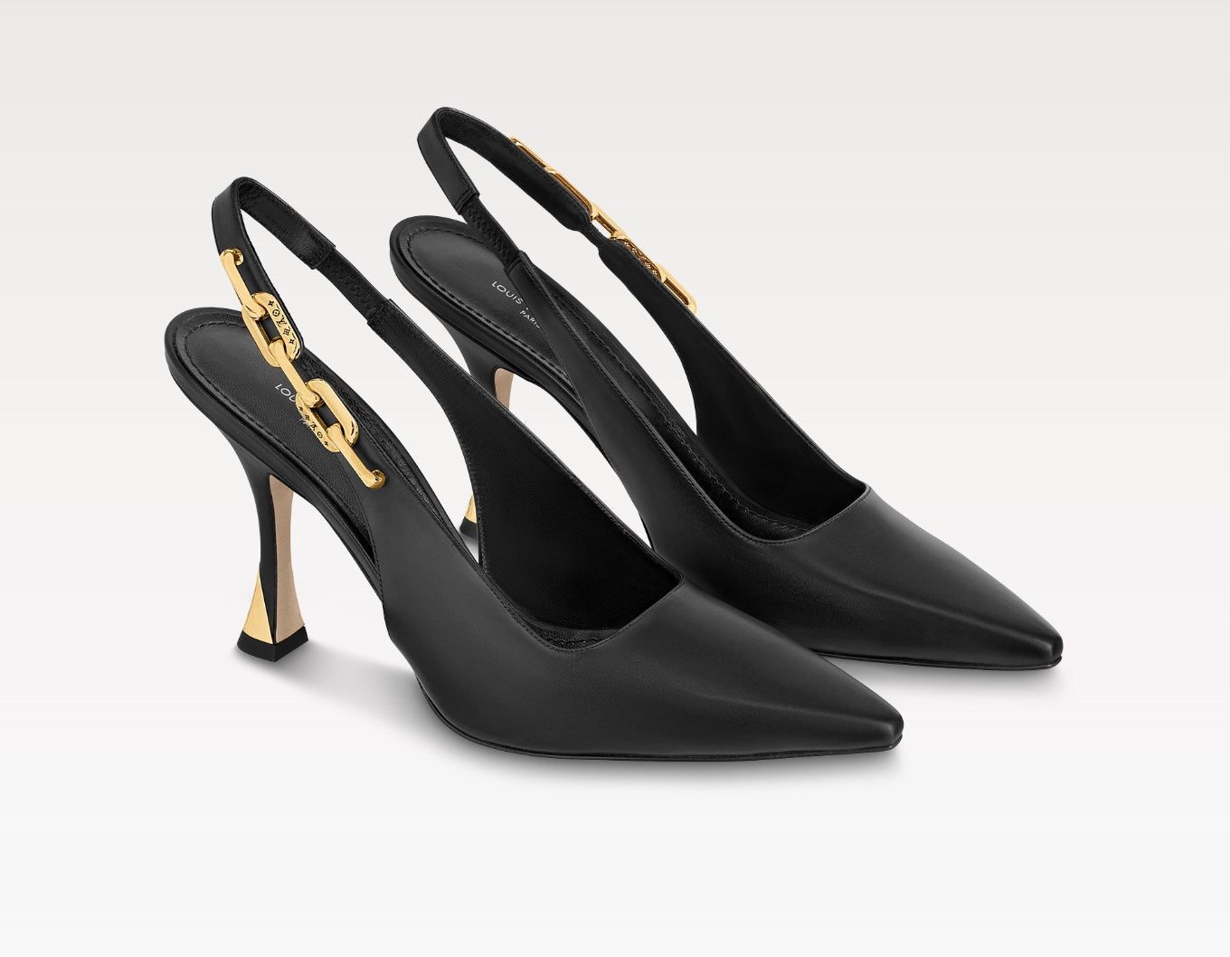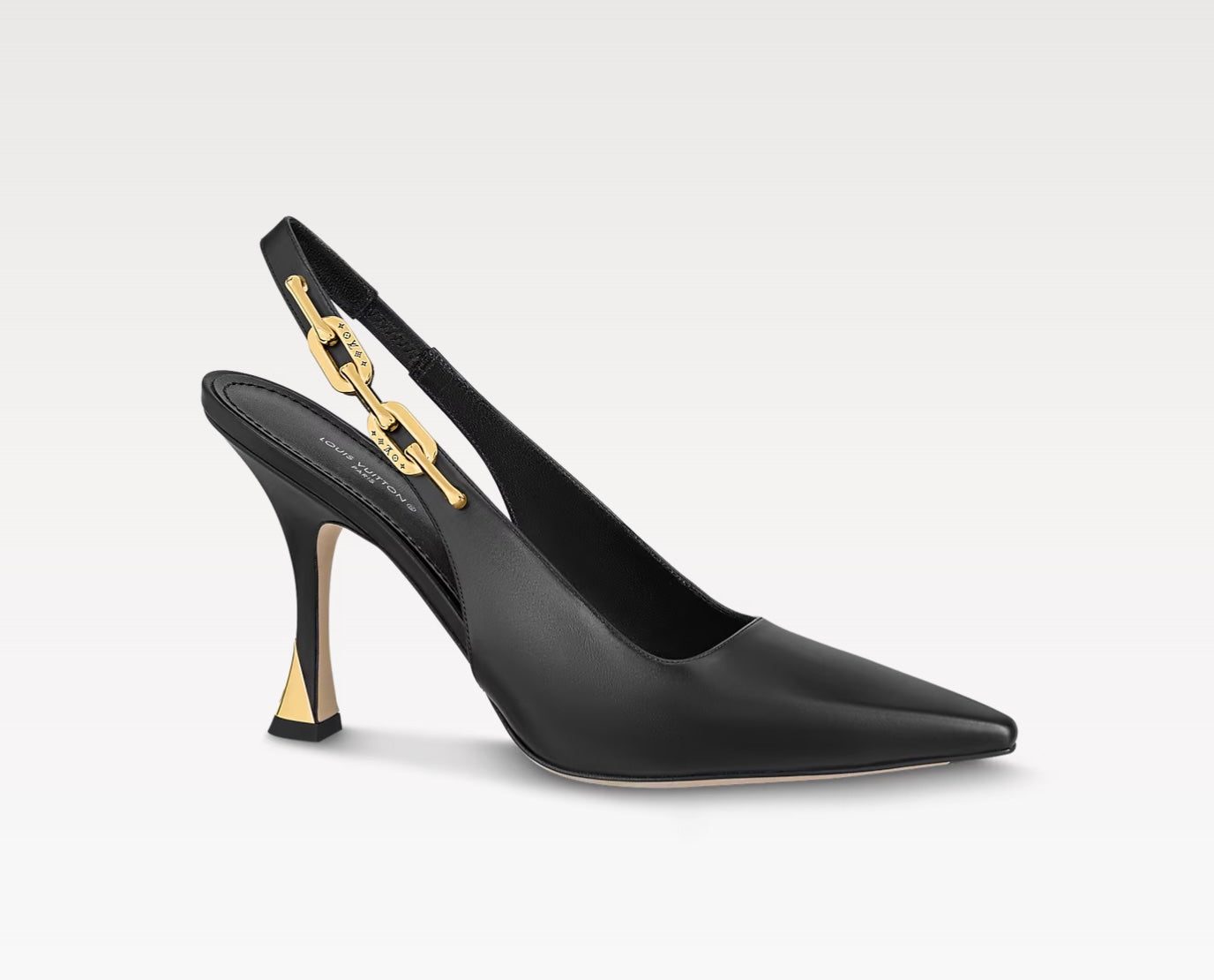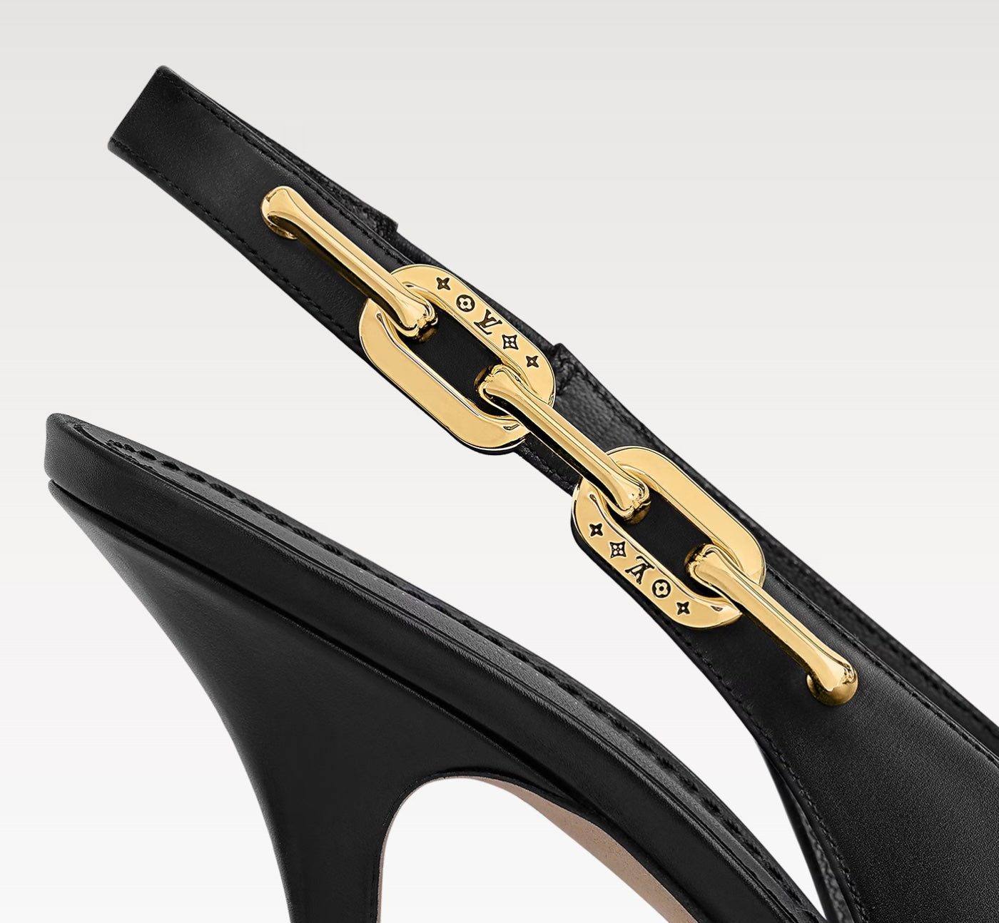 A standout detail is the Elasticized back strap, adorned with a Monogram-engraved chain inspired by the iconic Coussin bag. The LV Initials on the heel and a supple leather outsole complete the luxurious craftsmanship.