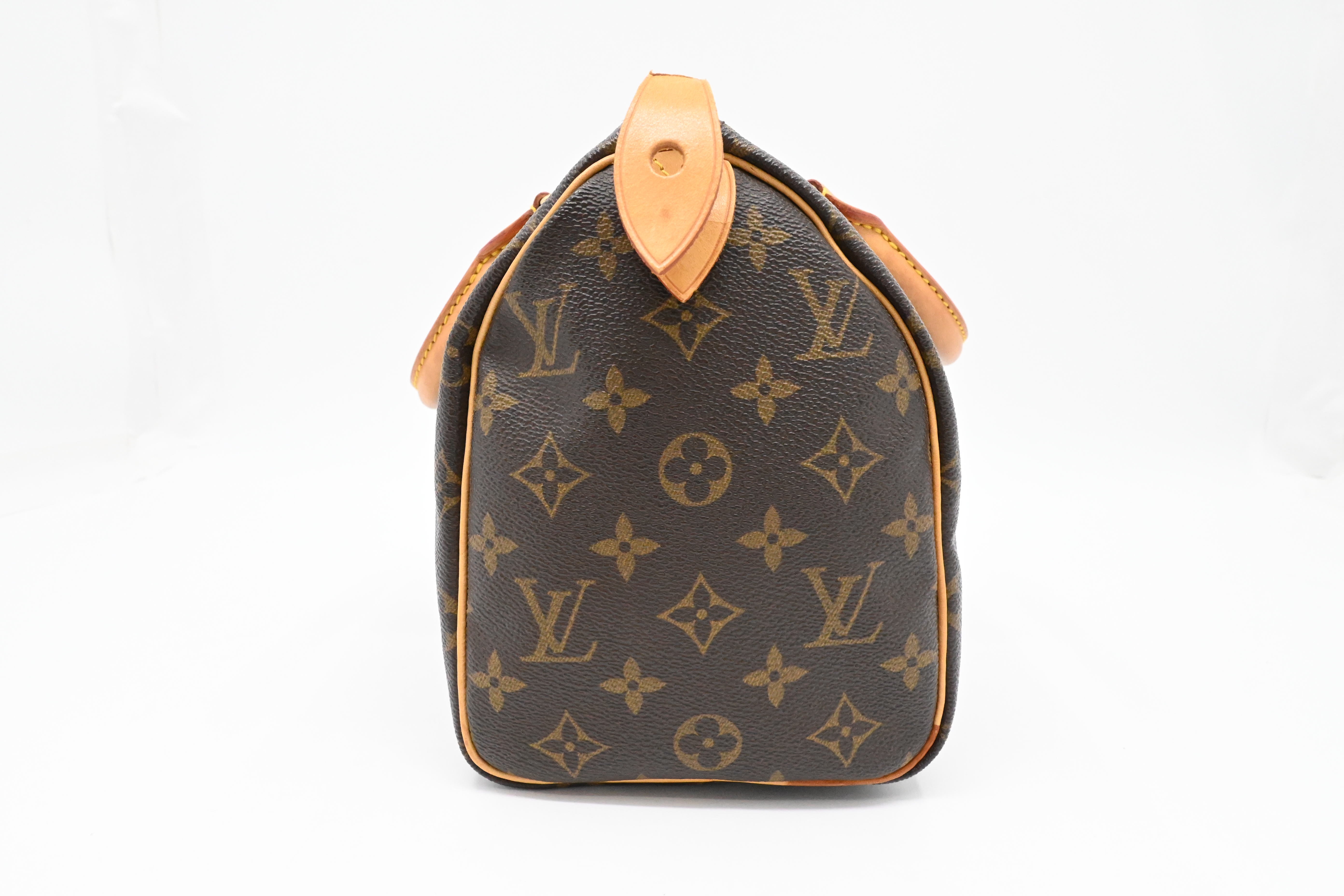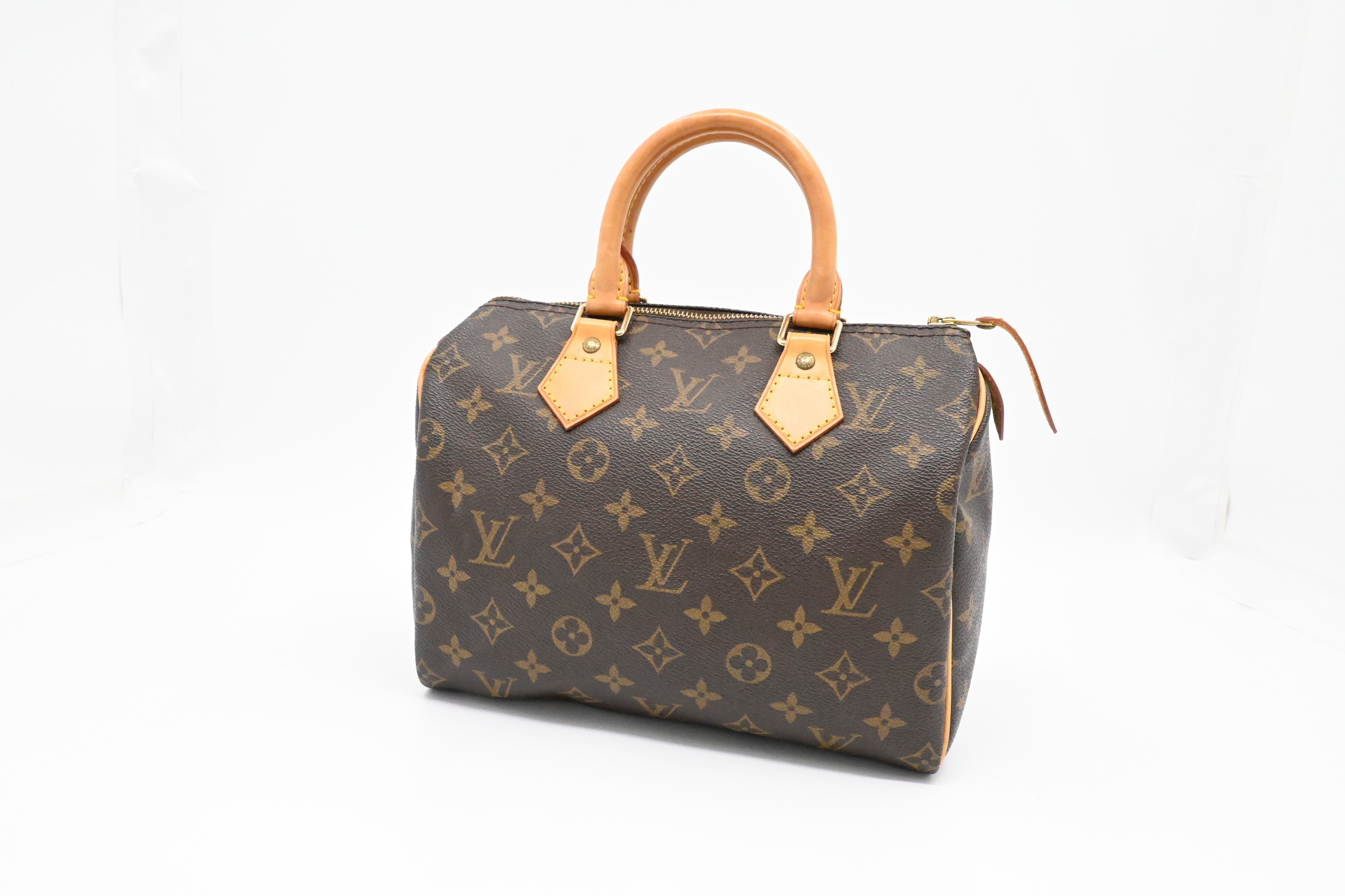 – Leather parts/Vachetta: Very good, even pattina with some faint watermarks, small crack on zipper pull