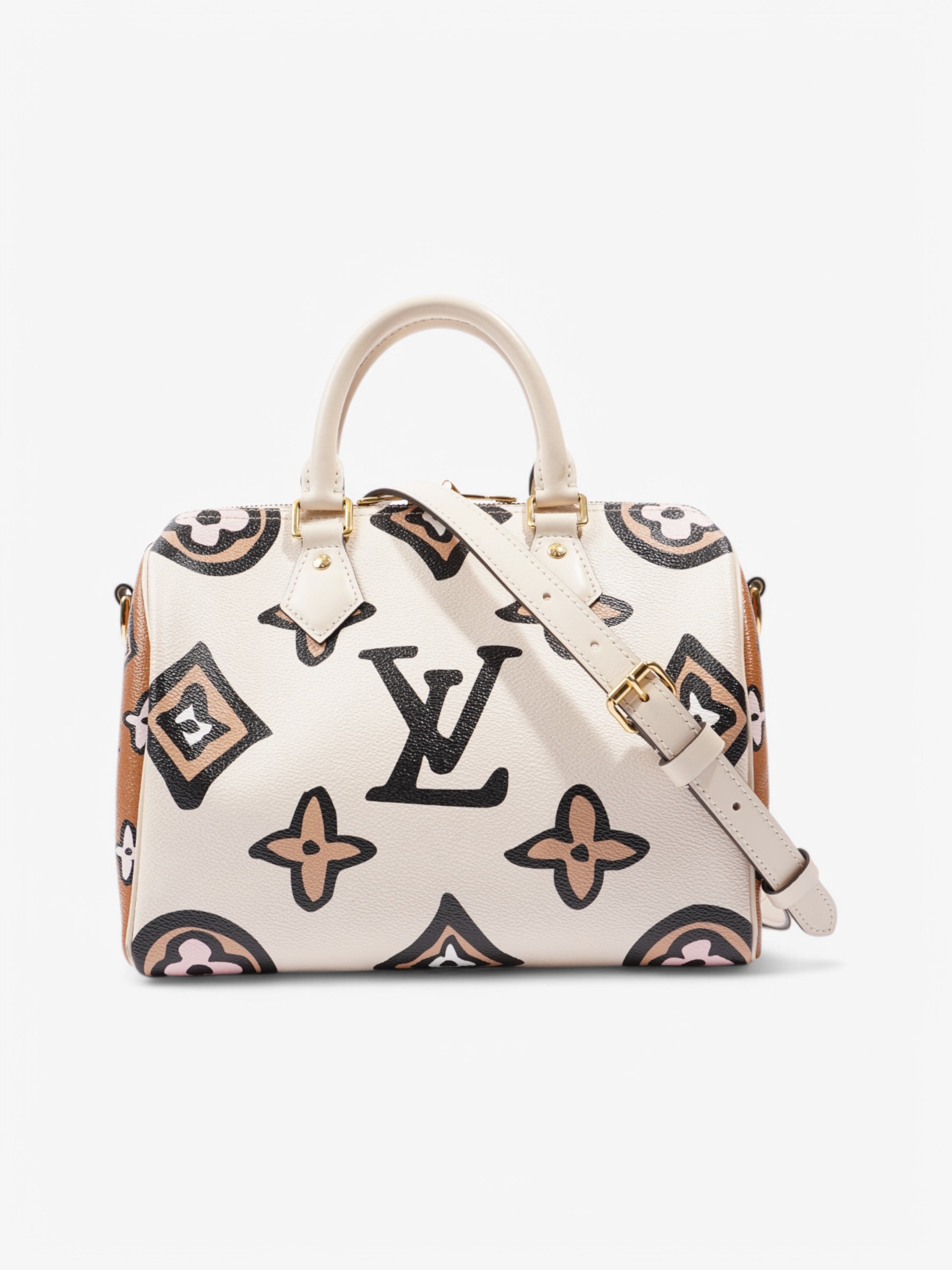 Louis Vuitton Speedy Bandouliere Cream / Brown Coated Canvas 25
