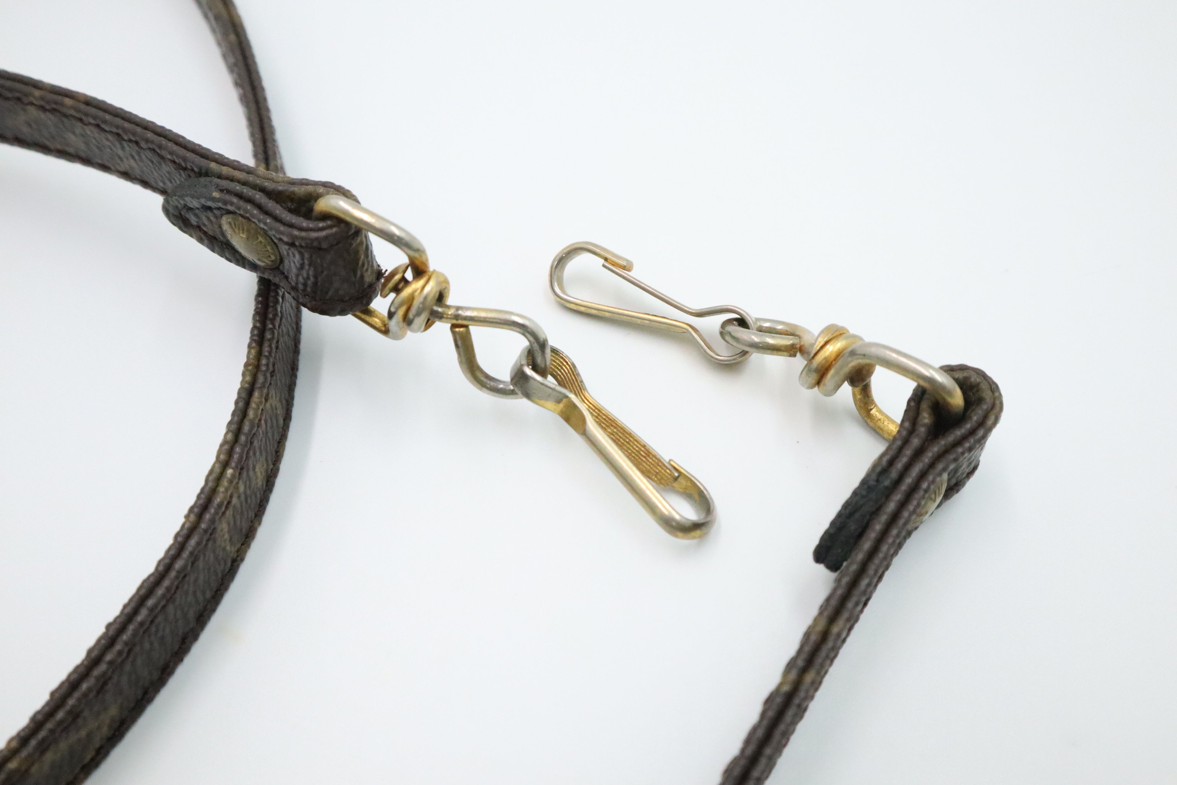 – Hardware: Gold tone with silvering. Hooks are in great shape