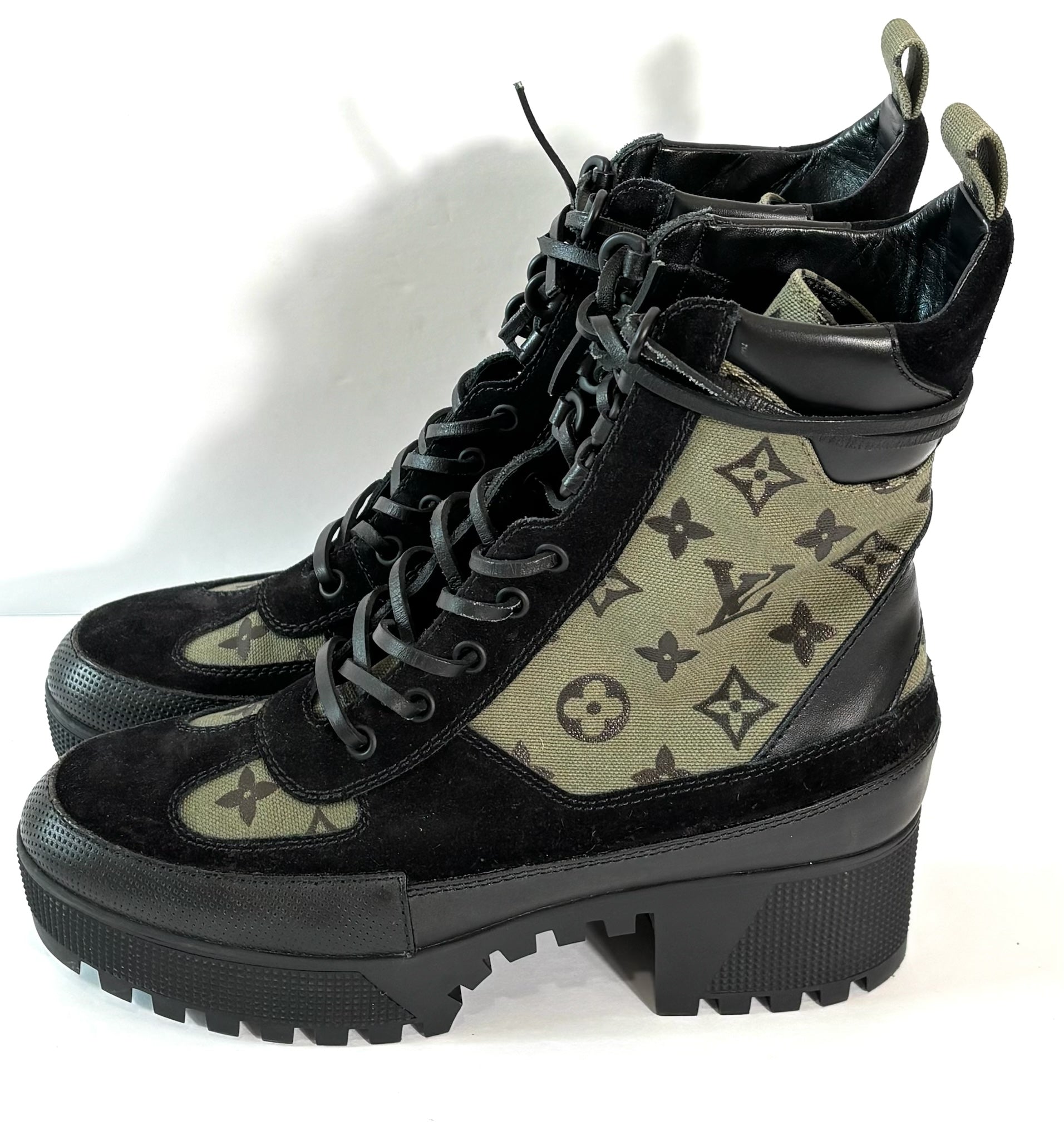 LOUIS VUITTON SUEDE MONOGRAM LAURETTE PLATFORM DESERT BOOTS