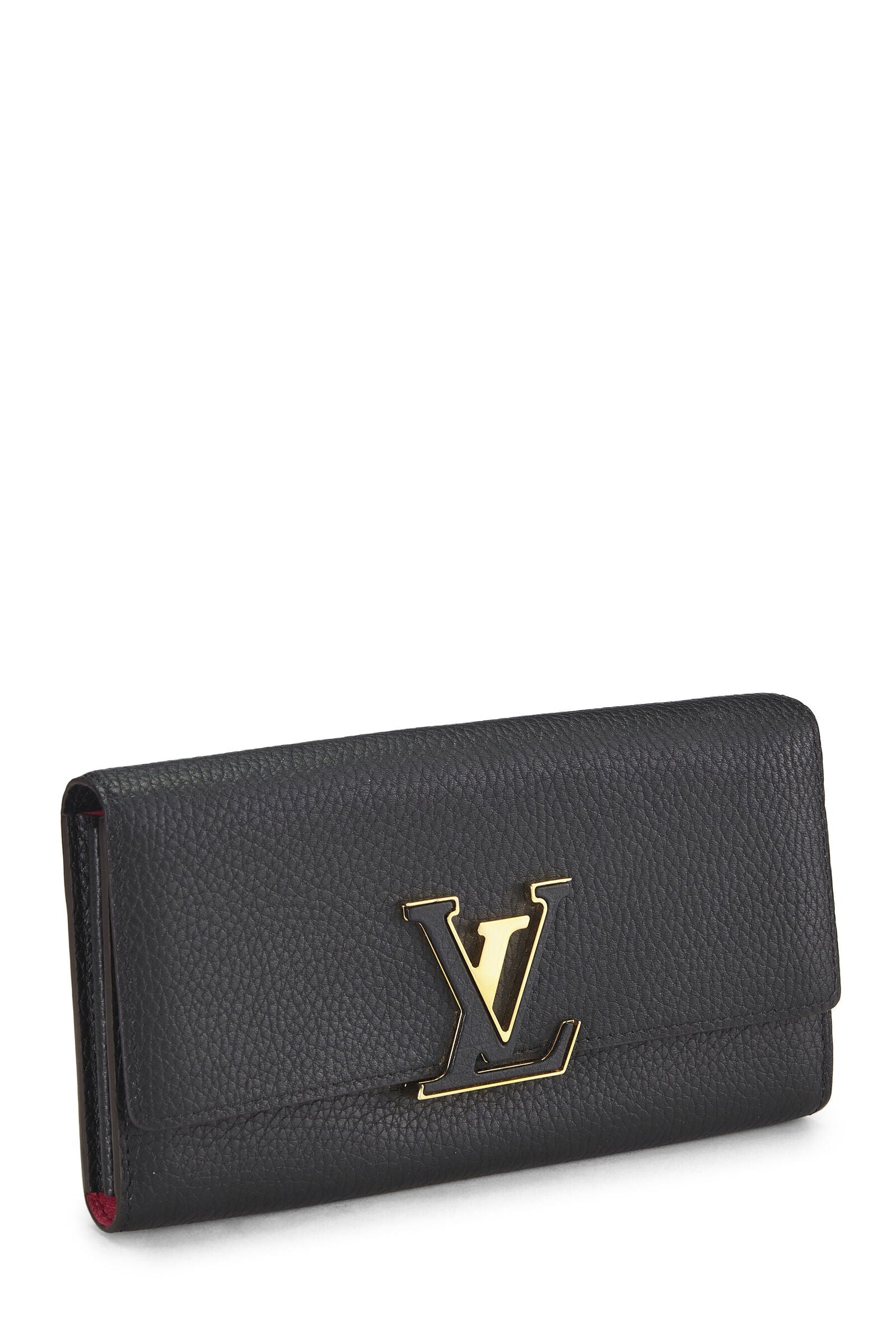 Crafted in supple Taurillon leather with a leather-covered LV signature, this Elegant Wallet is inspired by the Emblematic Capucines line.Â
