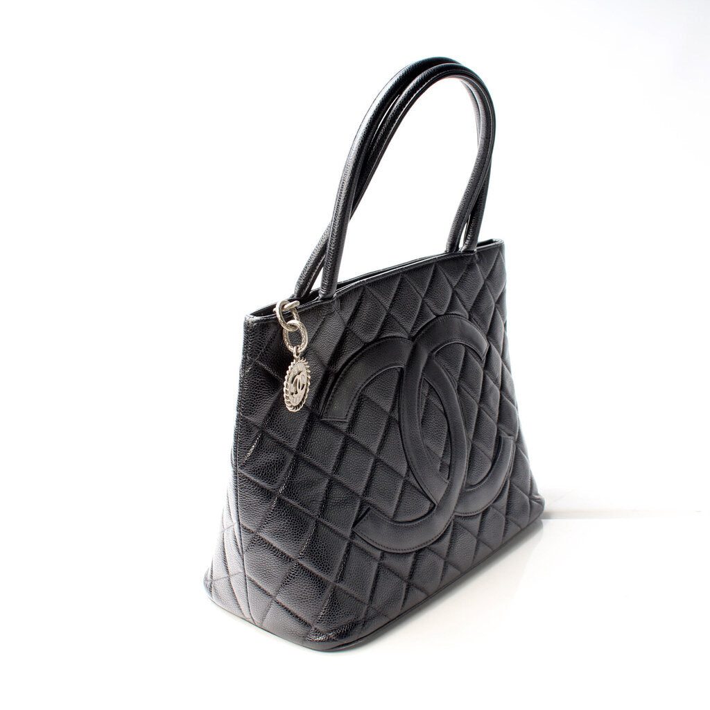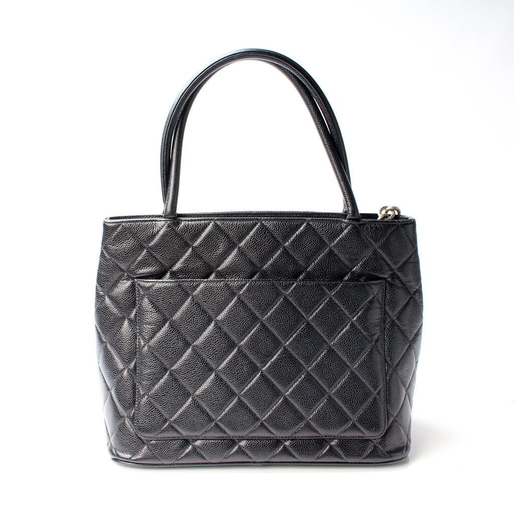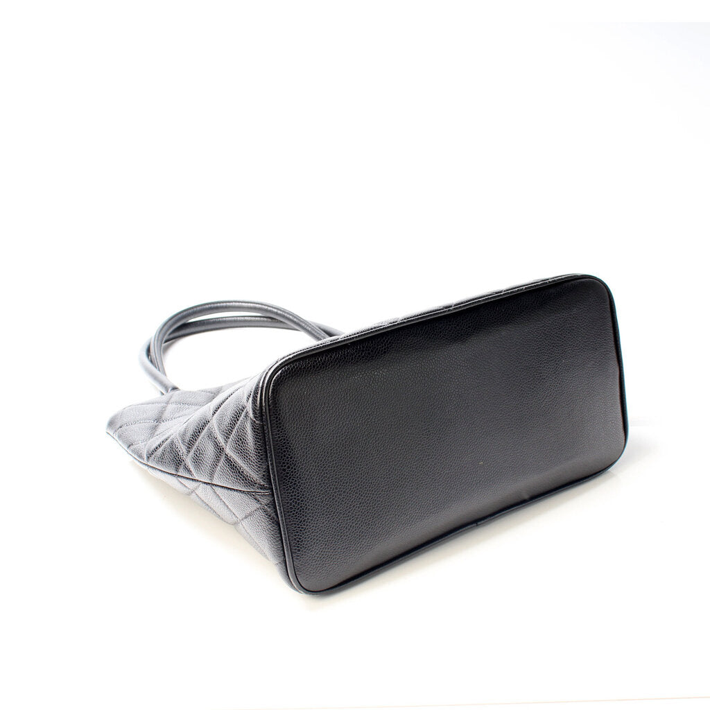 Chanel Medallion Tote. The exterior is in the classic caviar leather.Â