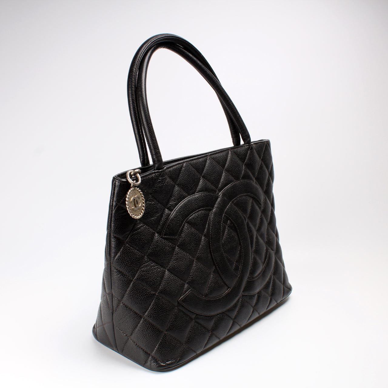 Chanel Medallion Tote. The exterior is in the classic caviar leather.Â