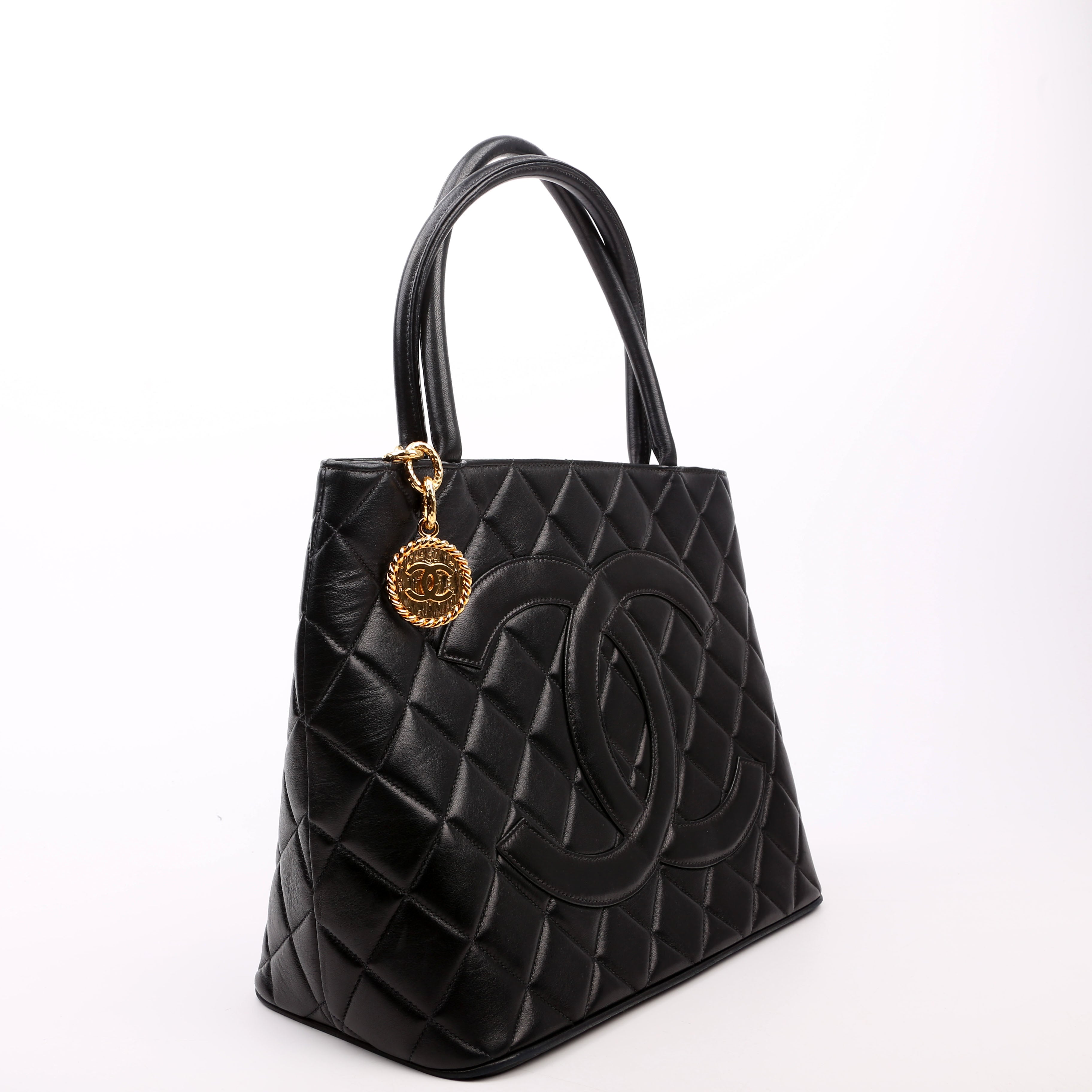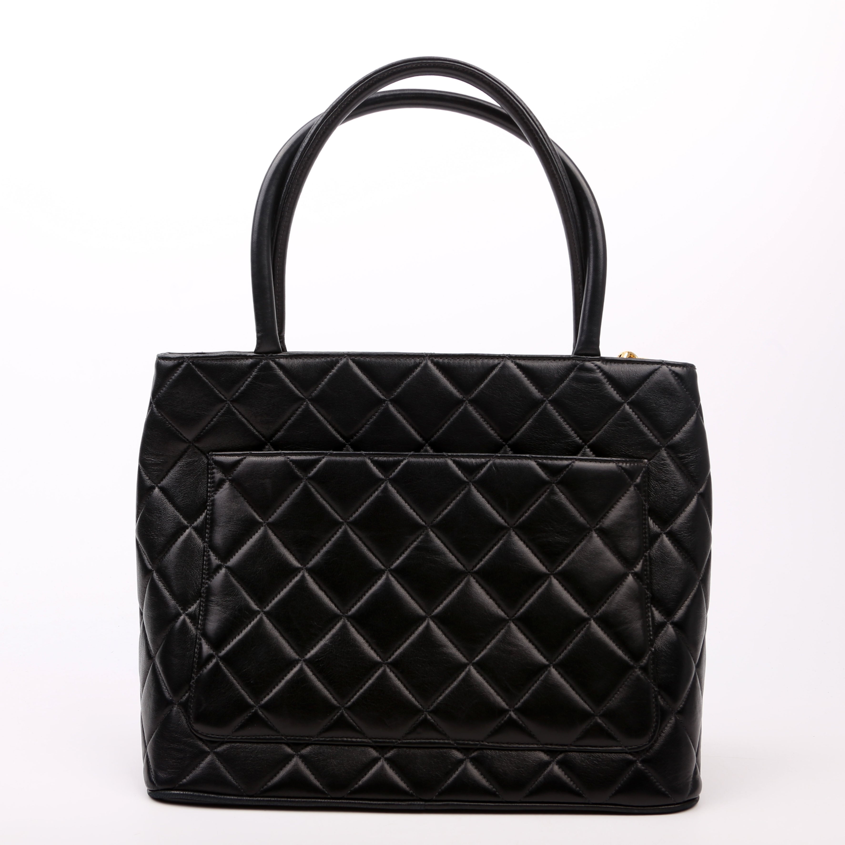 Chanel Medallion Tote. The exterior is in the classic lambskin leather.Â