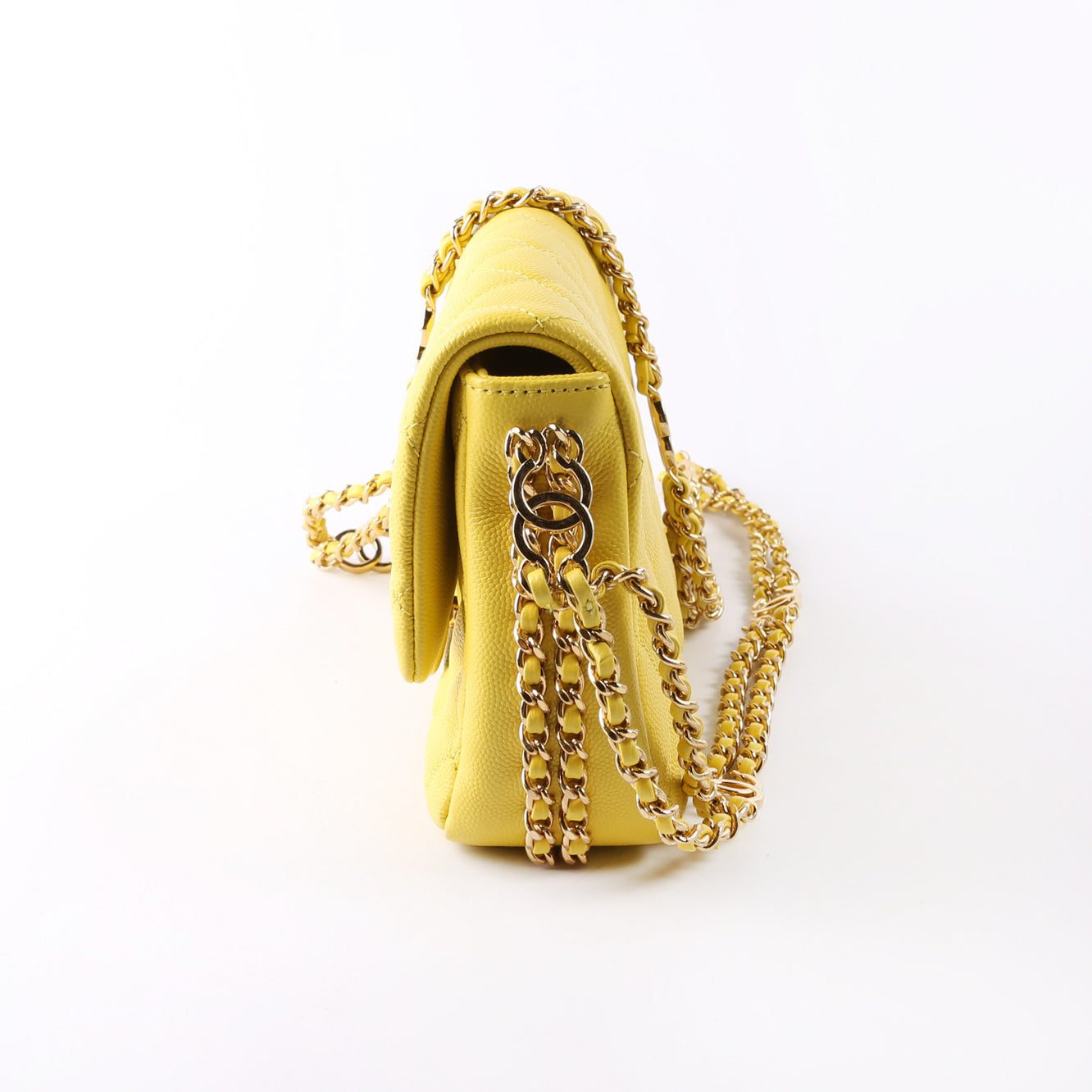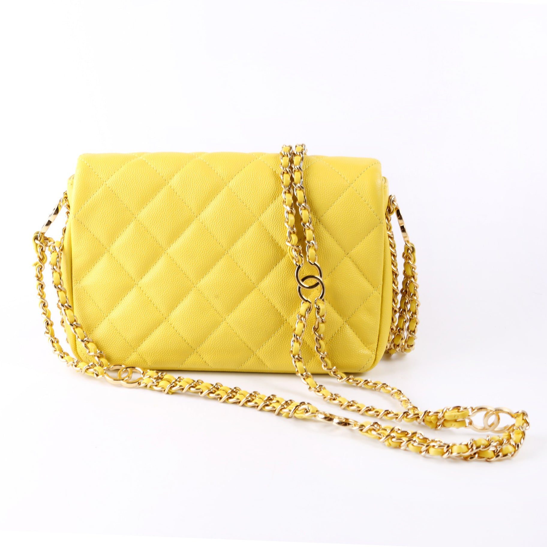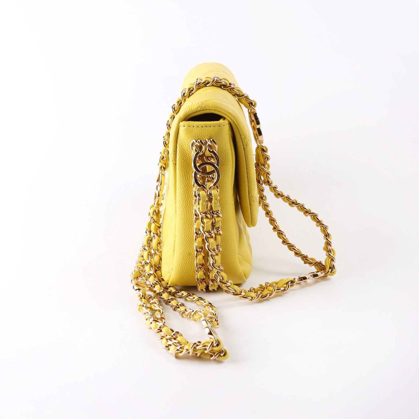 Chanel Mini CC You Flap. The exterior is in the classic Caviar leather.Â