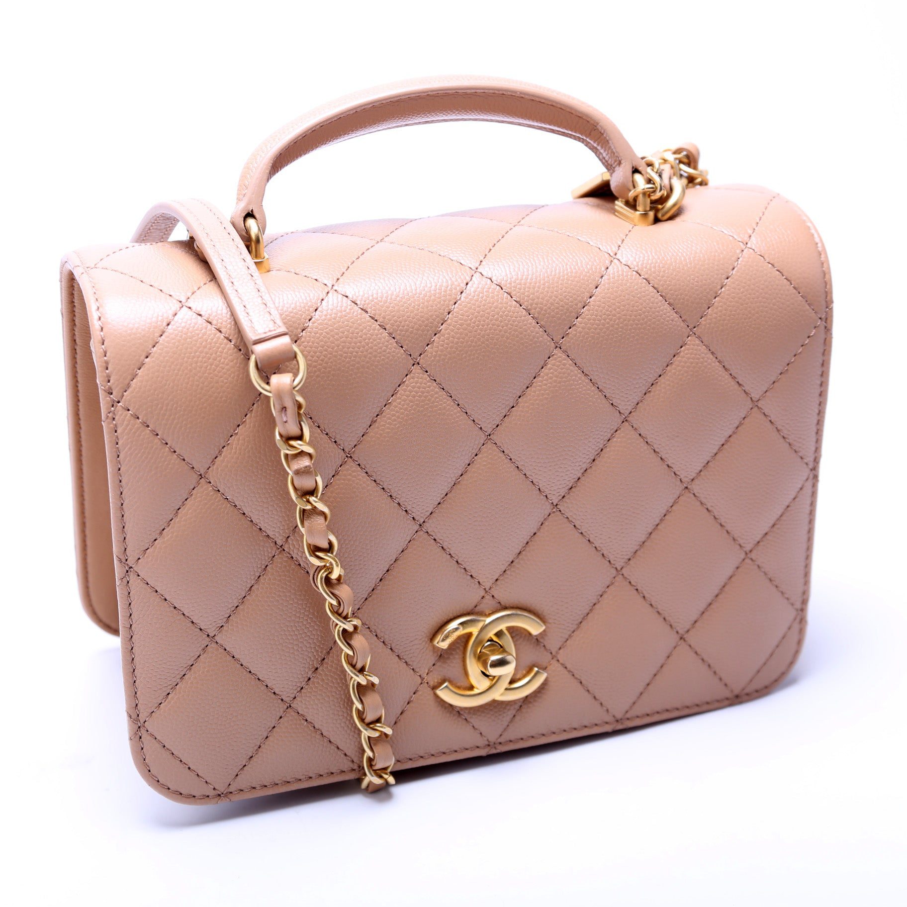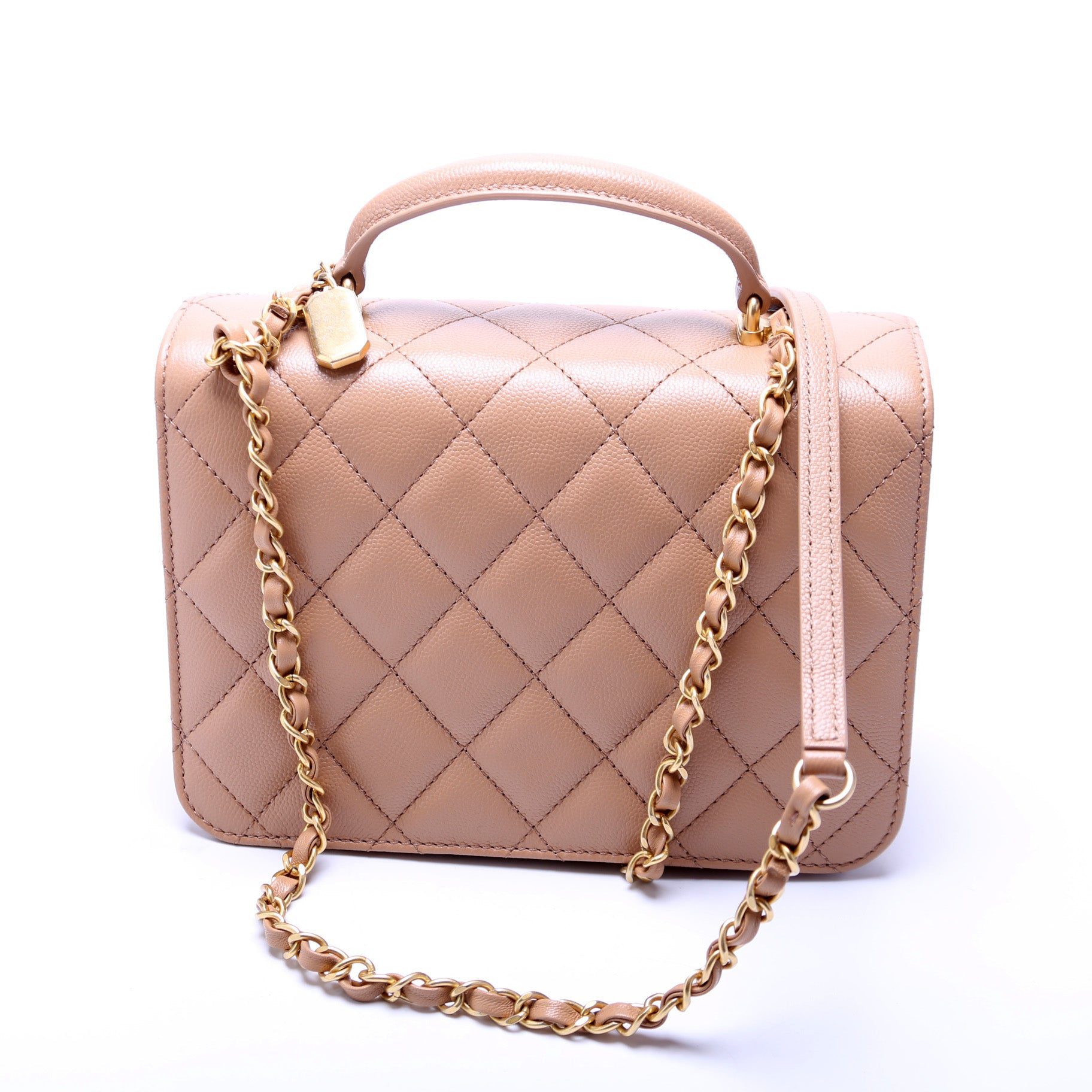 Chanel Mini Top Handle Flap Bag Quilted Caviar.