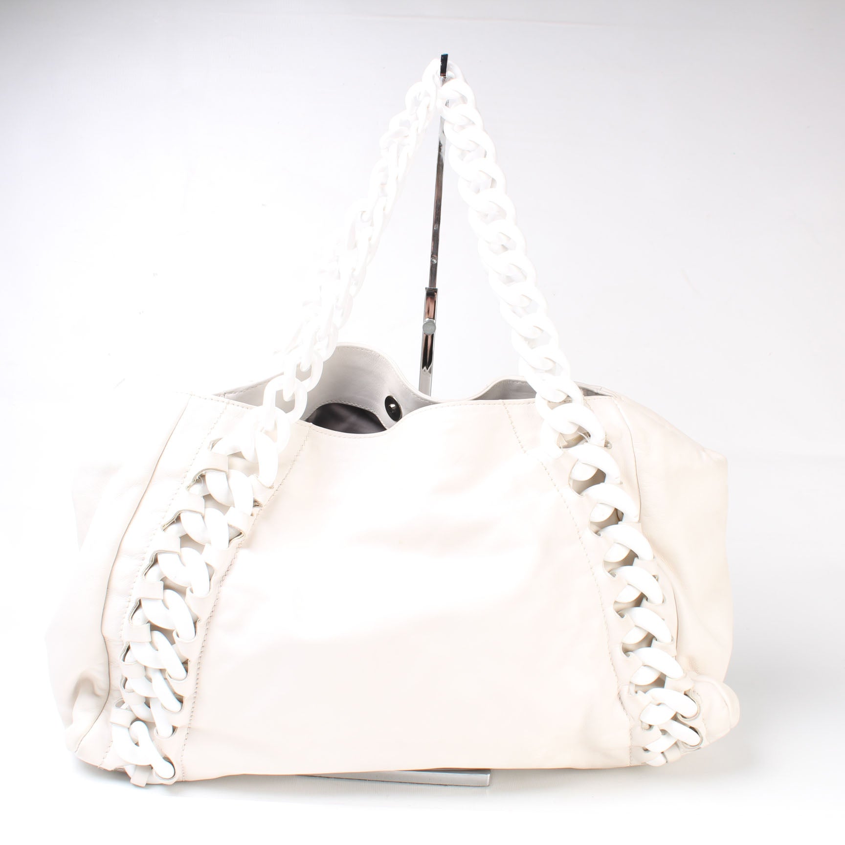 Strap: The chain strap shows minor wear and stains.