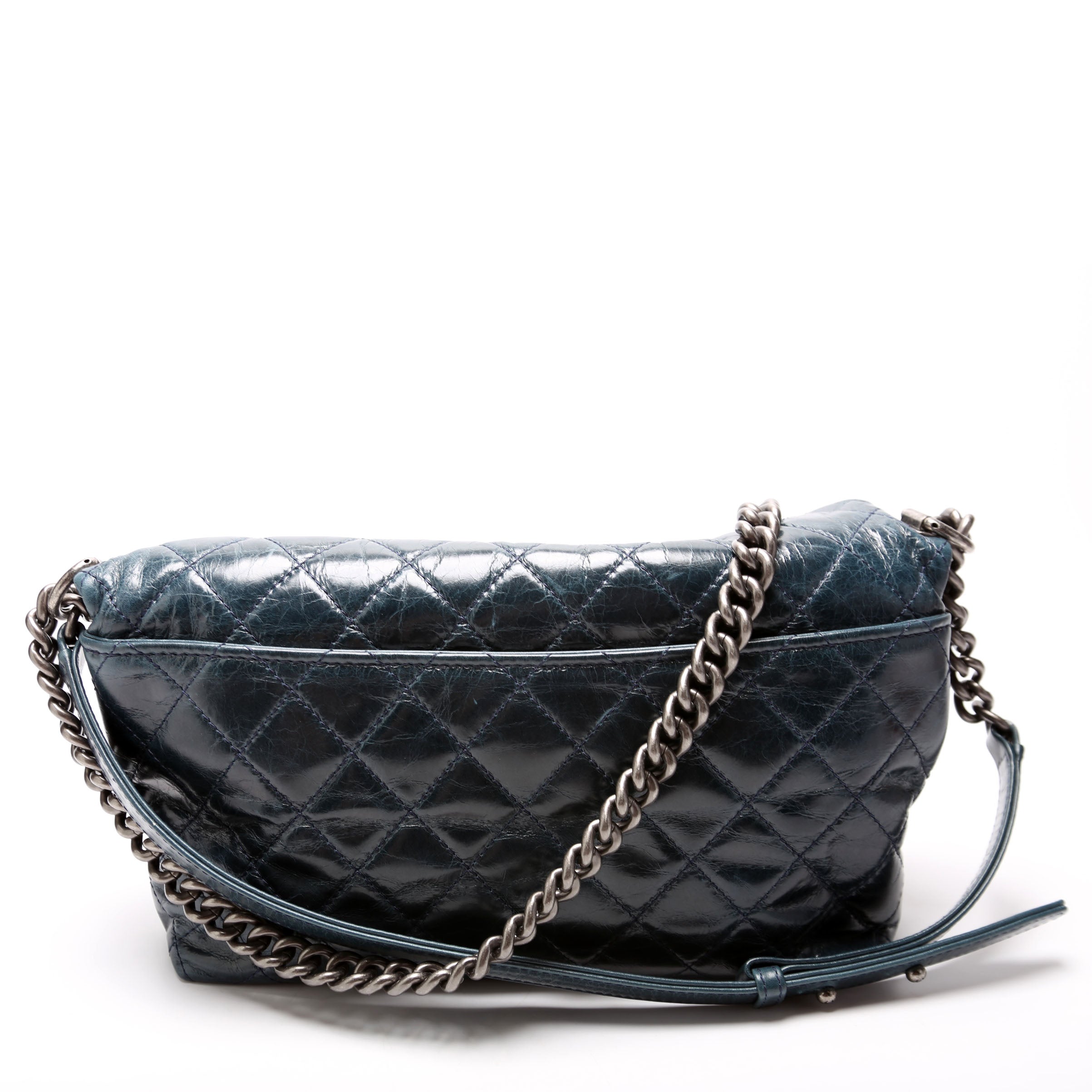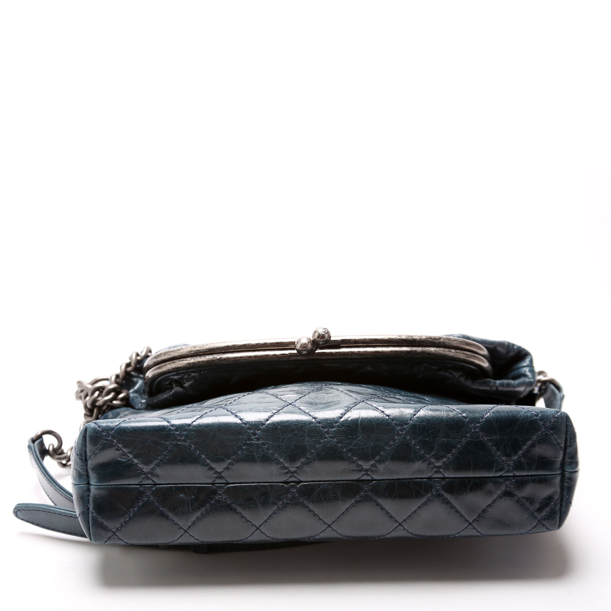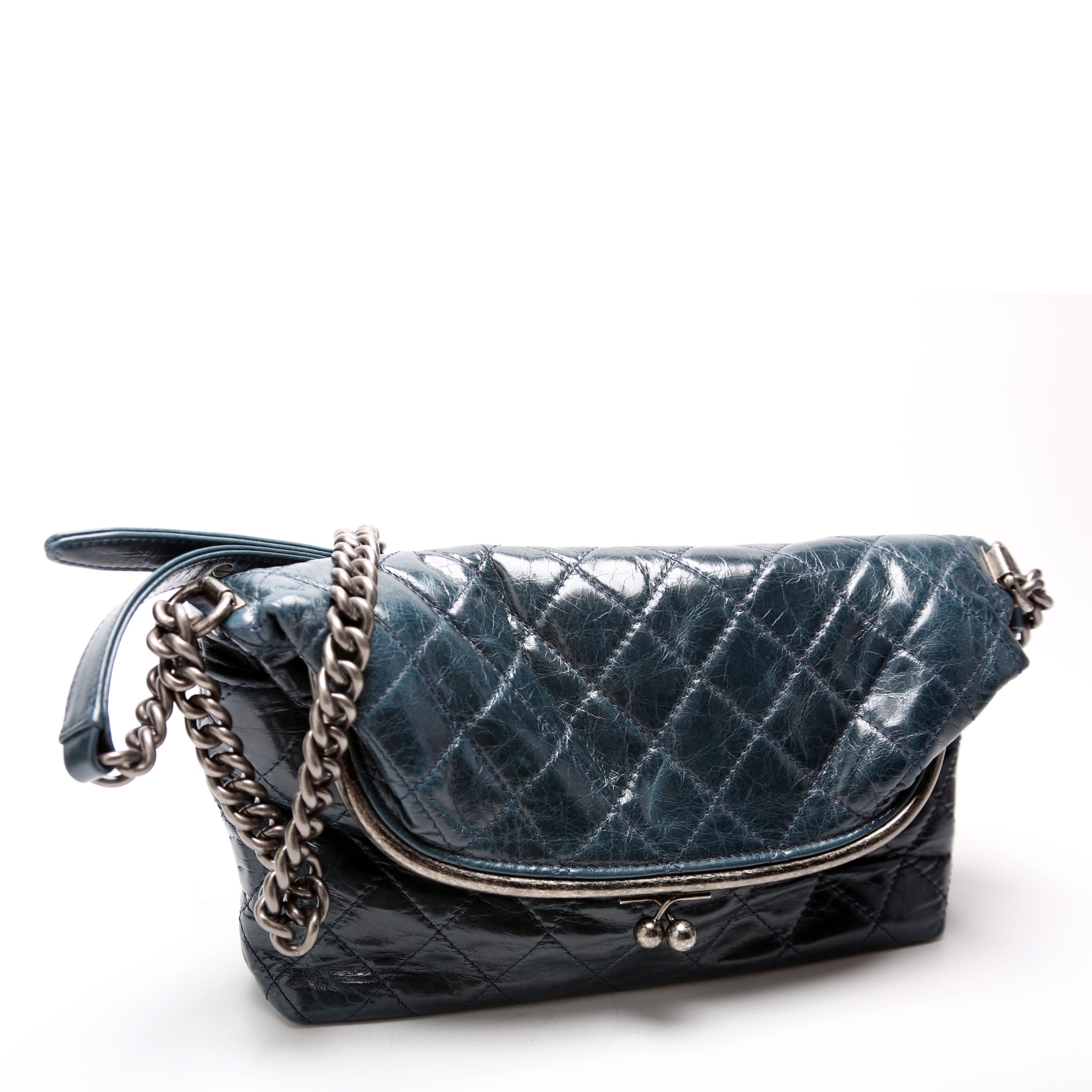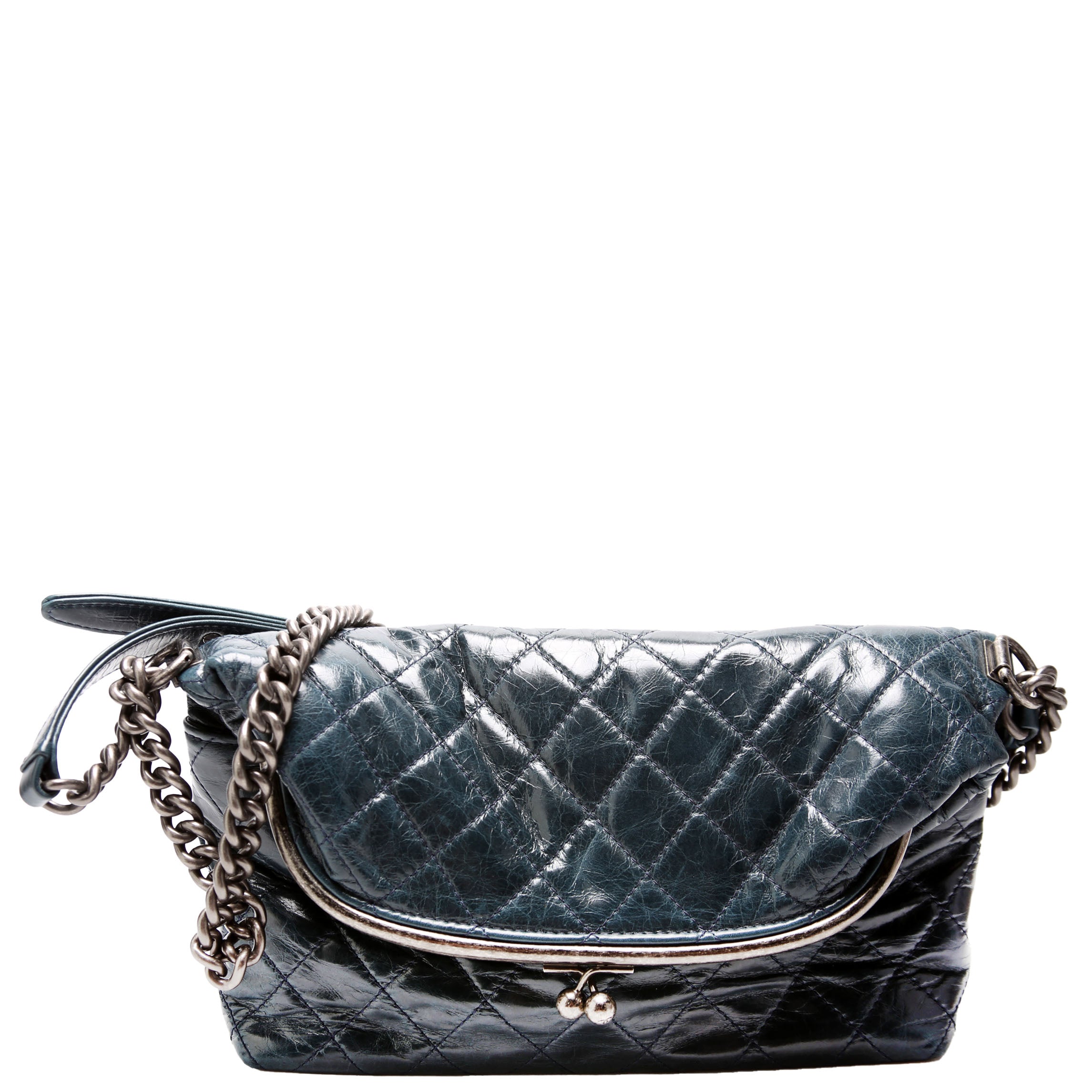 Chanel Tabatiere Kisslock Fold Over Quilted Aged Calfskin Bag 21M�. The exterior is in the classic Chanel calfskin Leather.Â