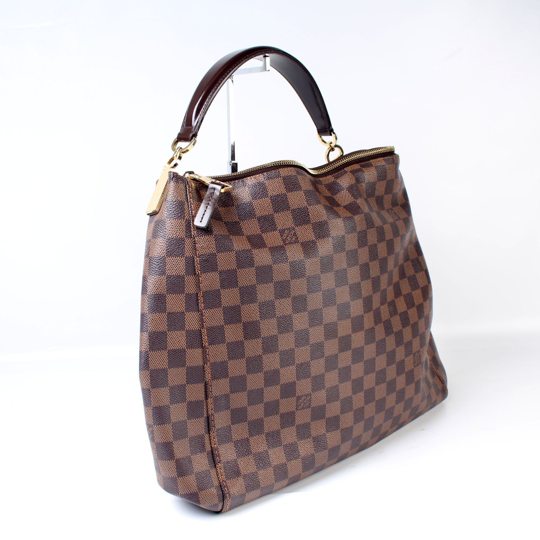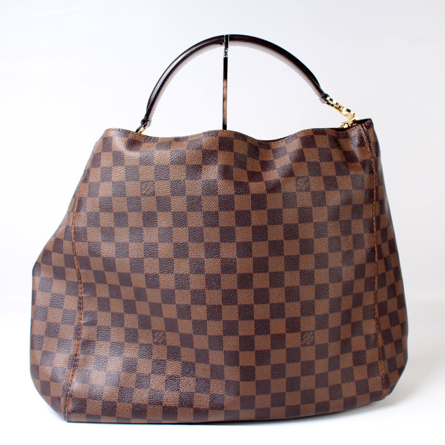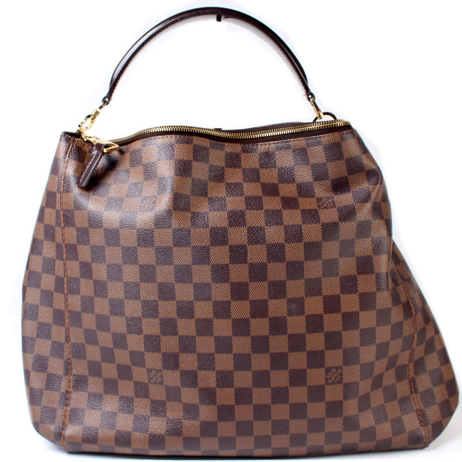 Louis Vuitton Portobello GM. The exterior is in the classic Damier Ebene coated canvas. Â