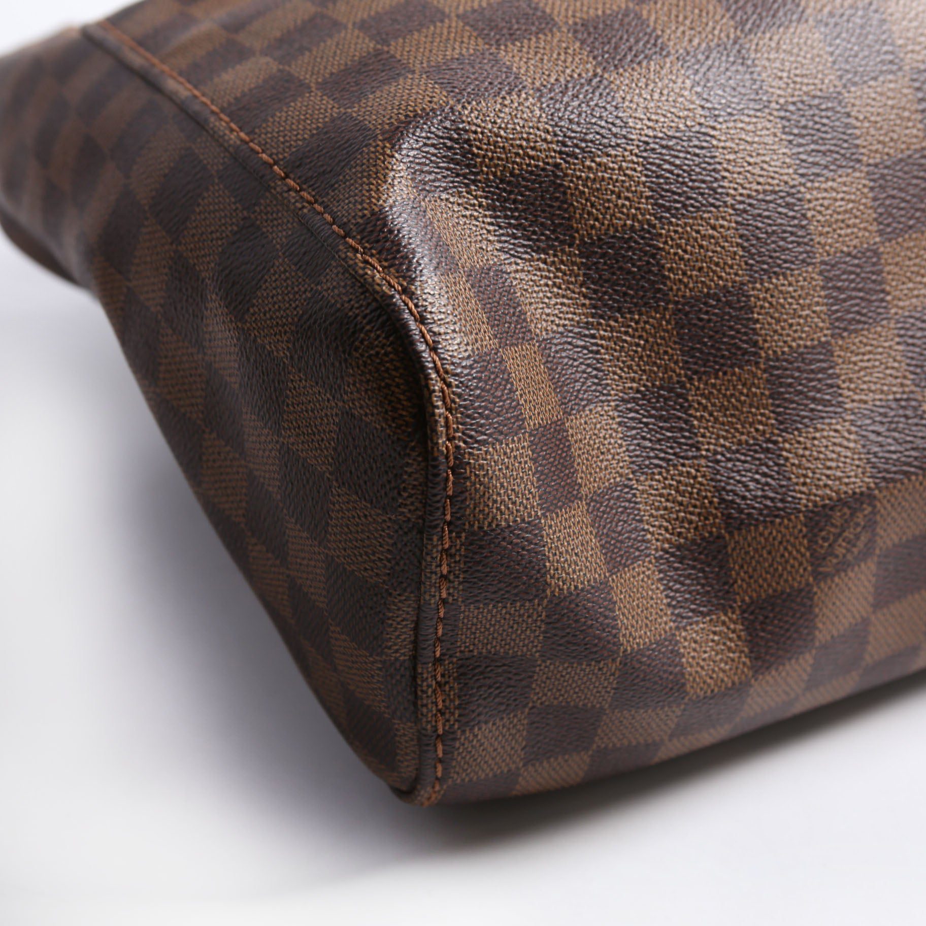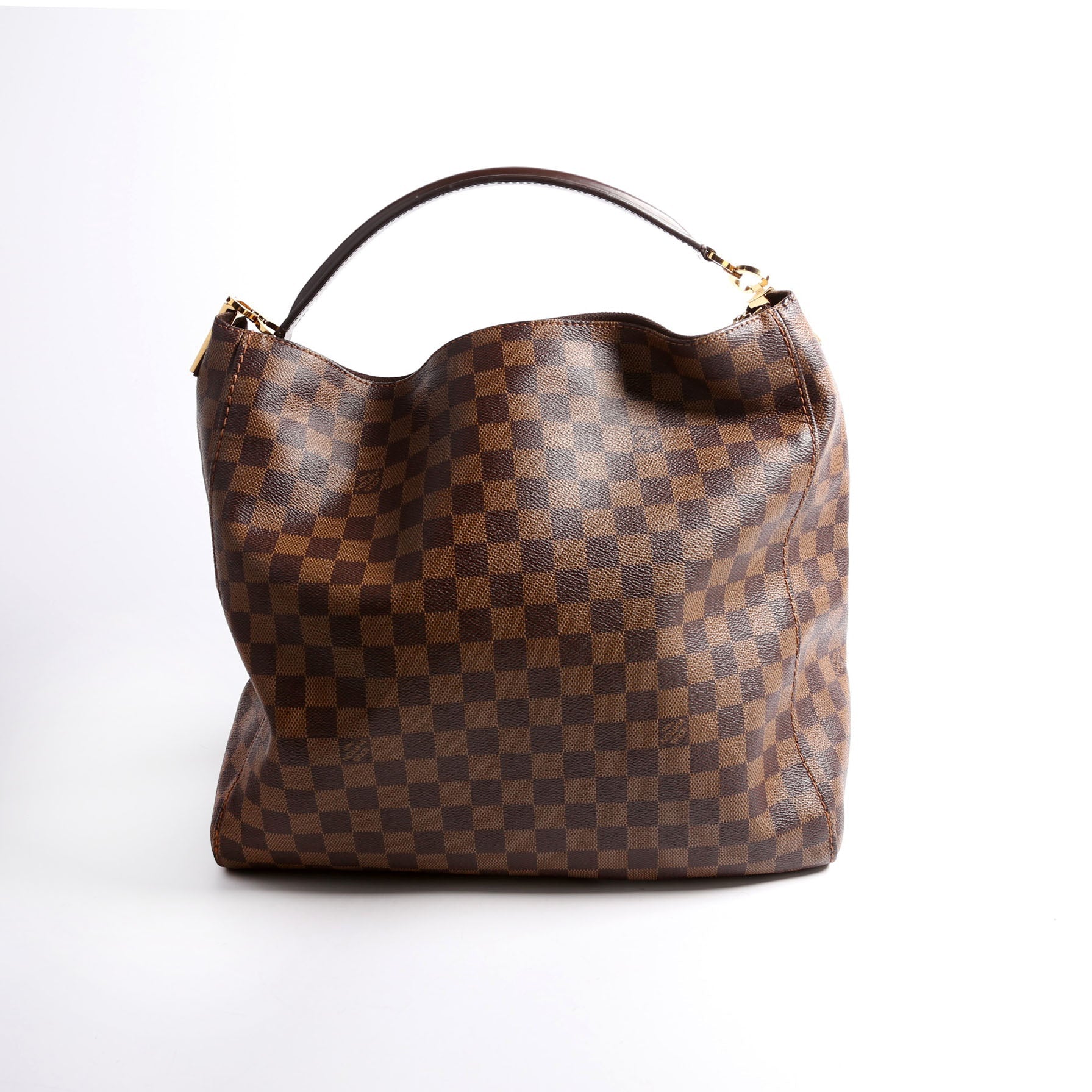 Louis Vuitton Portobello GM . The exterior is in the classic Damier Ebene coated canvas. Â