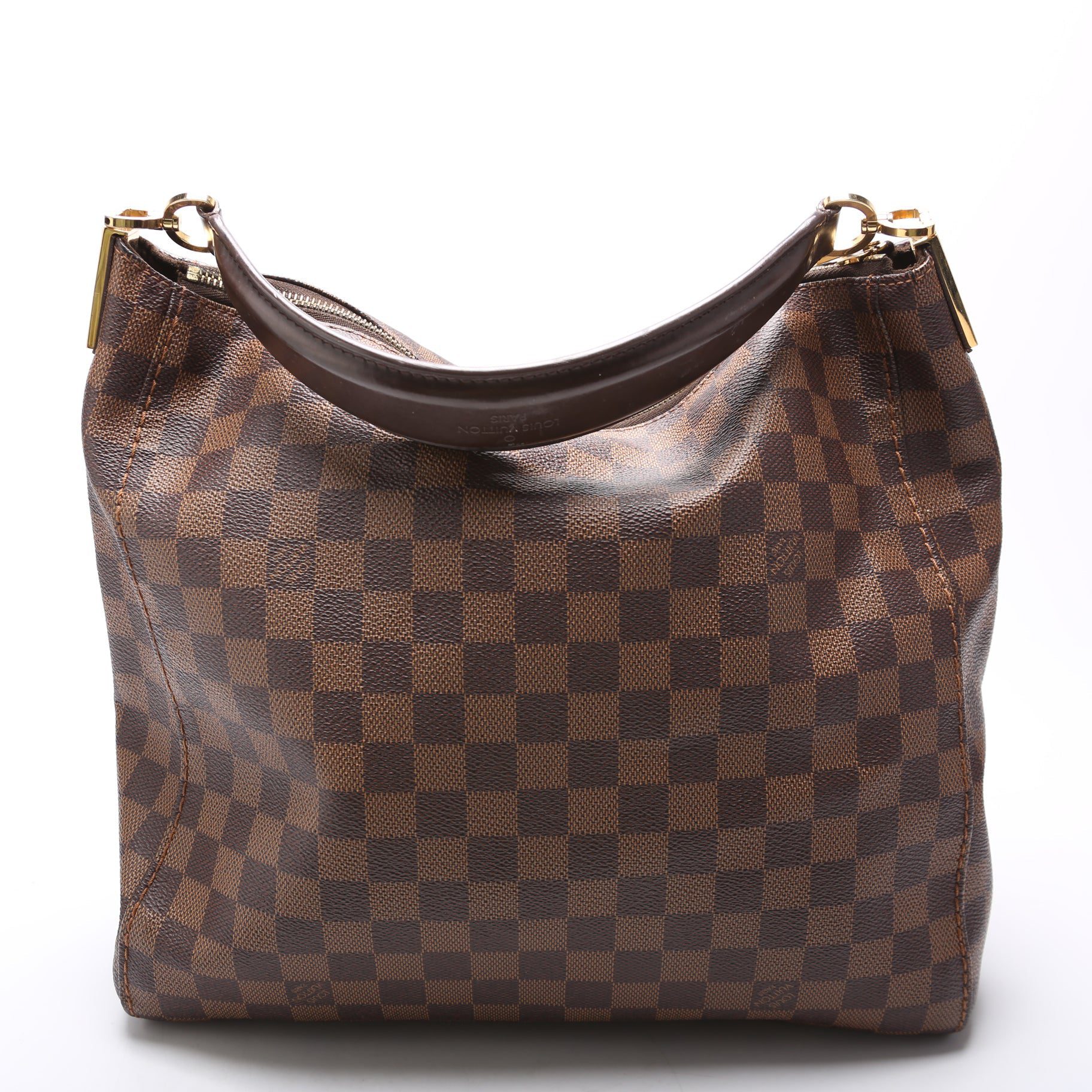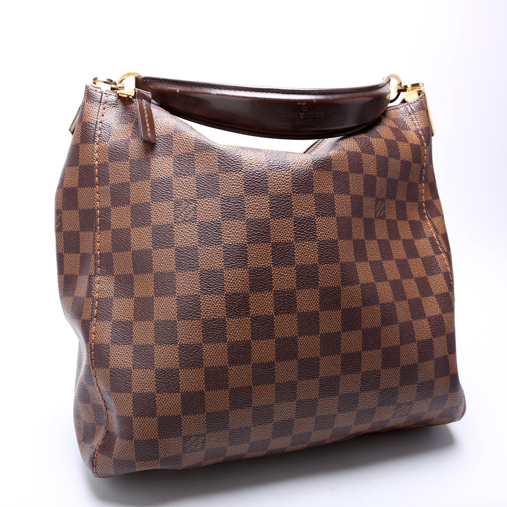 Louis Vuitton Portobello PM . The exterior is in the Louis Vuitton Damier Ebene coated canvas.Â