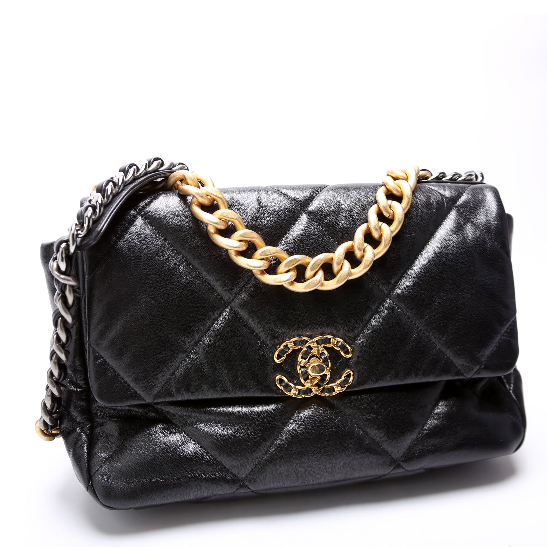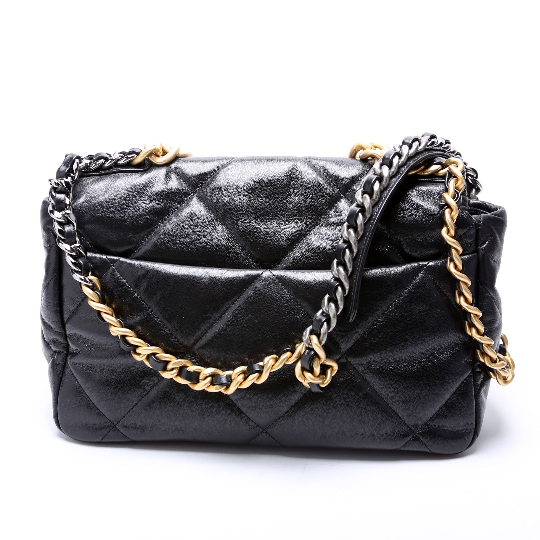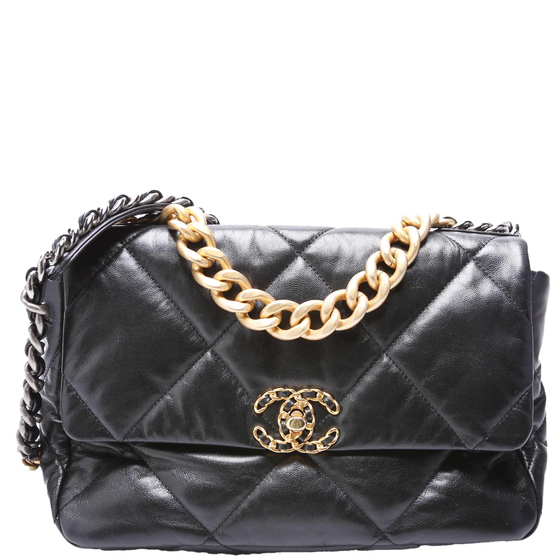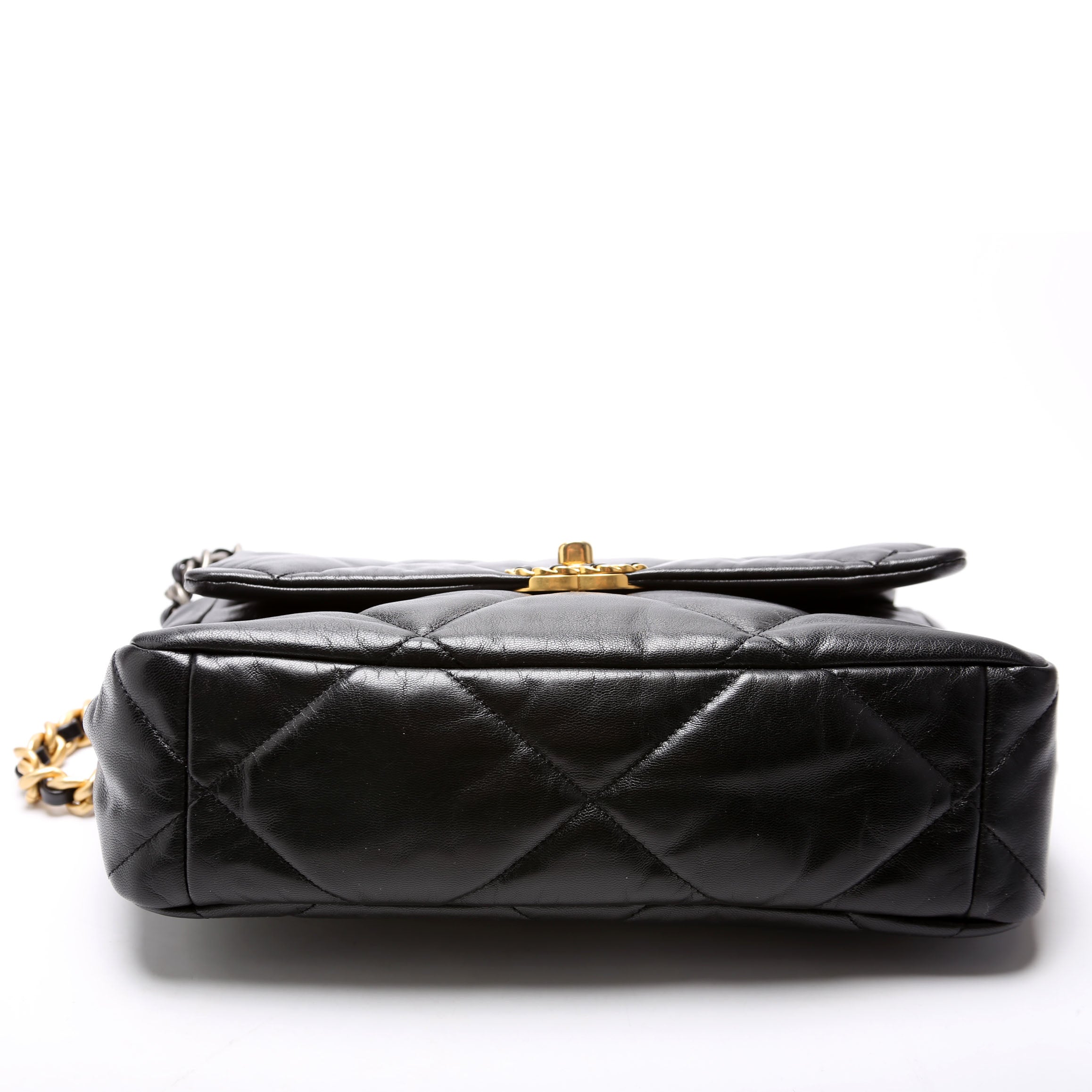 Chanel 19 Large Flap. The exterior is in the classic Chanel Quilted Goatskin leather.