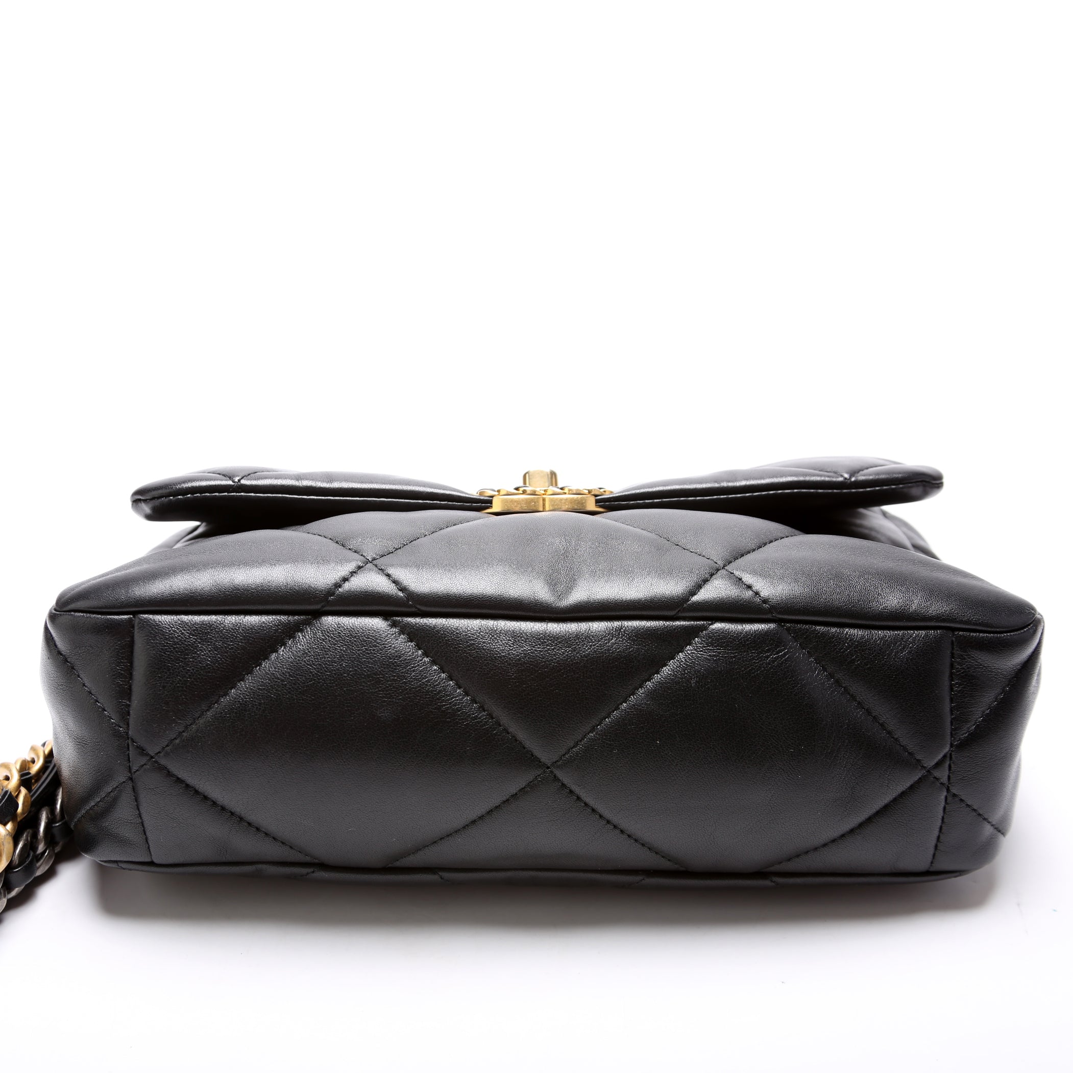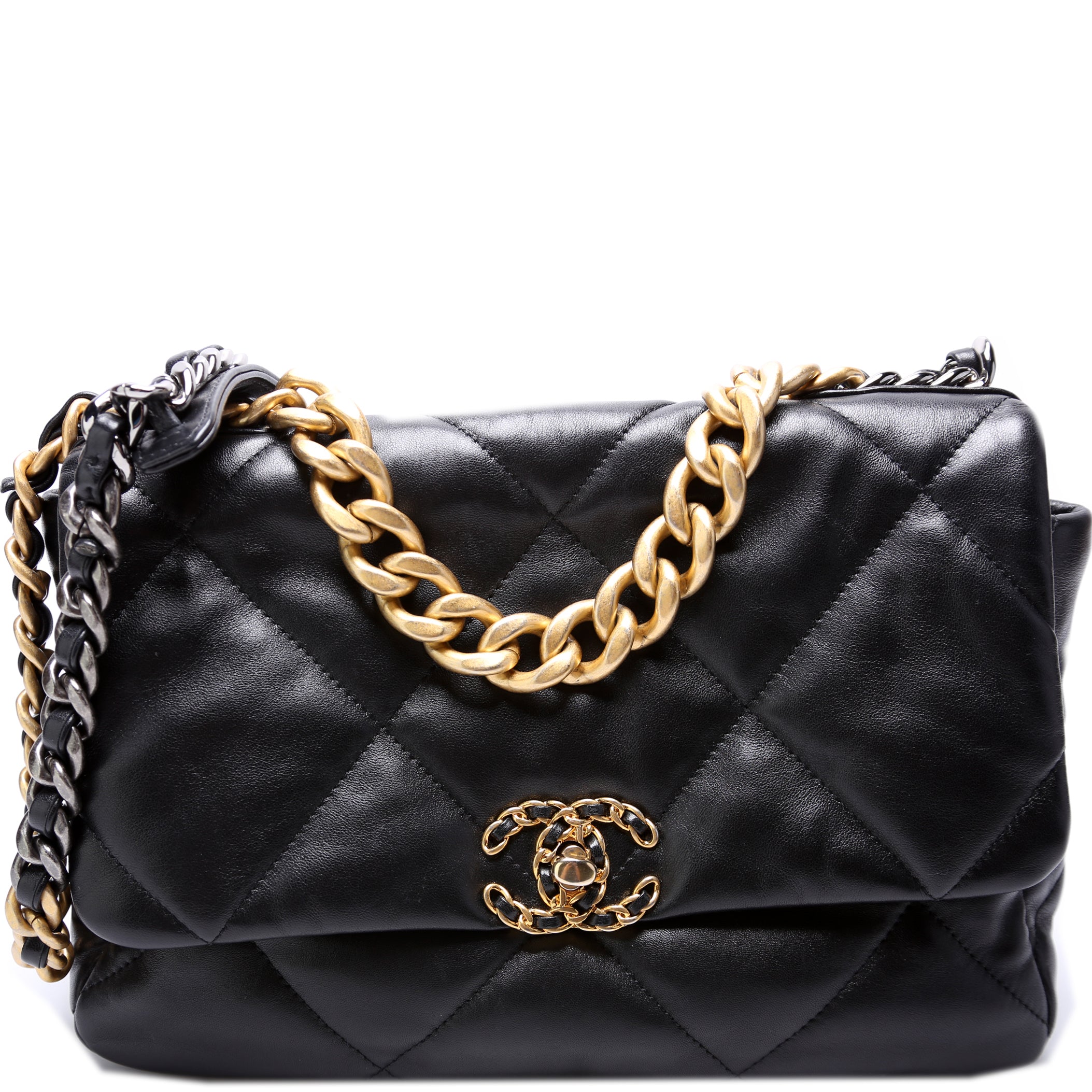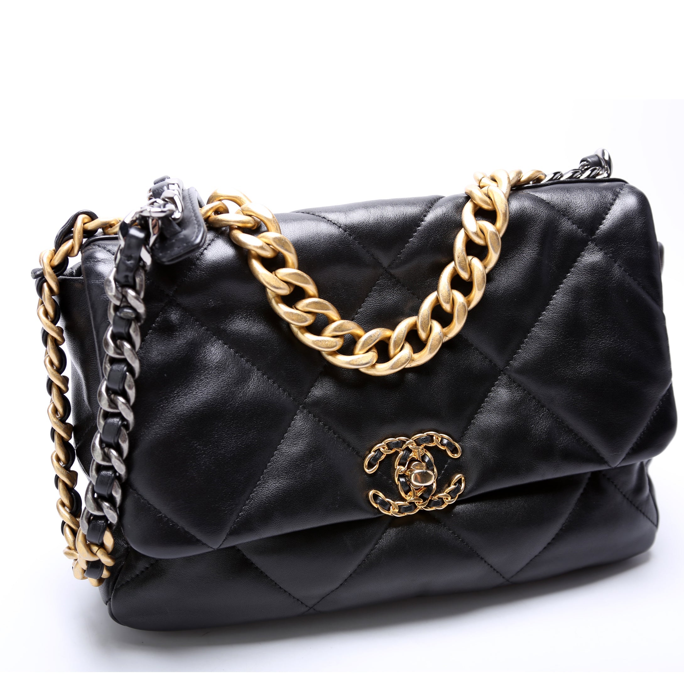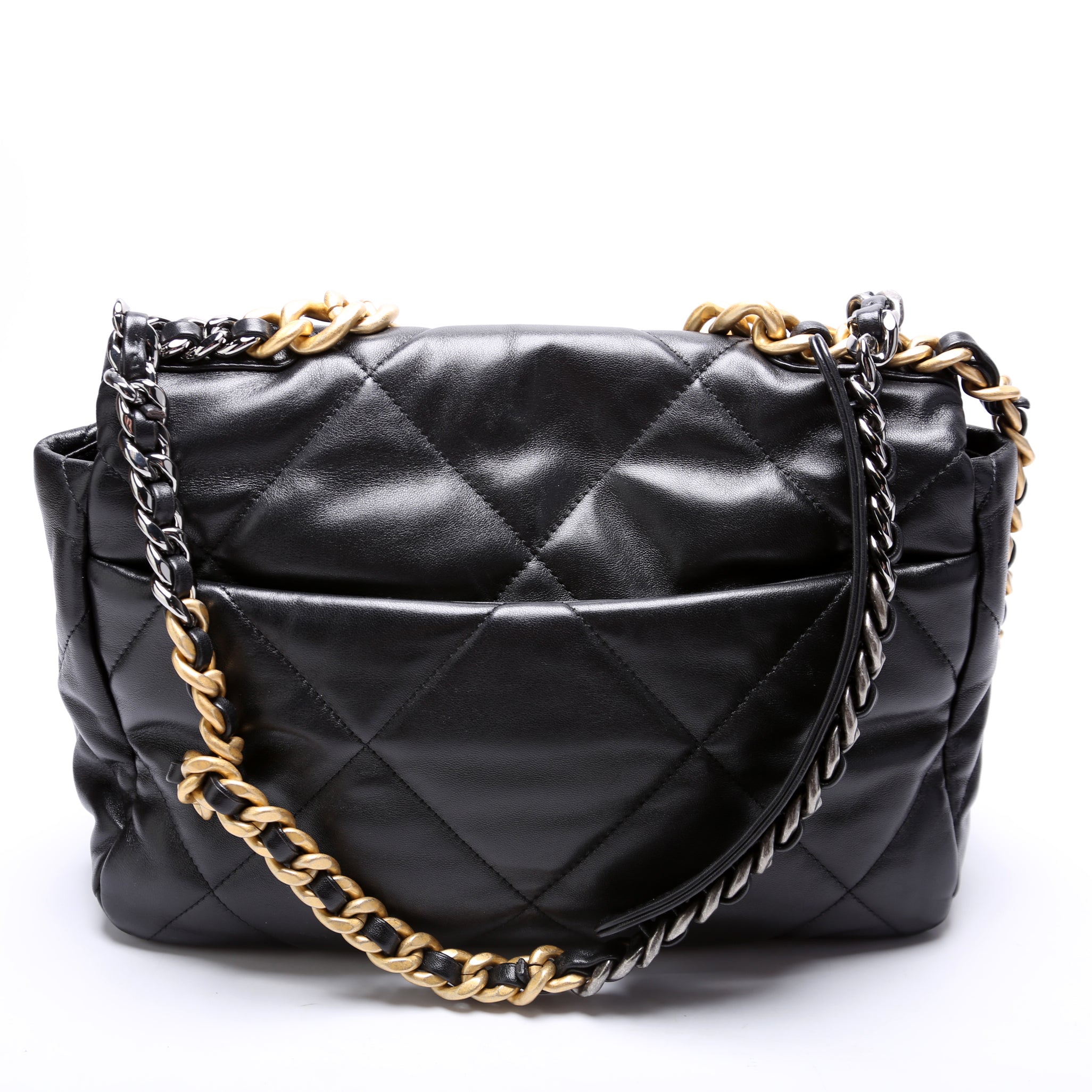 Chanel 19 Large Flap. The exterior is in the classic Chanel Quilted goatskin leather.