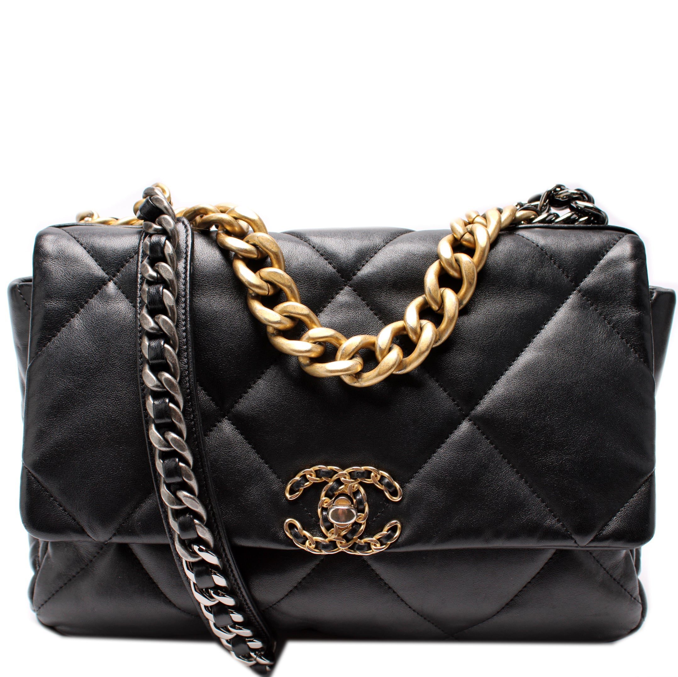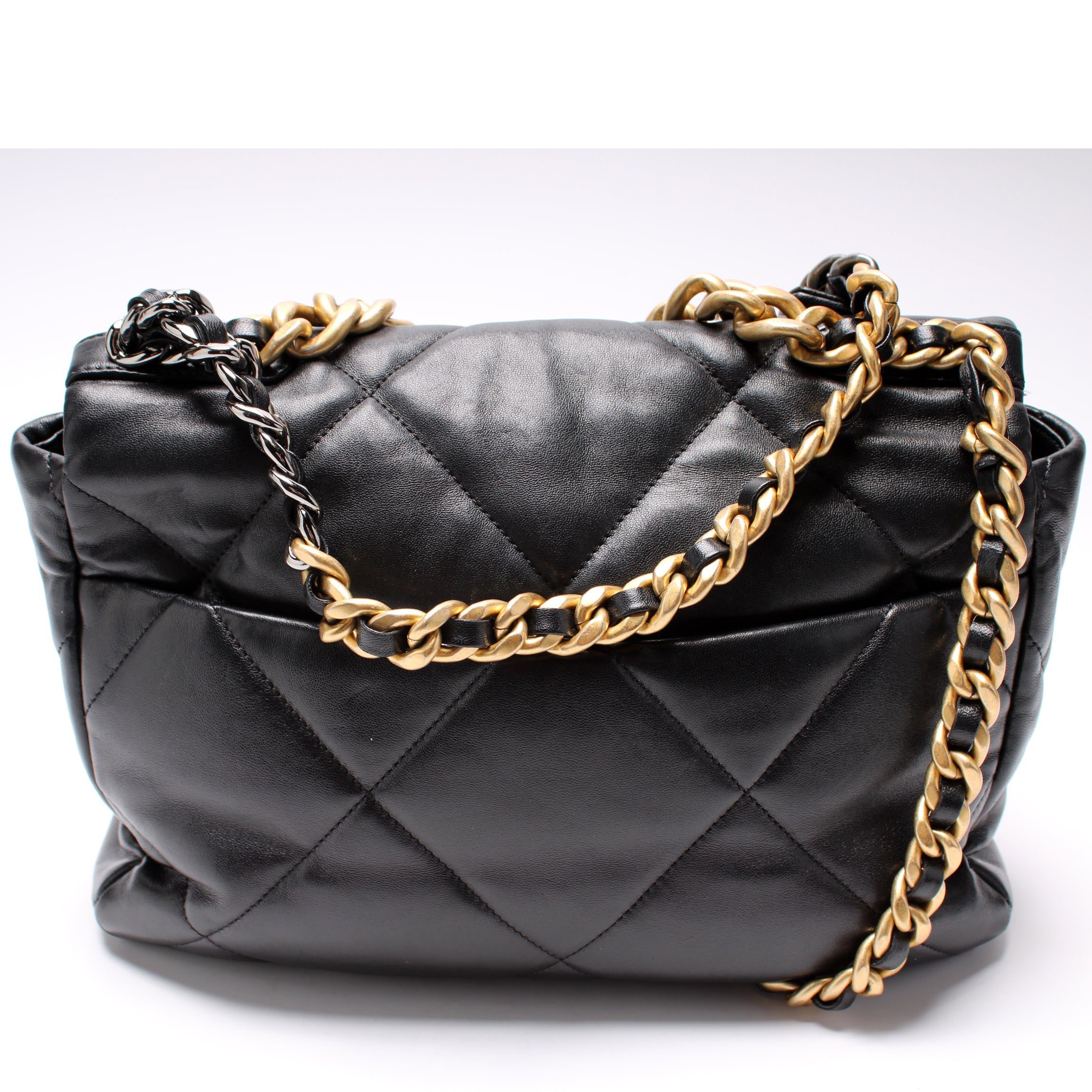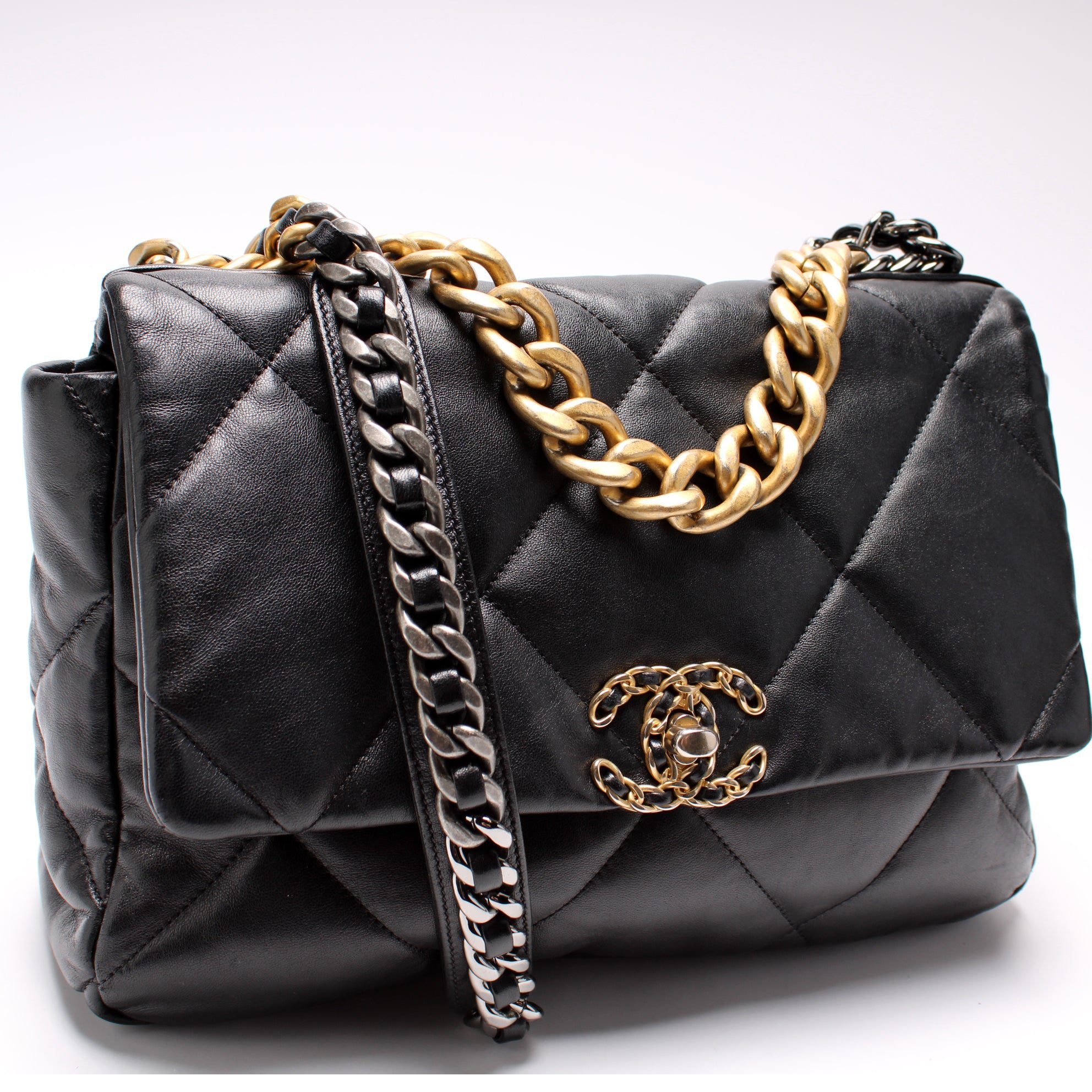 Chanel 19 Large Flap. The exterior is in the classic Chanel Quilted Goatskin leather.