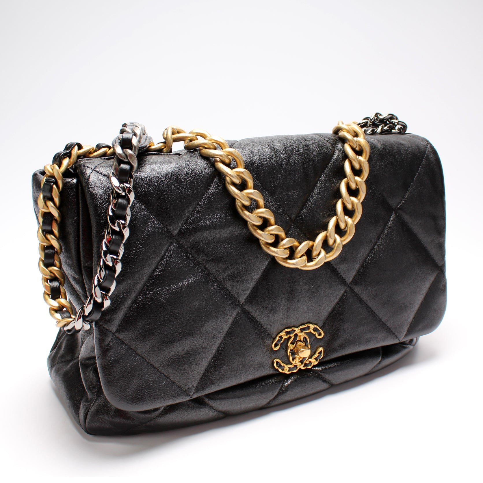 Chanel 19 Maxi Flap. The exterior is in the classic Chanel Quilted goatskin.