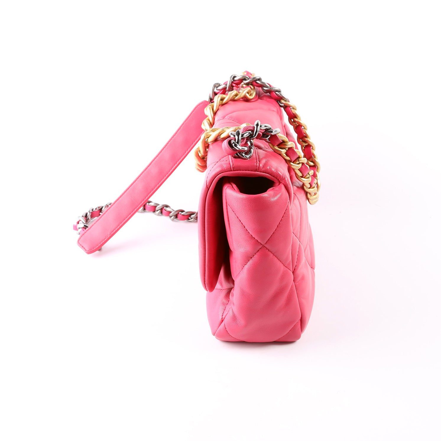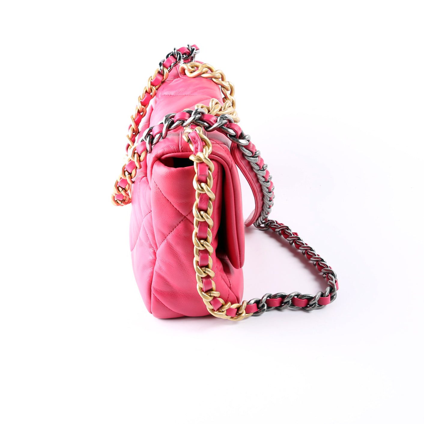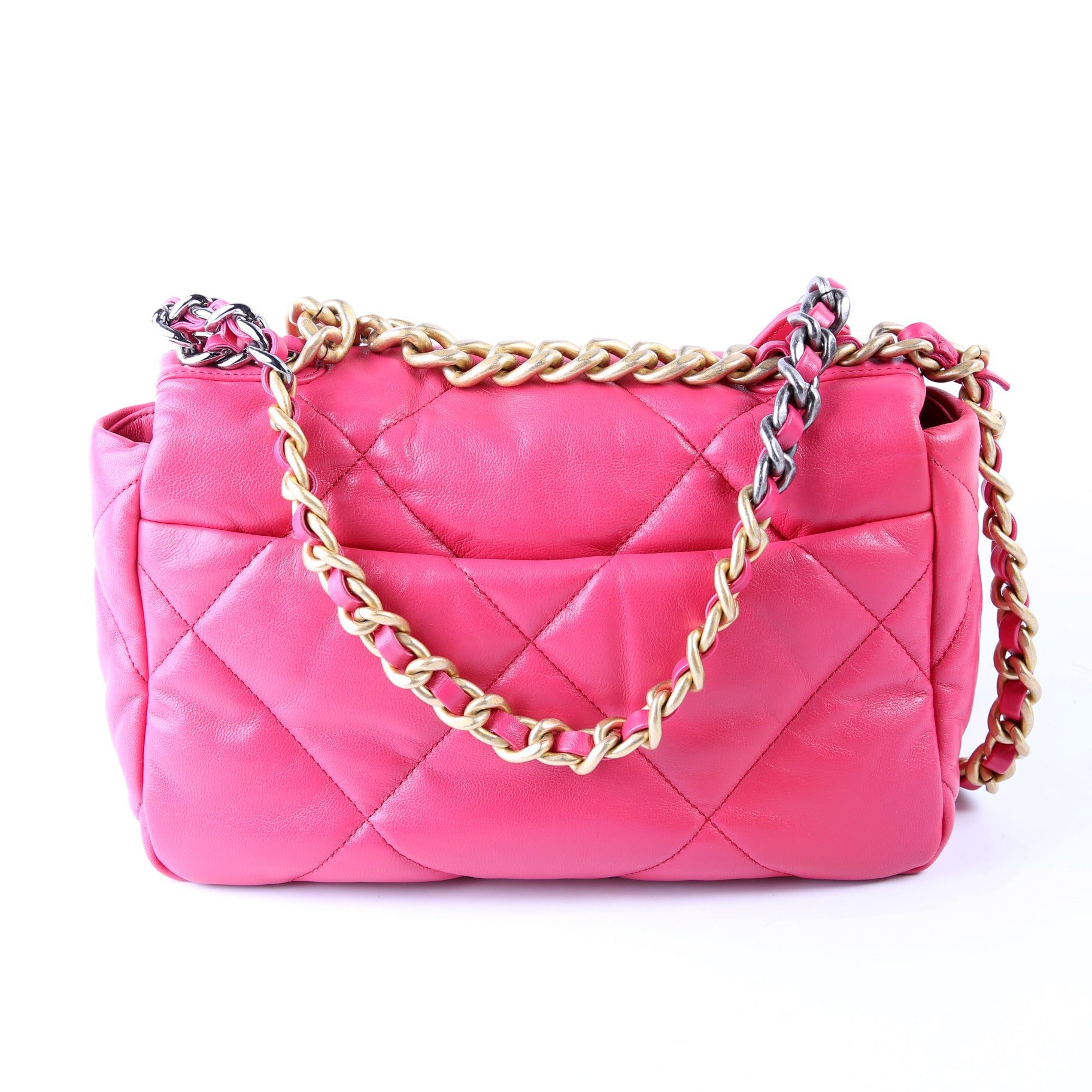 Chanel 19 Medium Flap. The exterior is in the classic Chanel Quilted Goatskin leather.Â