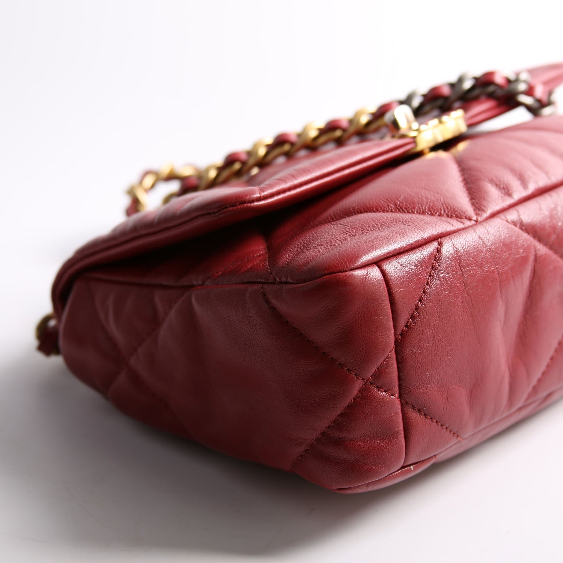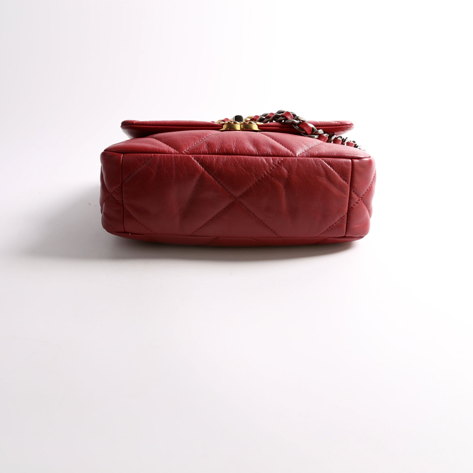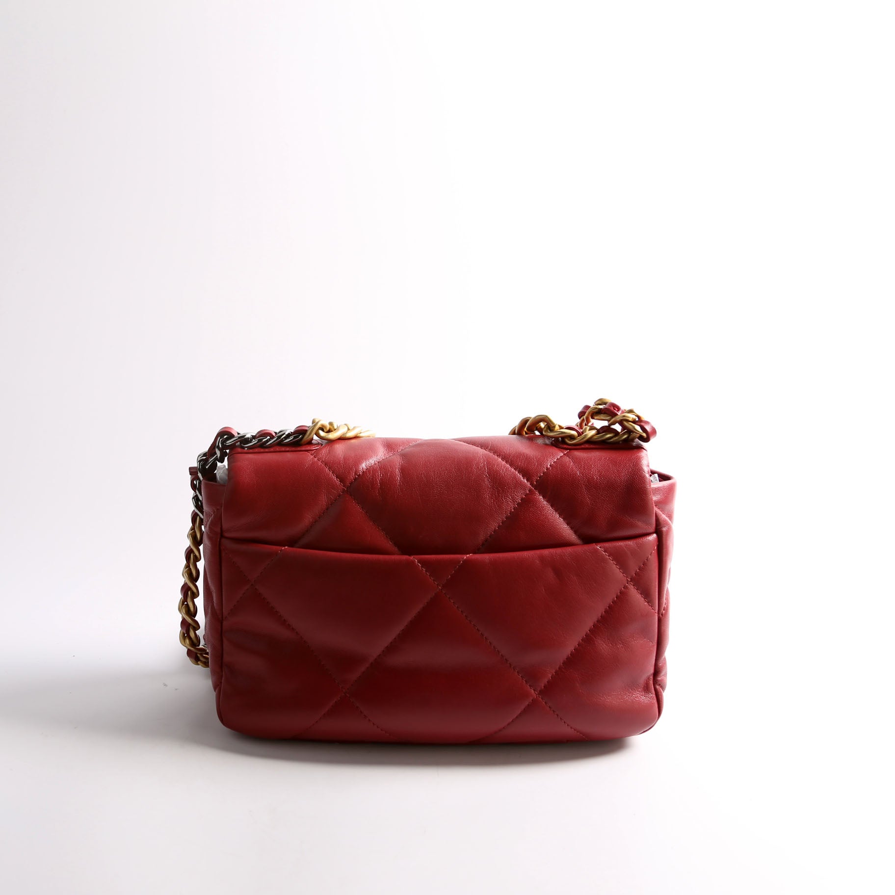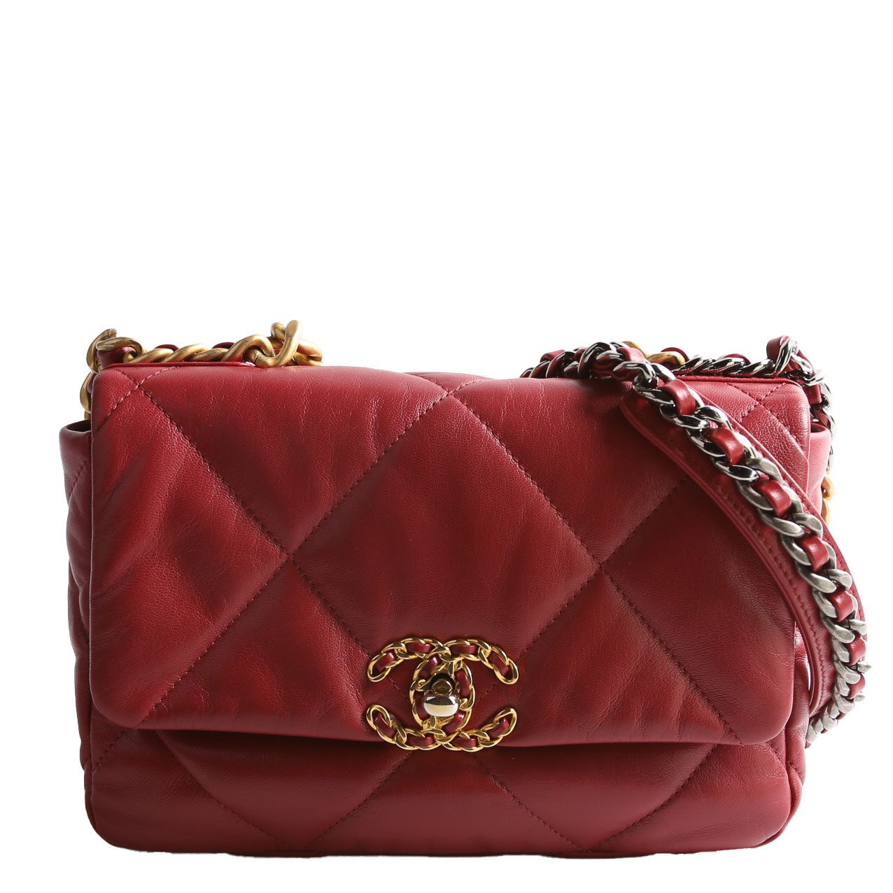 Chanel 19 Medium Flap. The exterior is in the classic Chanel Quilted Goatskin leather.Â