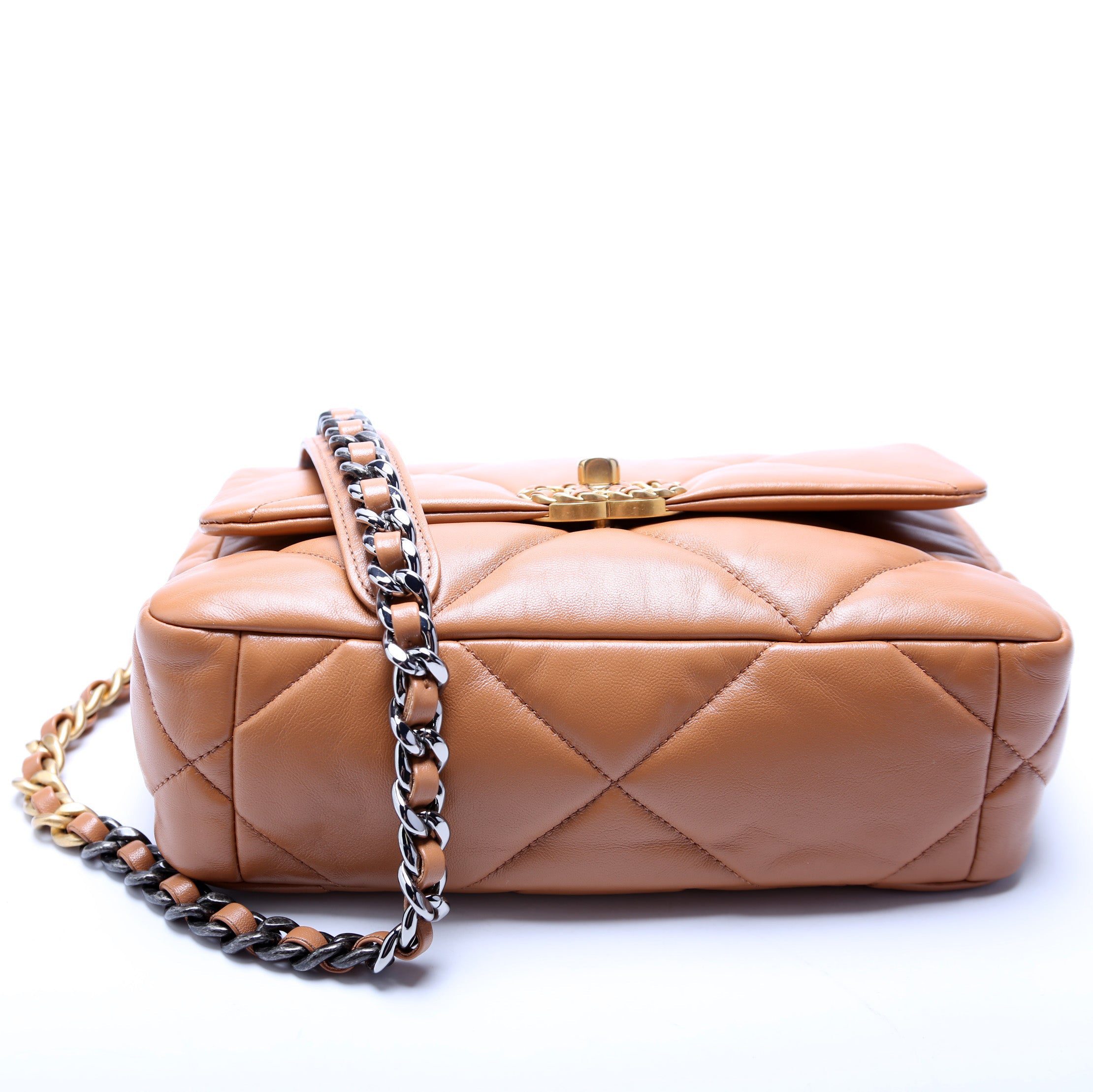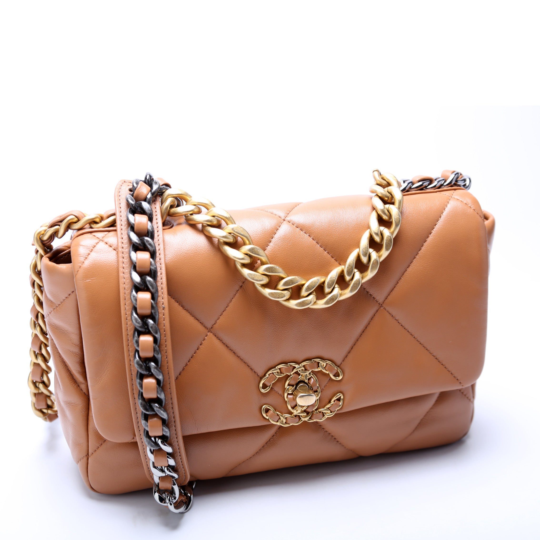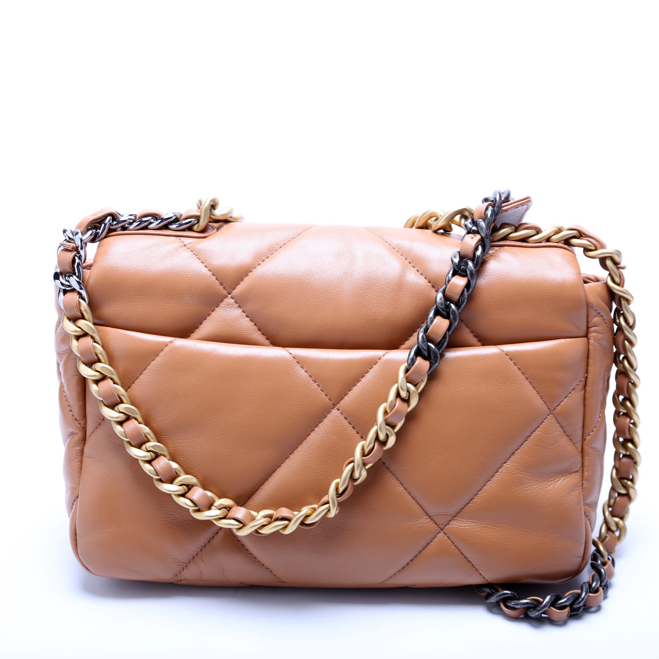 Chanel 19 Medium Flap. The exterior is in the classic Chanel Goatskin leather.Â