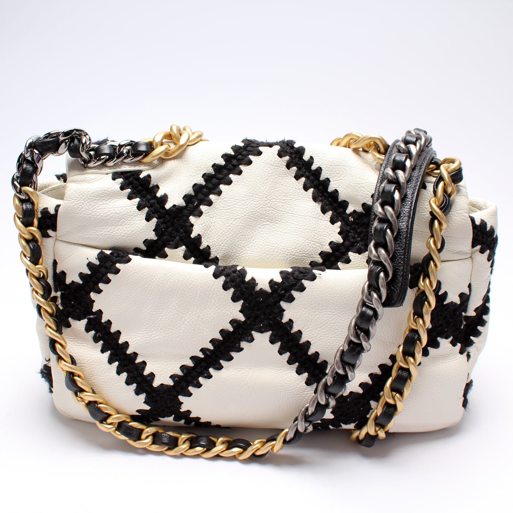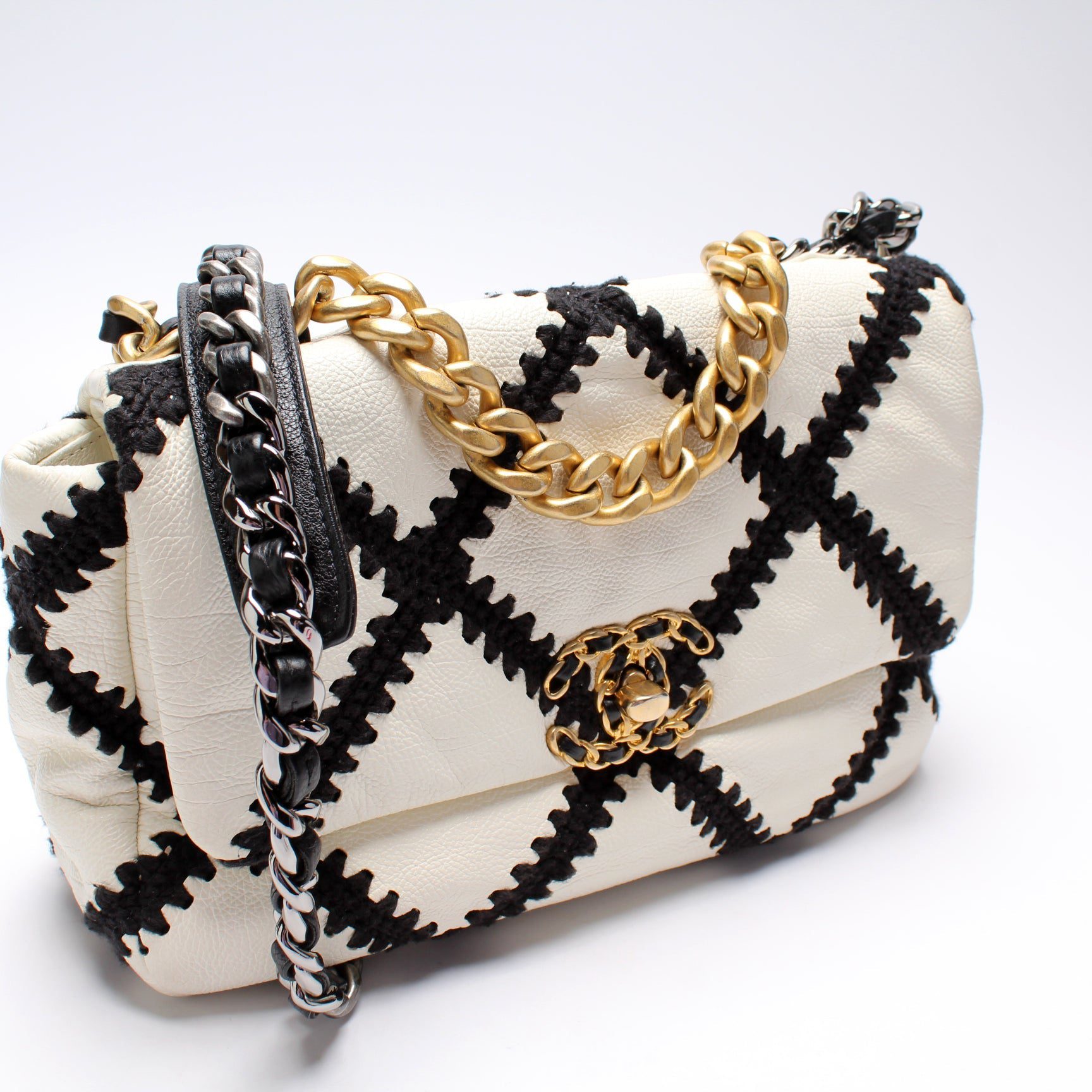 Chanel 19 Medium Flap. The exterior is in the classic Chanel Quilted Goatskin leather.Â
