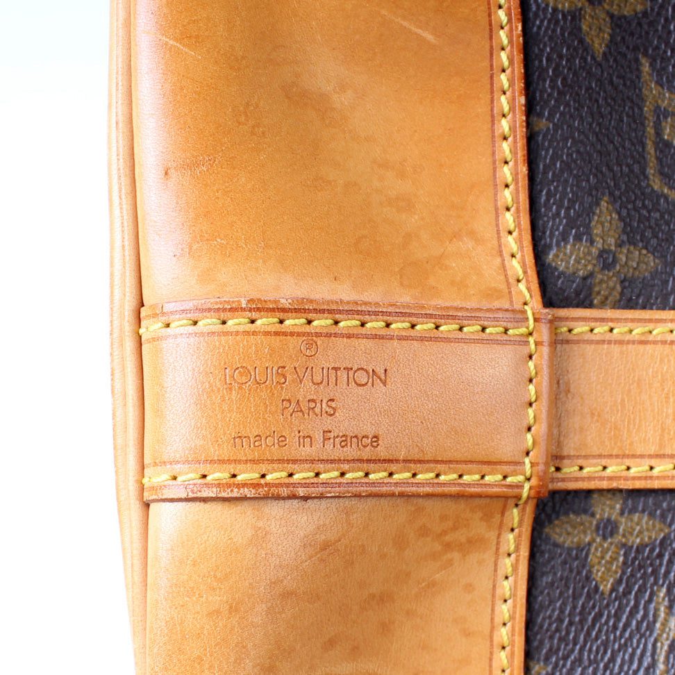 Exterior: The exterior coated canvas is free of any rips or cracks. The leather details and bottom show wear and water discoloration as pictured.