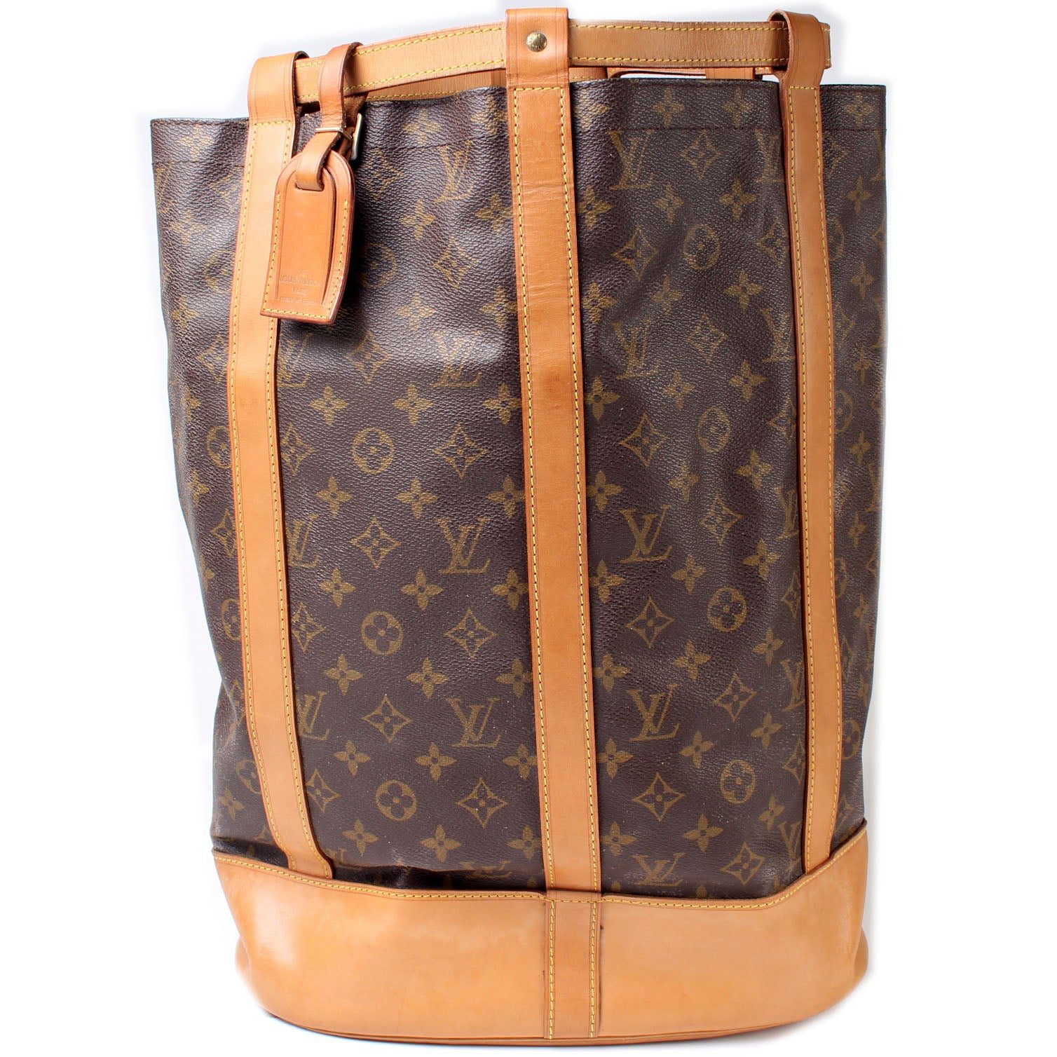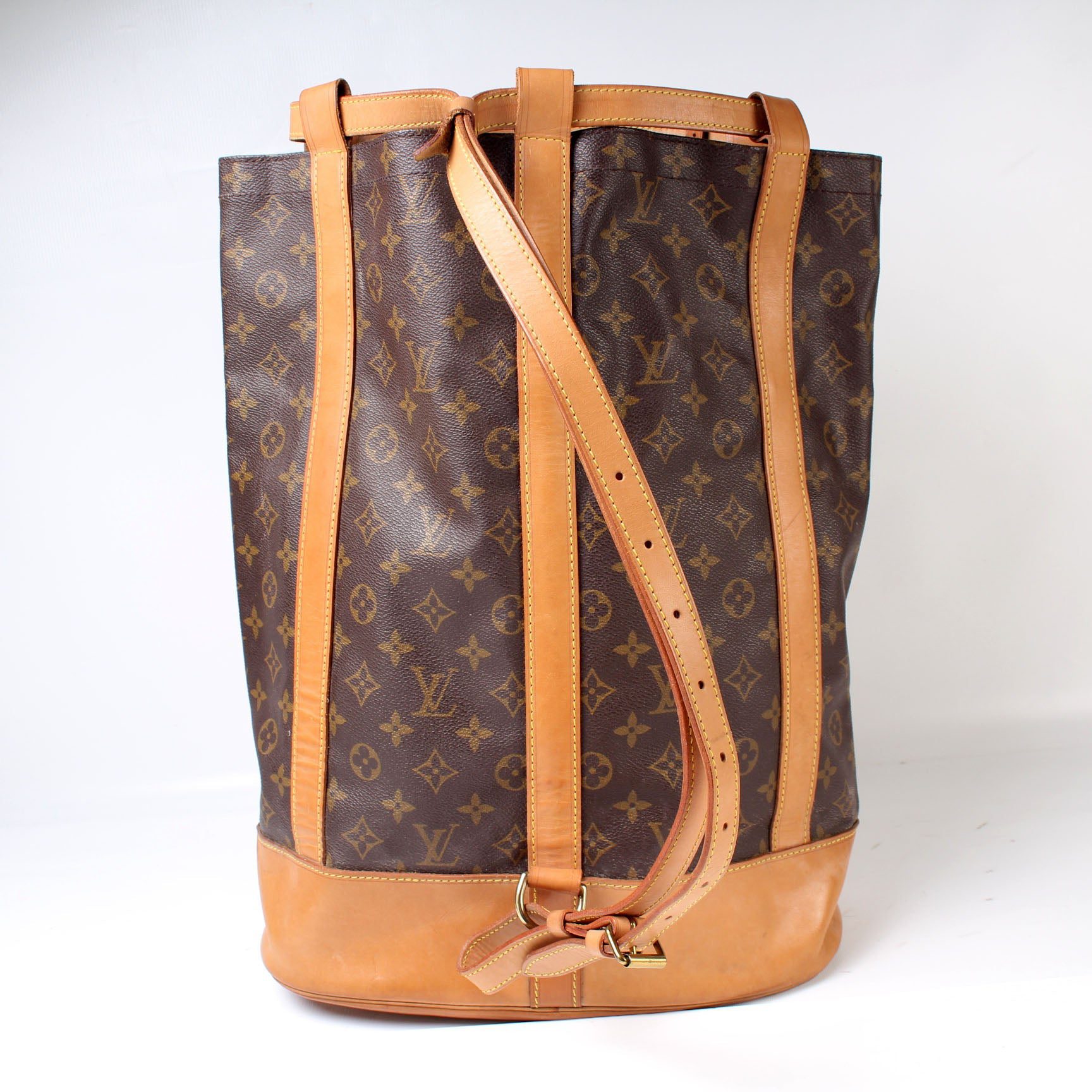 Louis Vuitton Randonnee Backpack GM. The exterior is in the classic Louis Vuitton Monogram coated canvas.Â