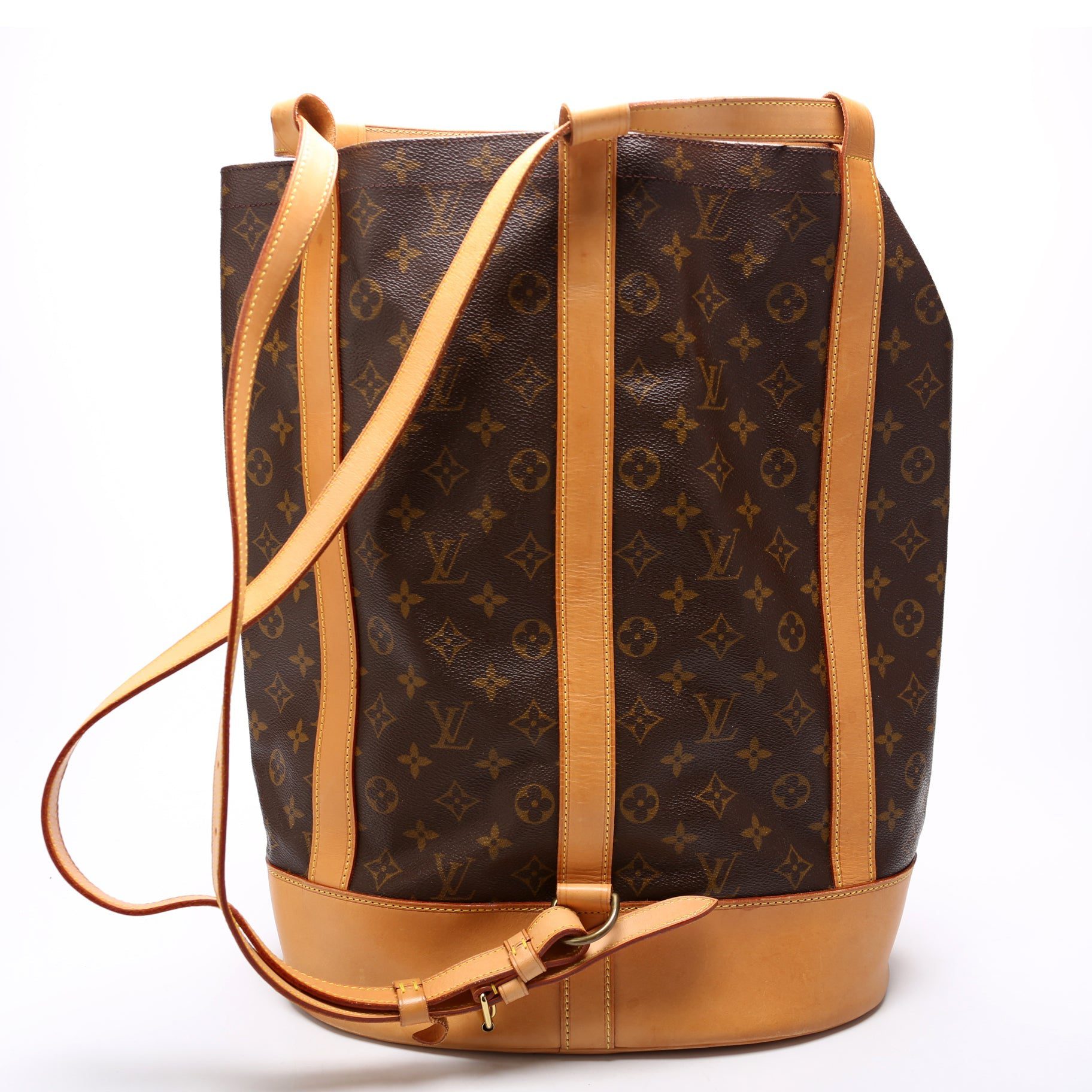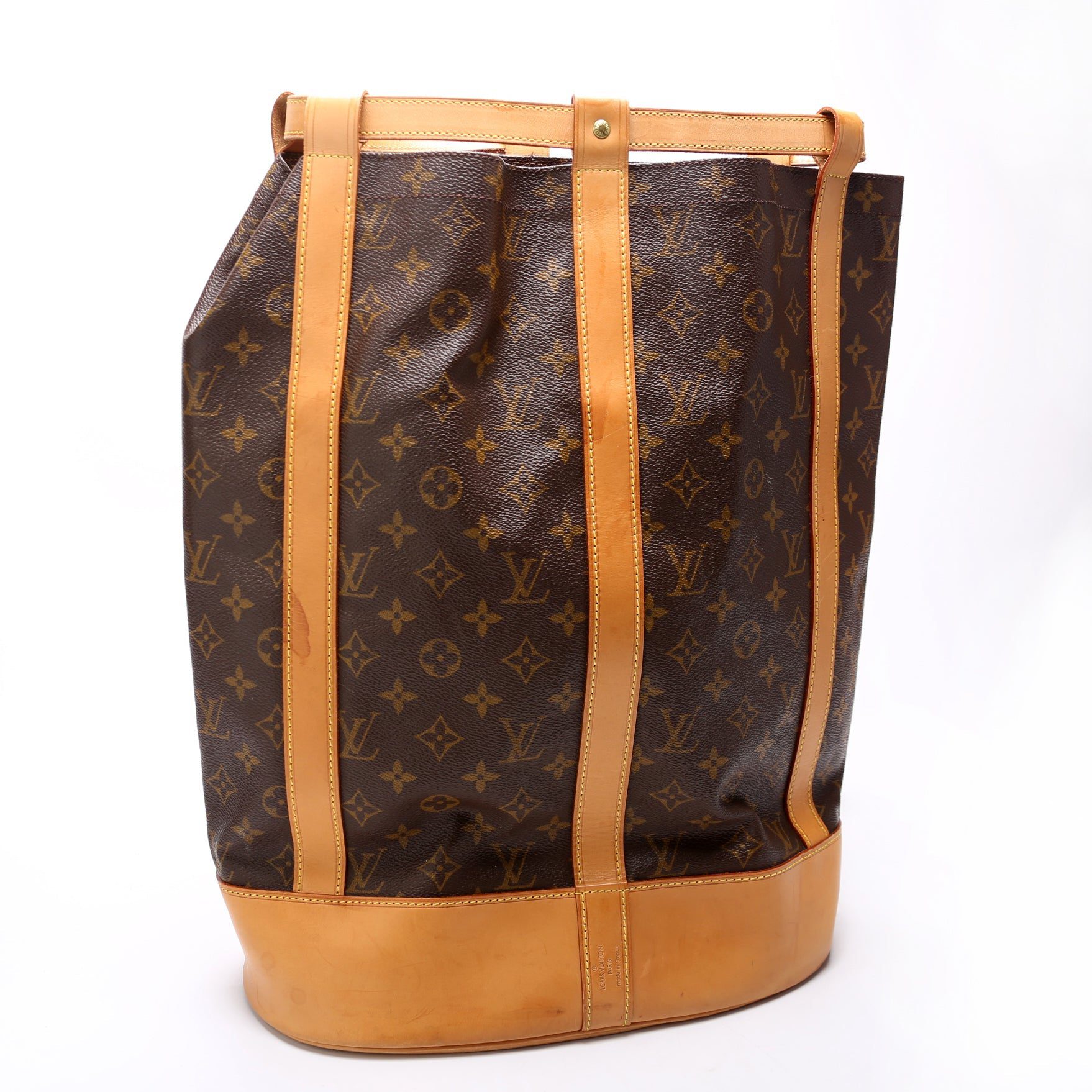 Louis Vuitton Randonnee GM. The exterior is in the classic Louis Vuitton Monogram coated canvas.Â