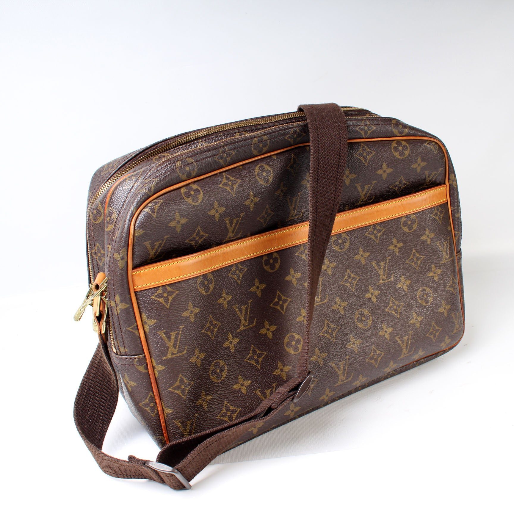 Louis Vuitton Reporter GM. The exterior is in the classic Louis Vuitton Monogram coated canvas.