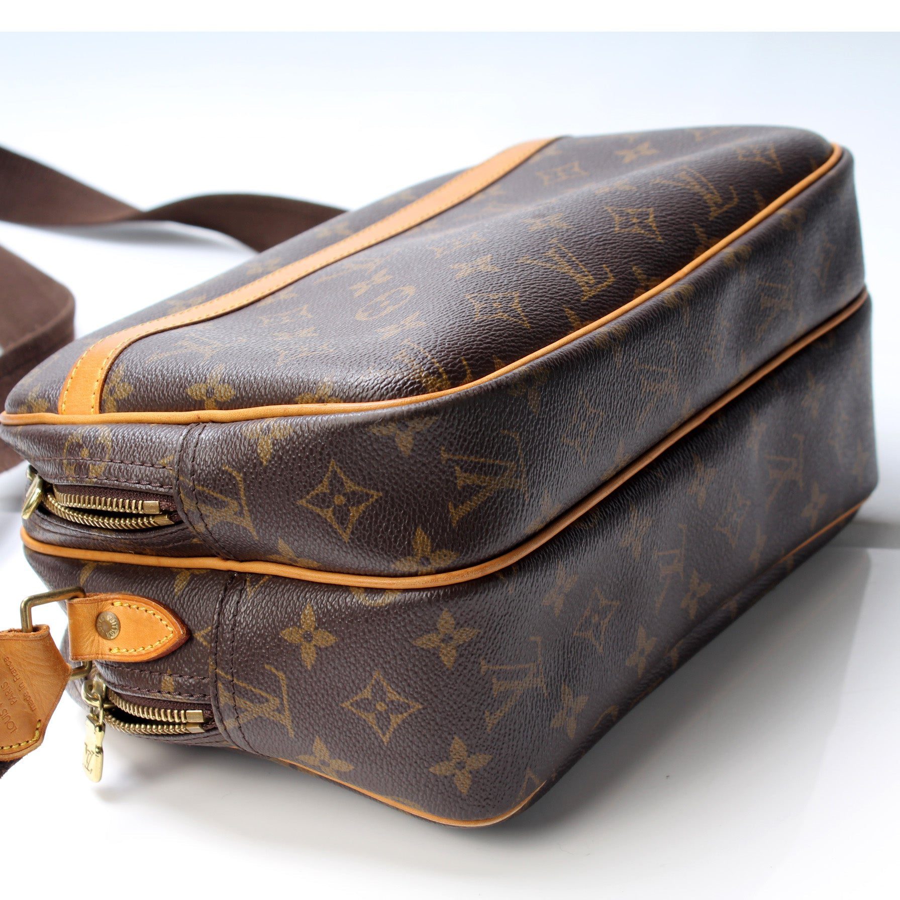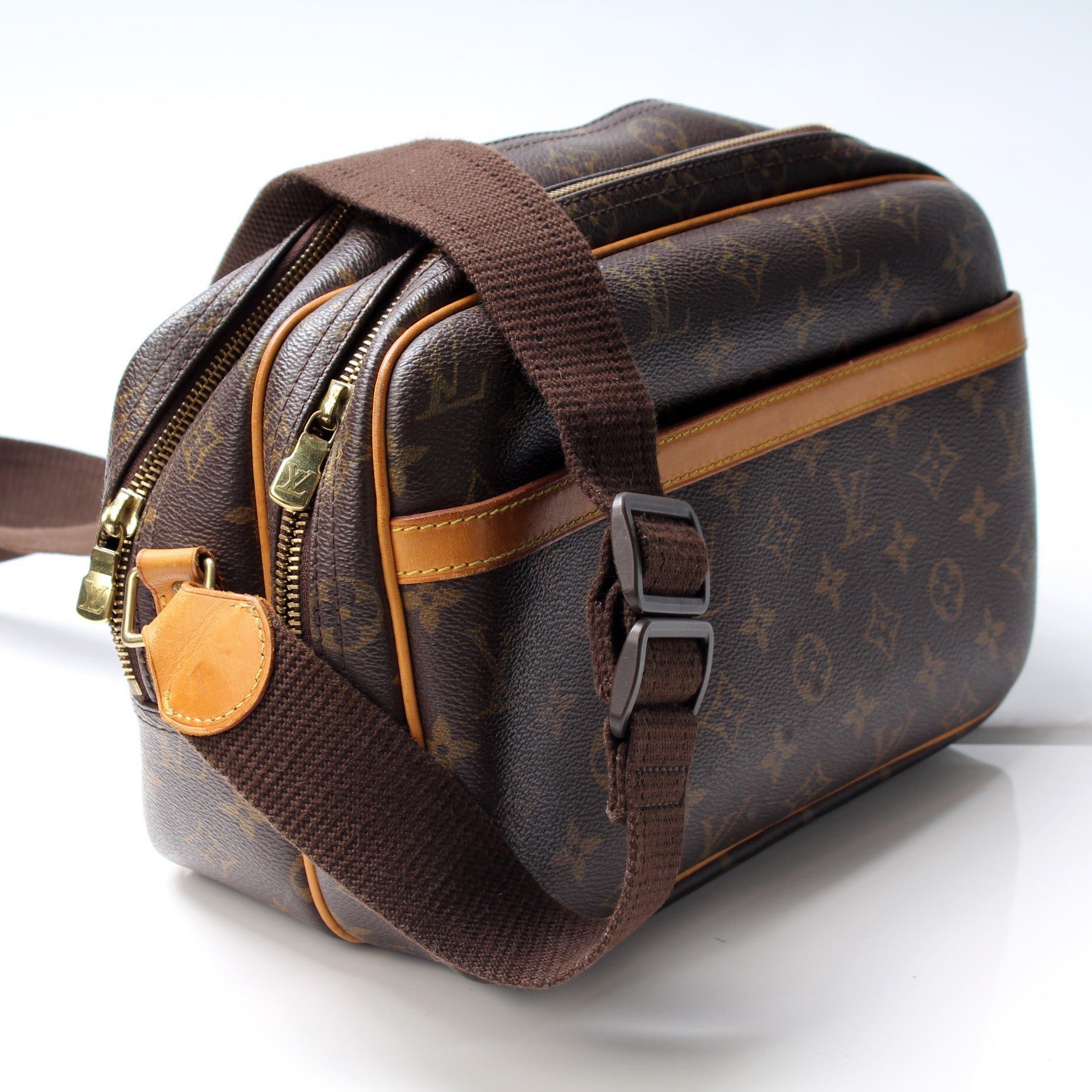 Louis Vuitton Reporter PM. The exterior is in the classic Louis Vuitton Monogram coated canvas.Â