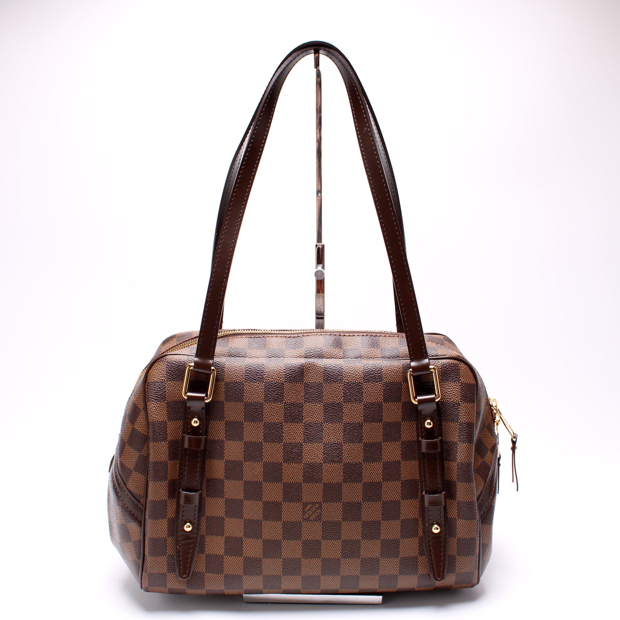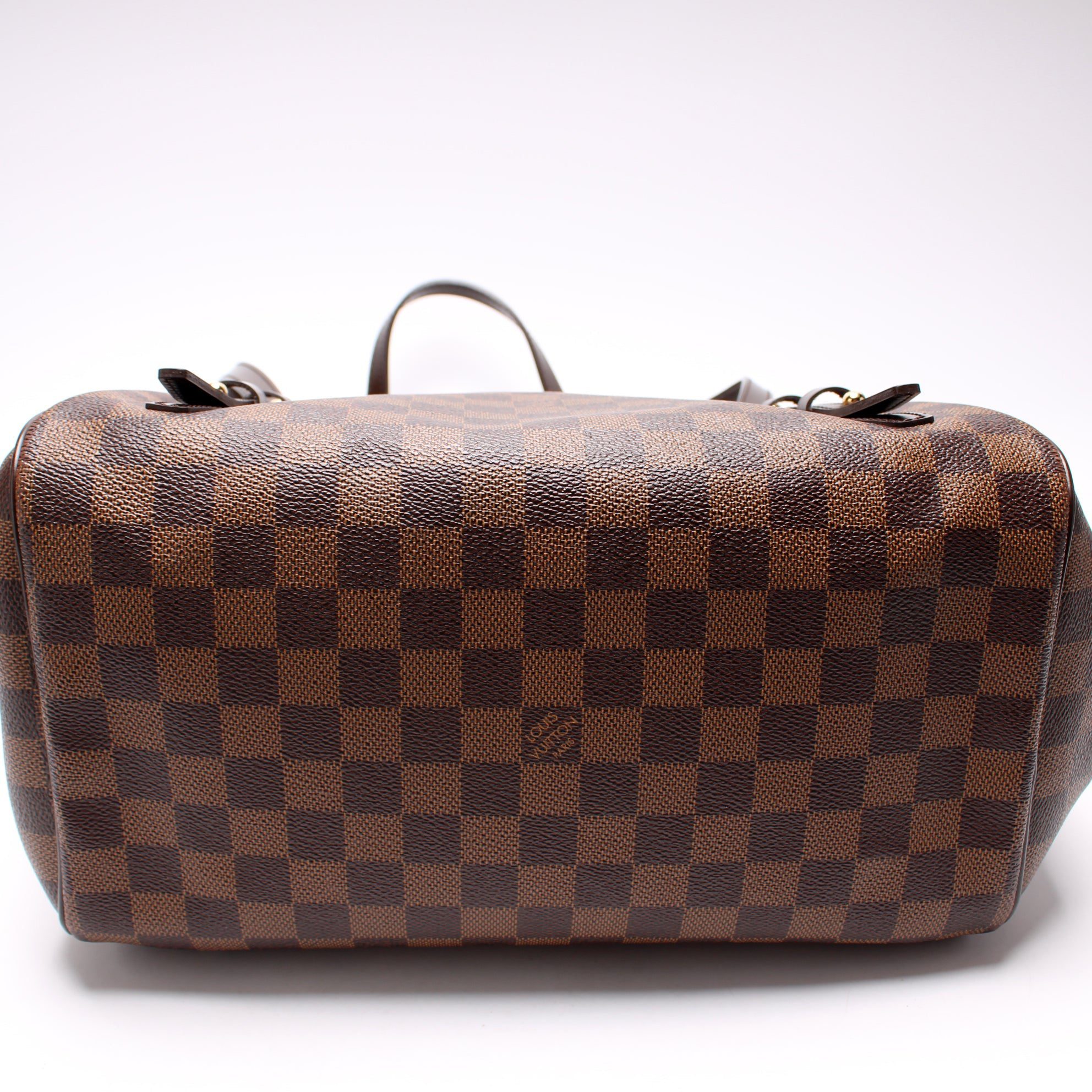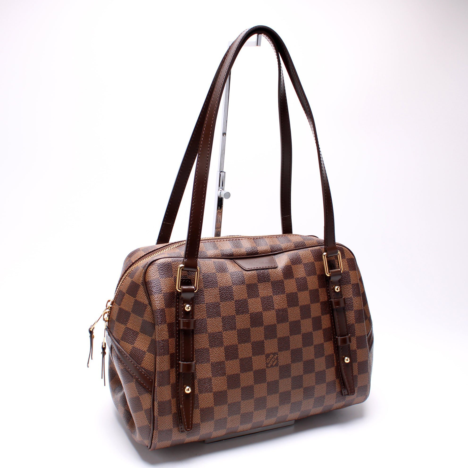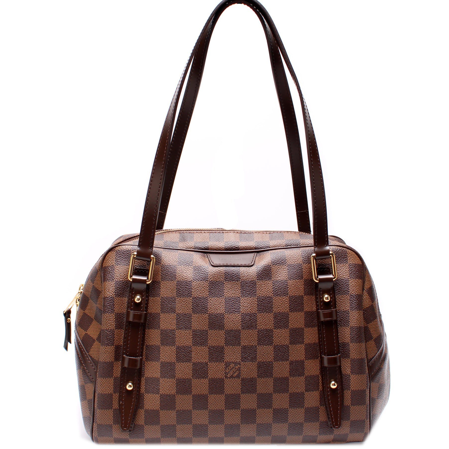 Louis Vuitton Rivington GM. The exterior is in the classic Louis Vuitton Damier Ebene coated canvas.Â