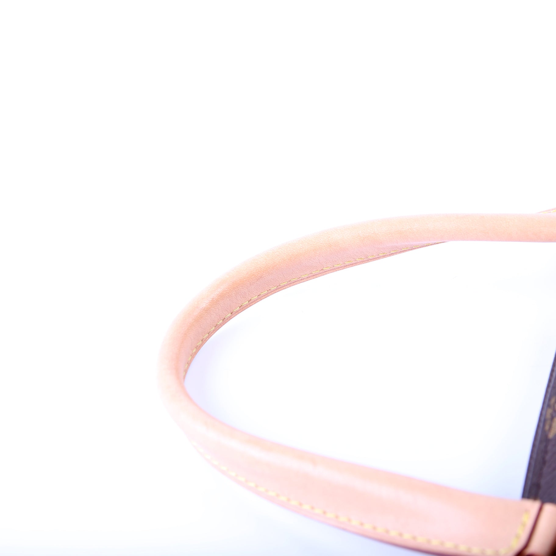 Strap: The leather shoulder strap shows minor wear and discoloration.Â