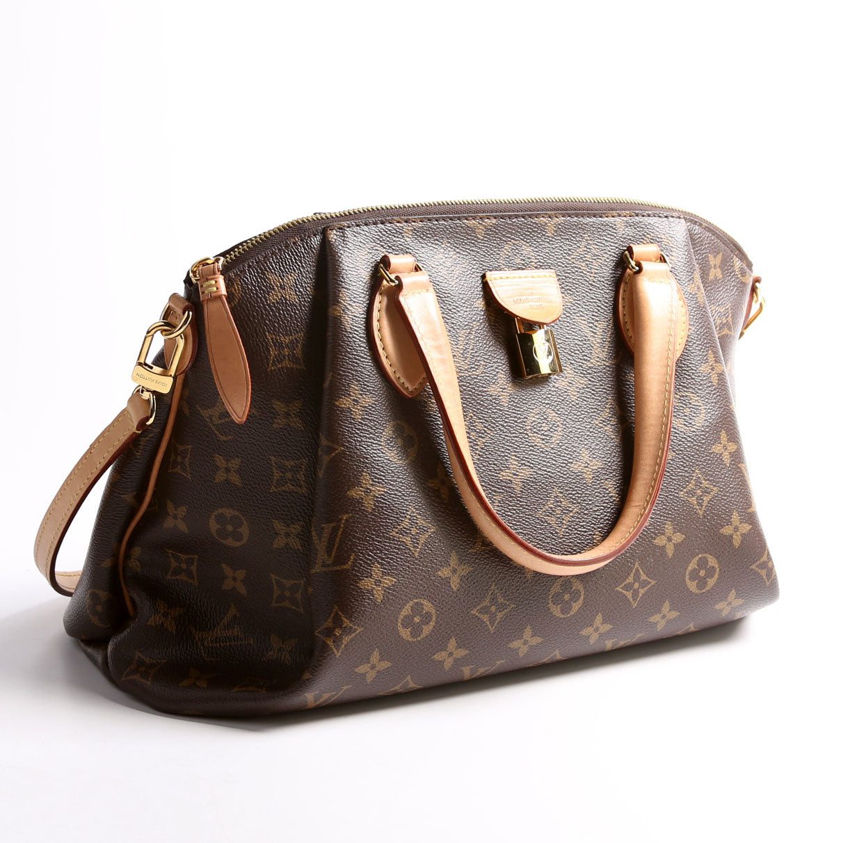 Louis Vuitton Rivoli NM MM . The exterior is in the classic Louis Vuitton Monogram coated canvas.Â